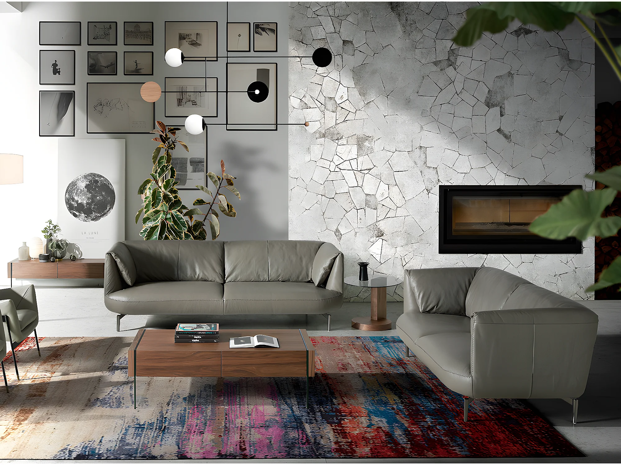 Canapé 3 places en cuir gris 6037 ANGEL CERDA