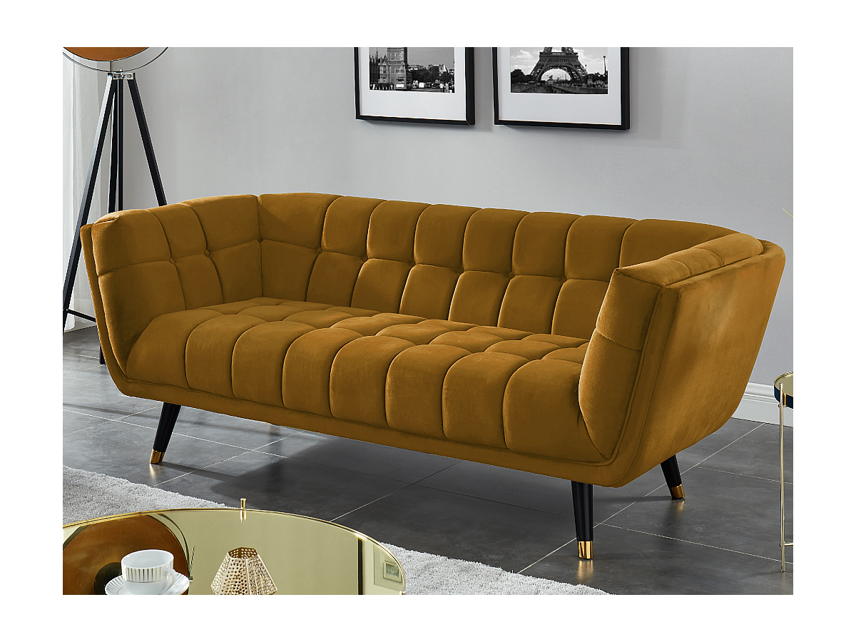 Canapé 3 places SAMANTHA en velours - Ocre