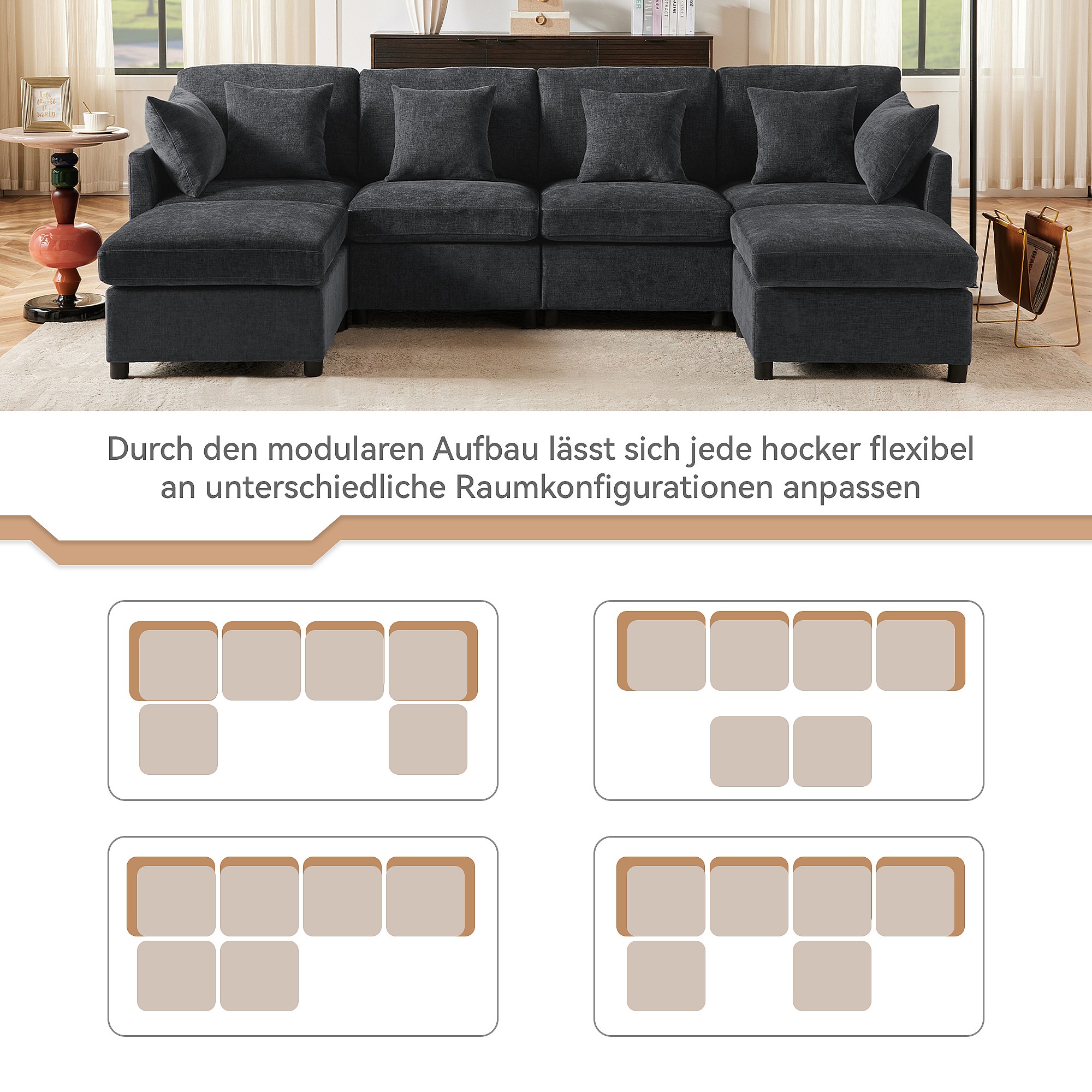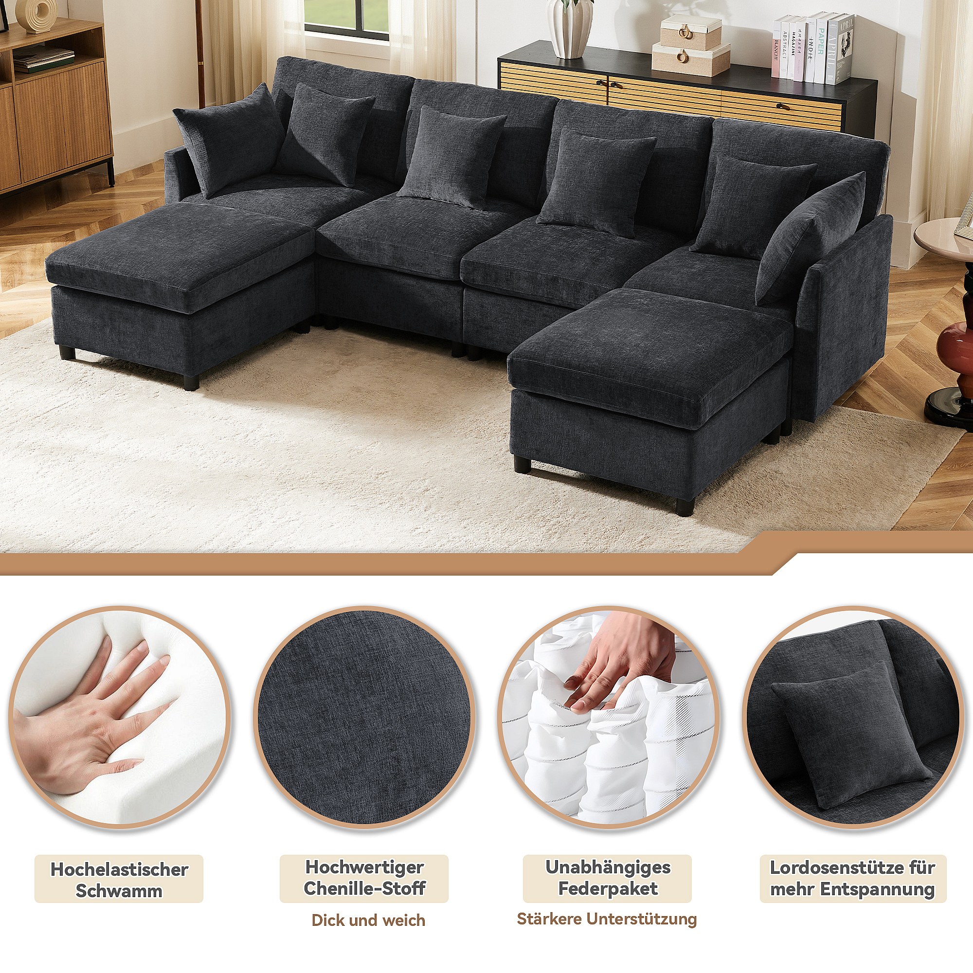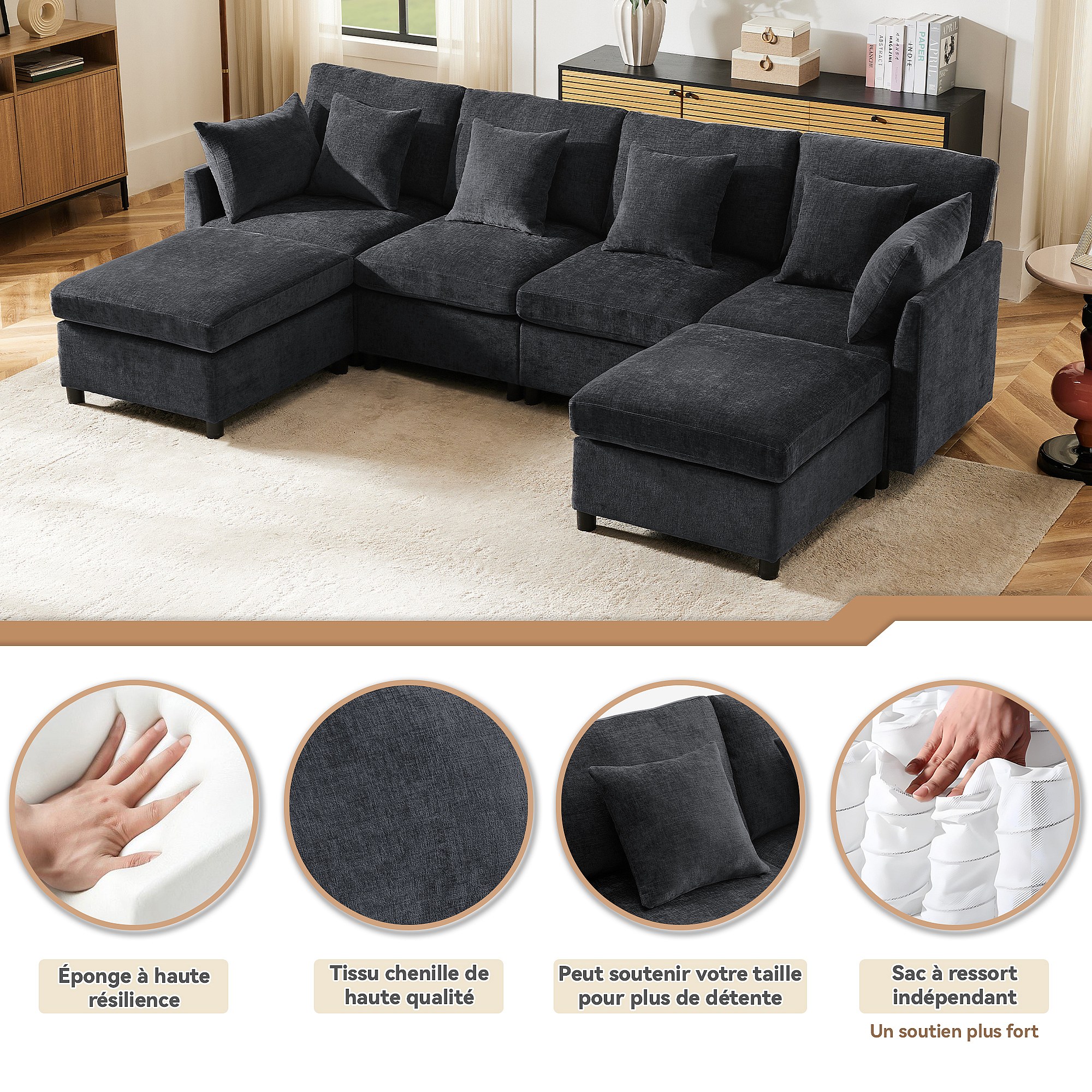 Canapé 4 places avec repose-pieds amovible - 278 x 161 x 81 cm - canapé en U - velours - gris