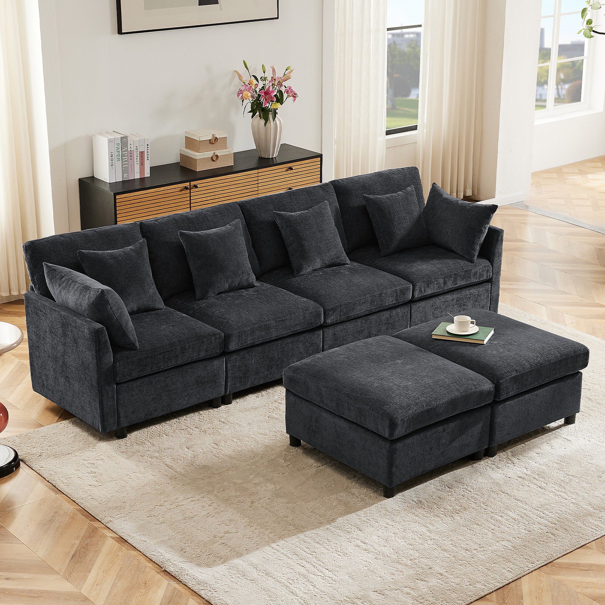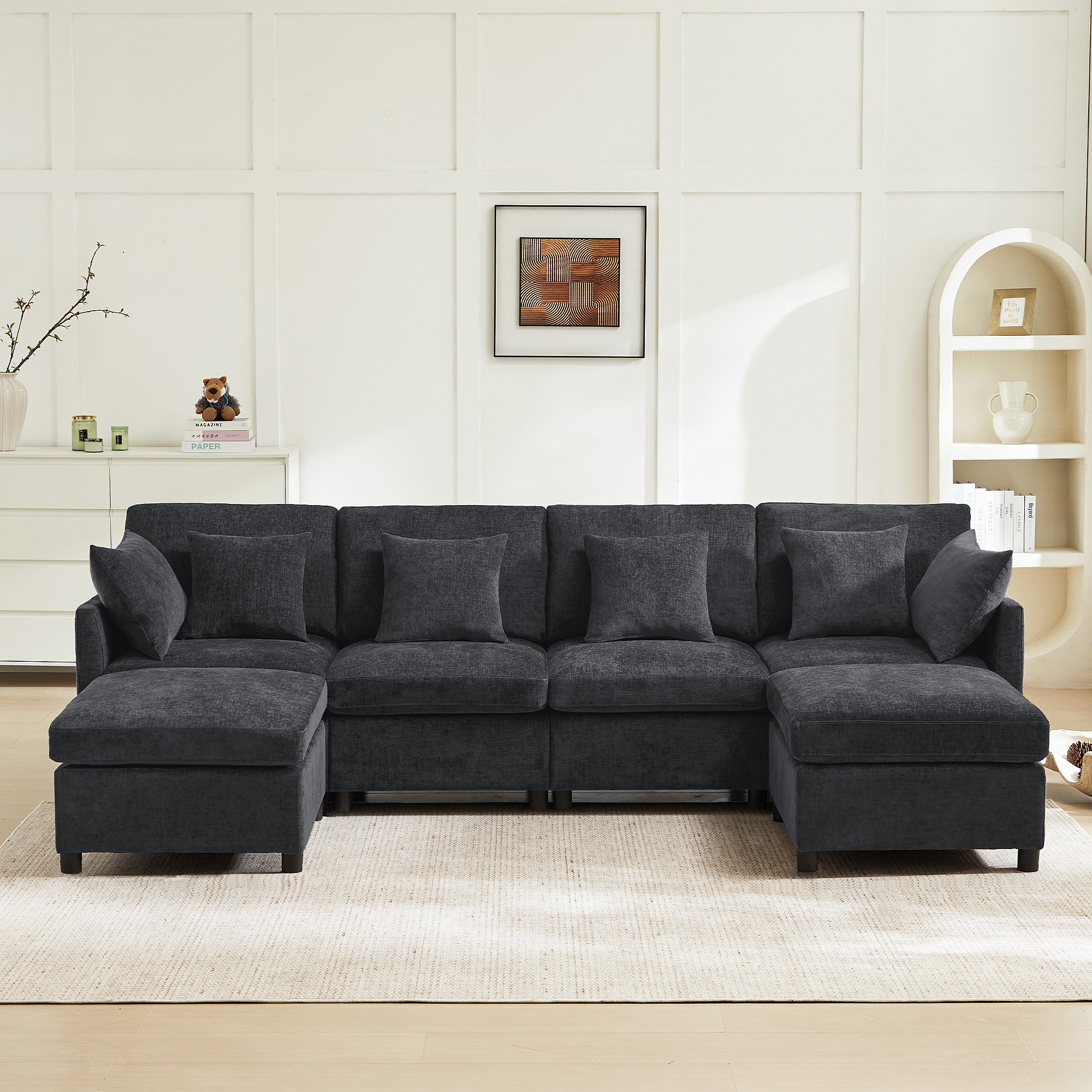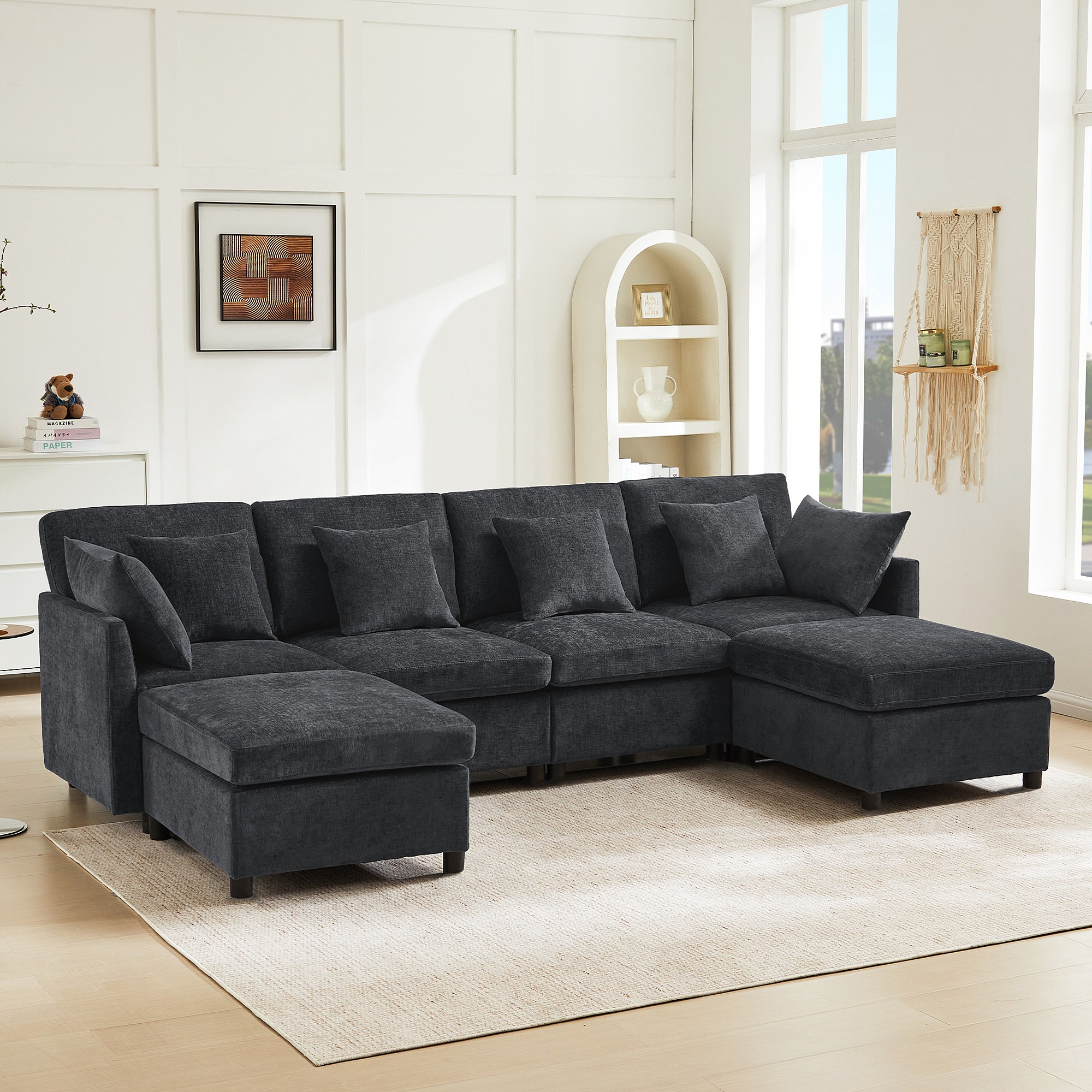 Canapé 4 places avec repose-pieds amovible - 278 x 161 x 81 cm - canapé en U - velours - gris