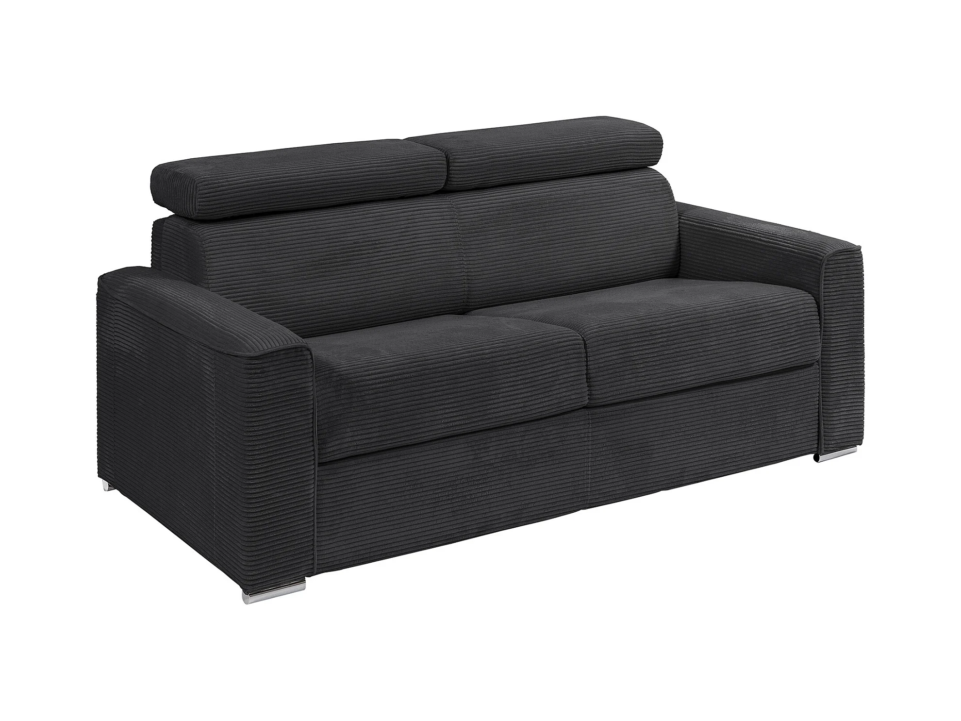 Canapé 4 places convertible express en velours côtelé gris - Couchage 160 cm - Matelas 14 cm - VIZIR