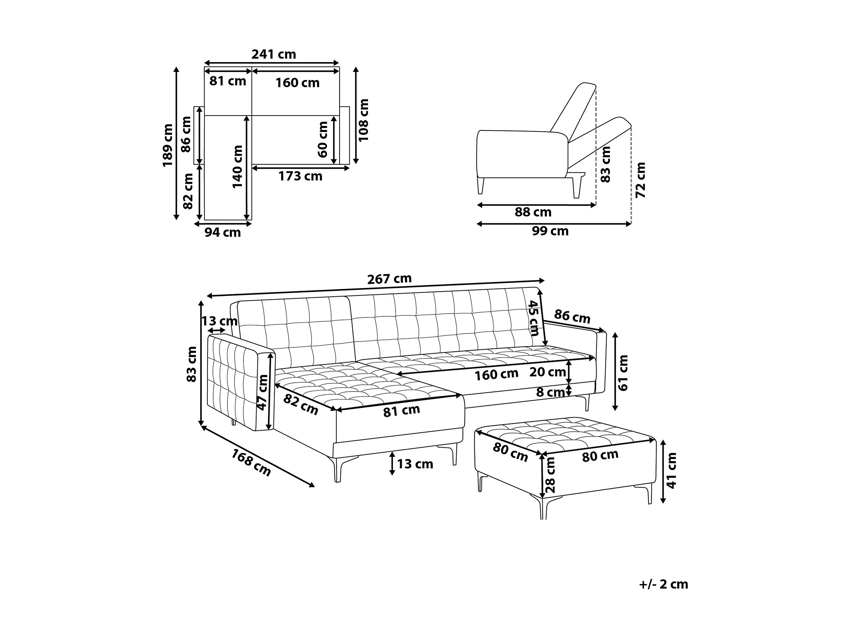 Canapé-lit d'angle modulable 4 places ABERDEEN Velours Bleu paon avec ottoman Côté droit