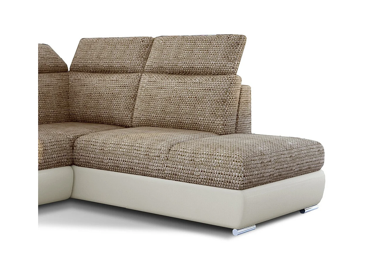 Canapé angle droit convertible tissu beige chiné et simili marron avec appuis-tête réglables Kepita 260cm