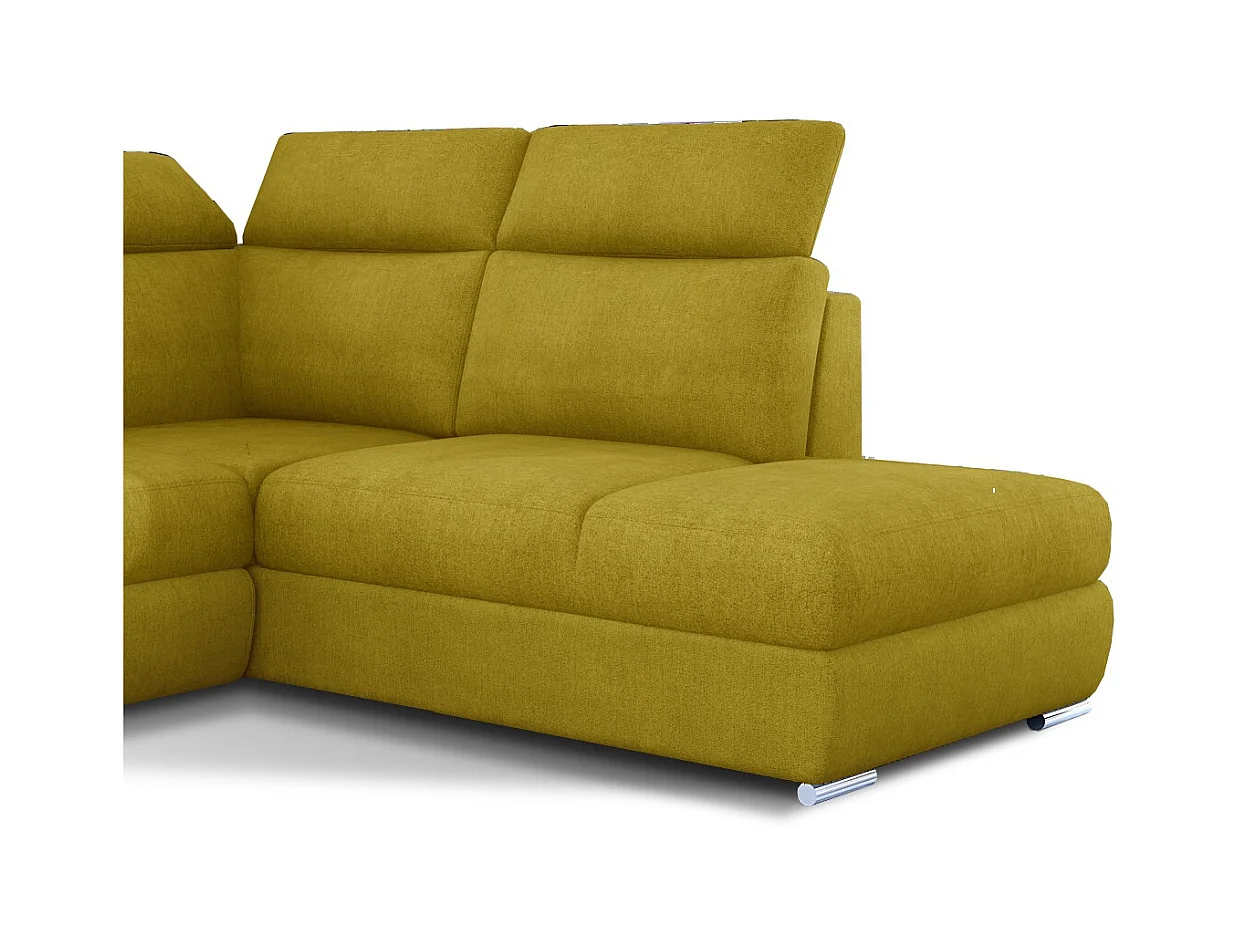 Canapé angle droit convertible tissu jaune avec têtières réglables Nikos 265cm