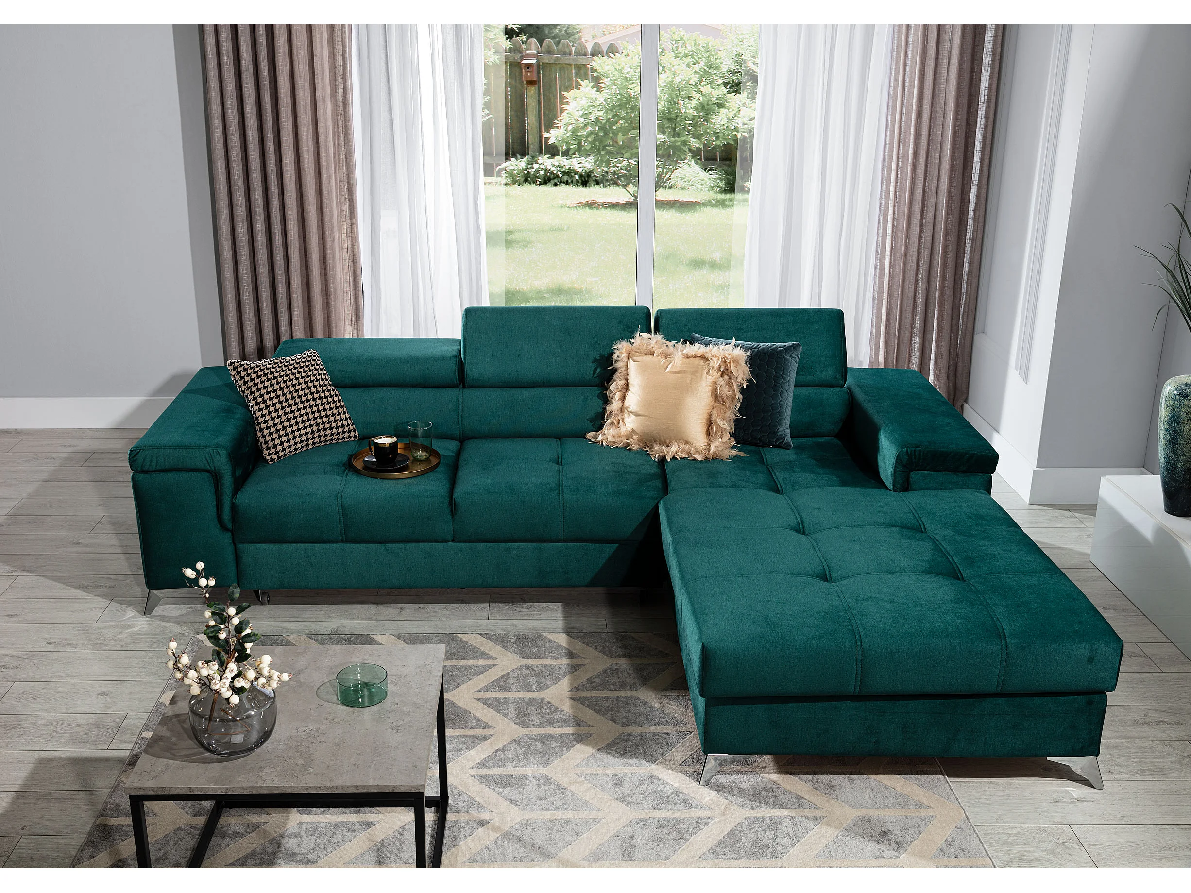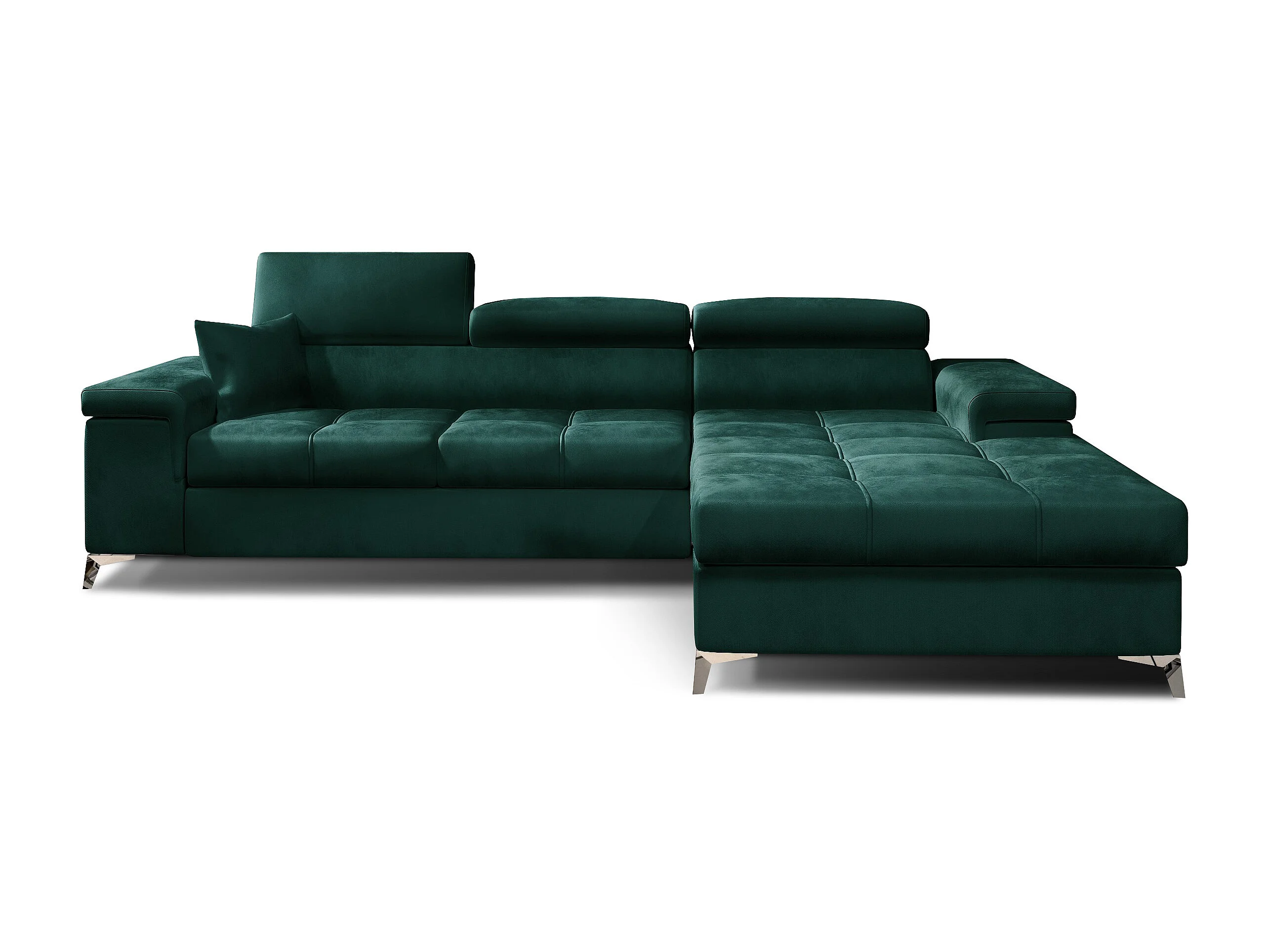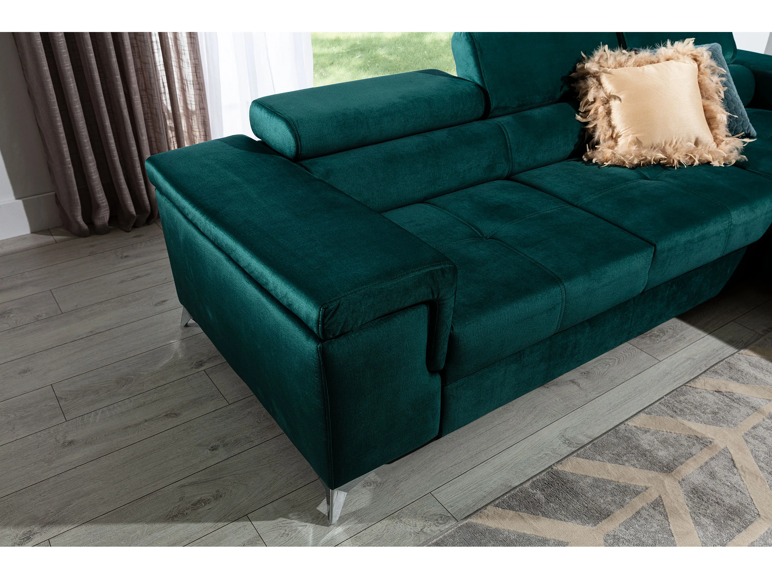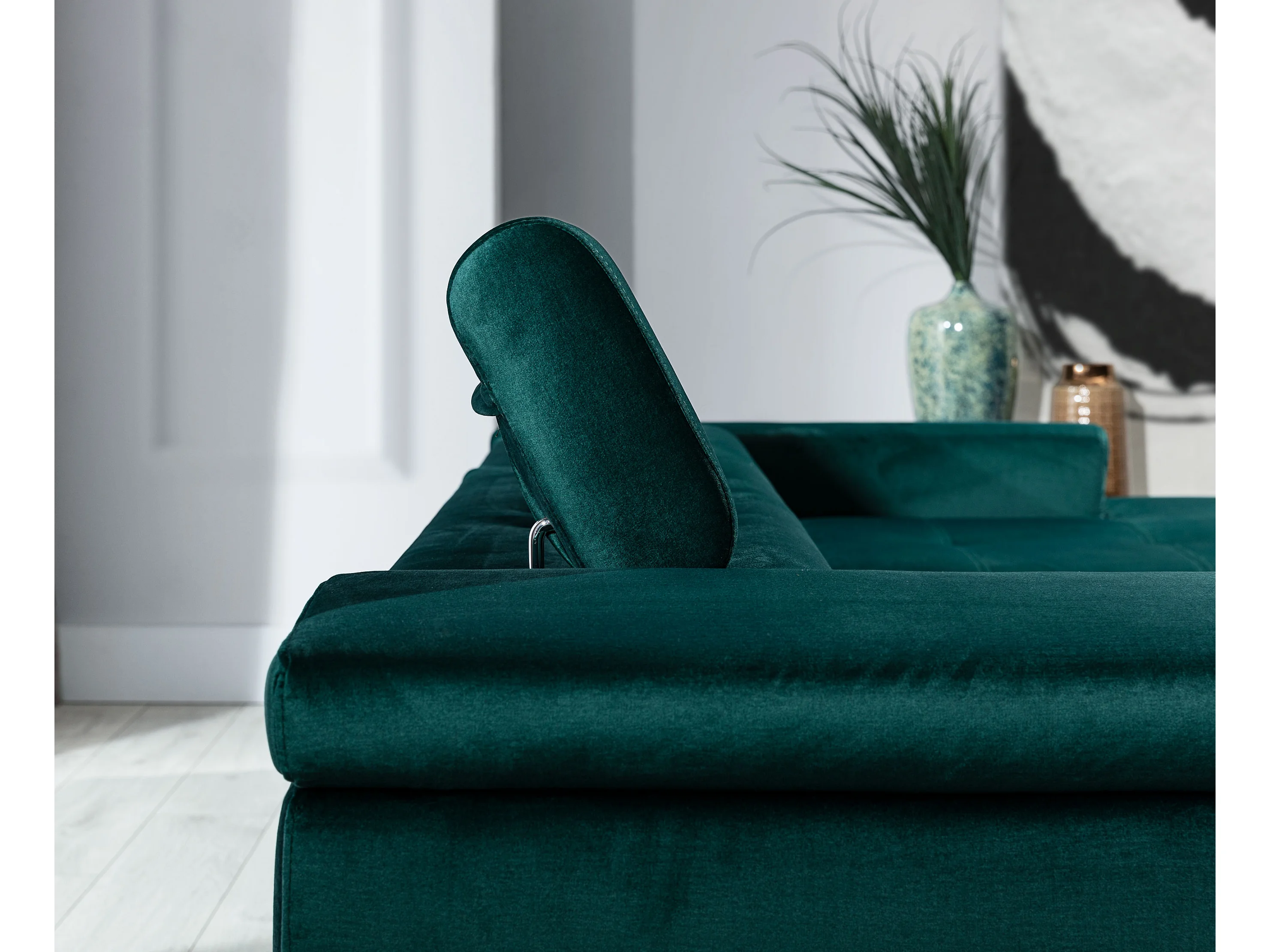 Canapé angle droit convertible velours vert foncé avec appuis-tête réglables Rikaro 280cm