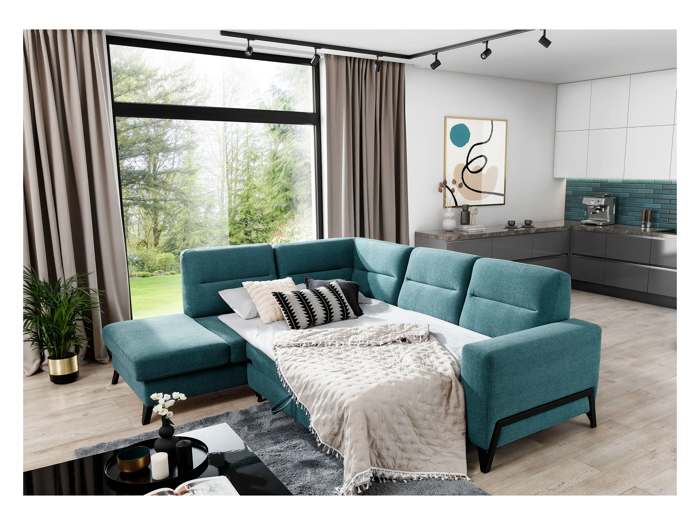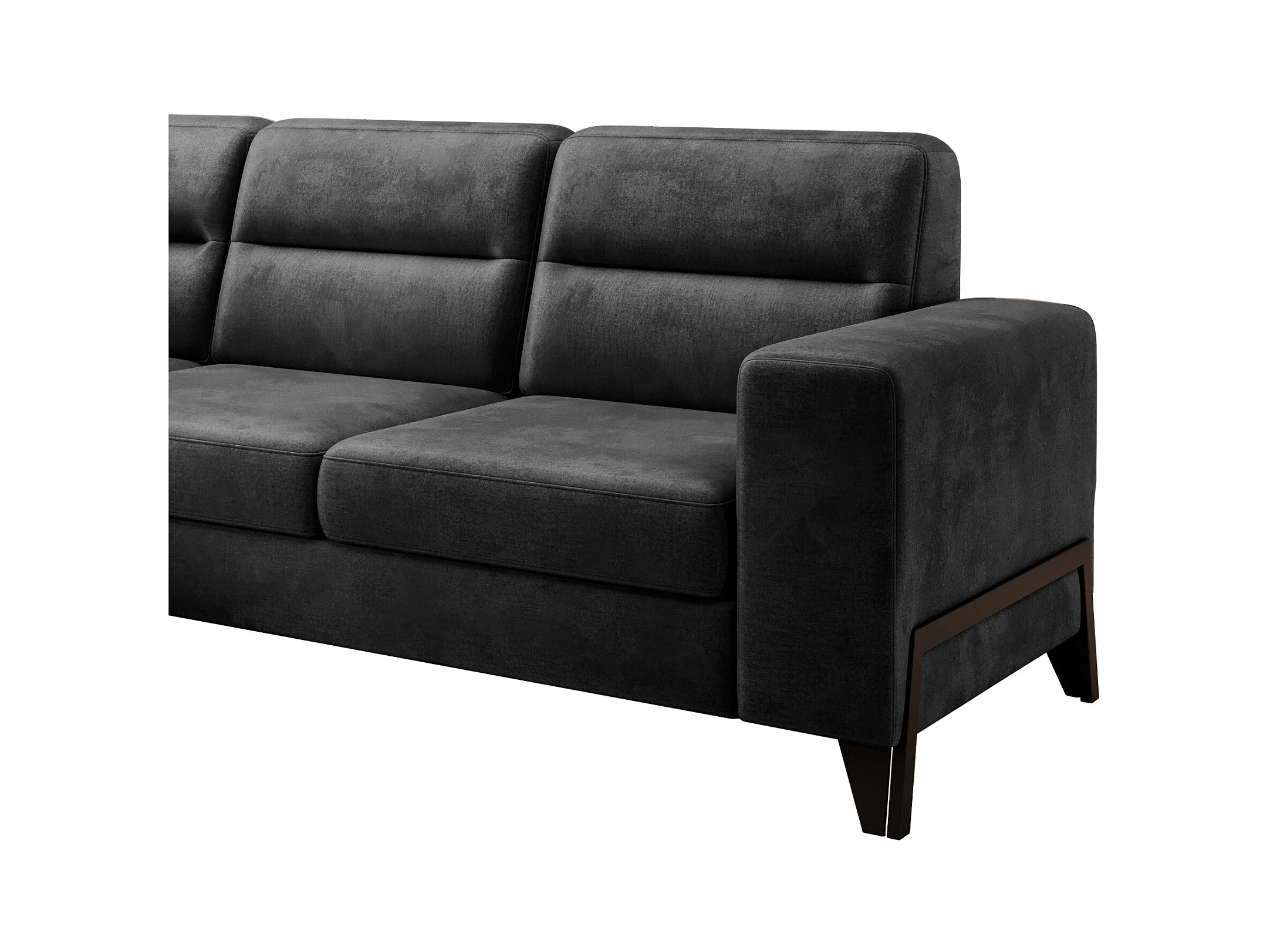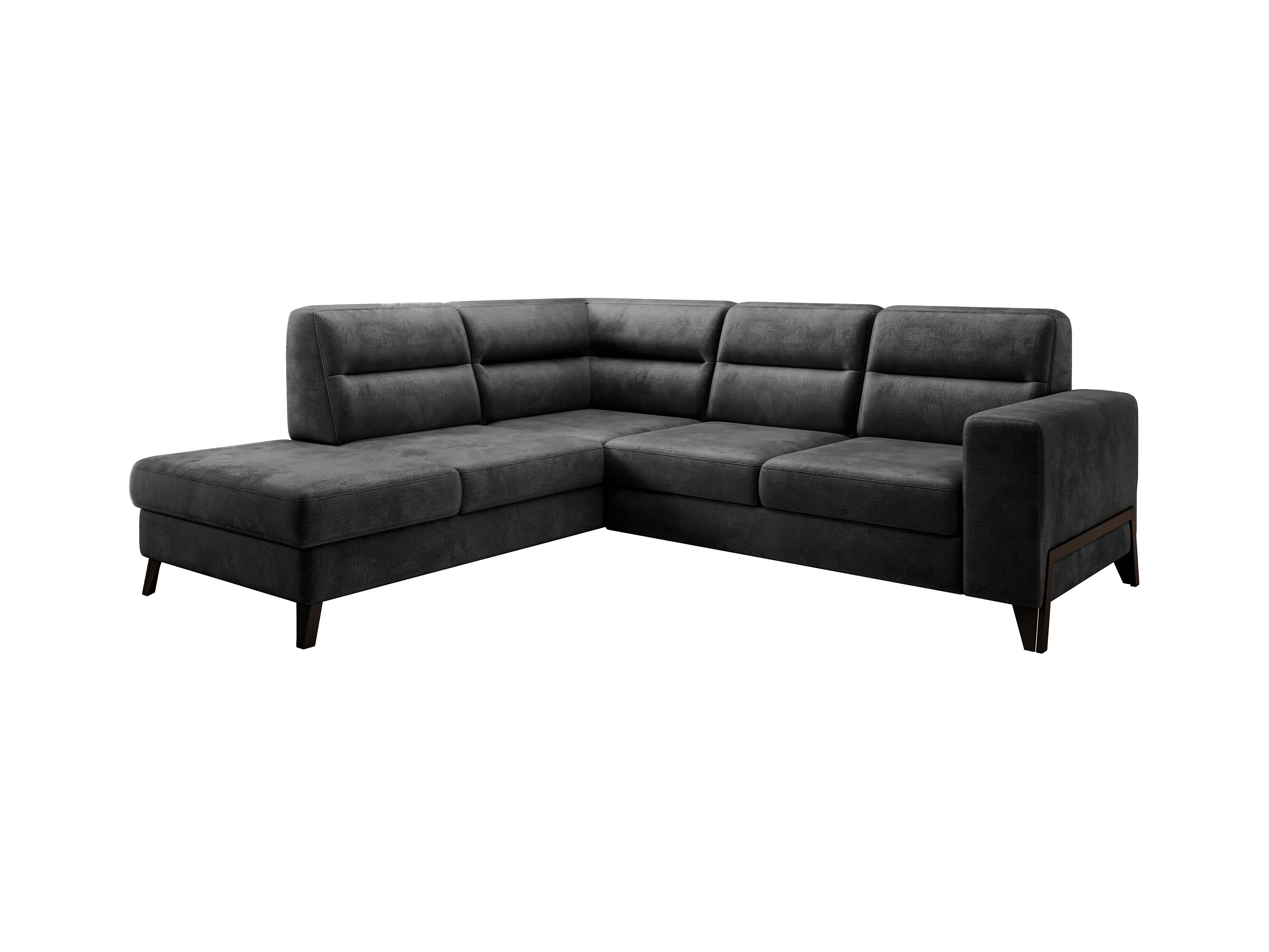 Canapé angle gauche convertible tissu doux noir et pieds acier noir Kassidi 277cm