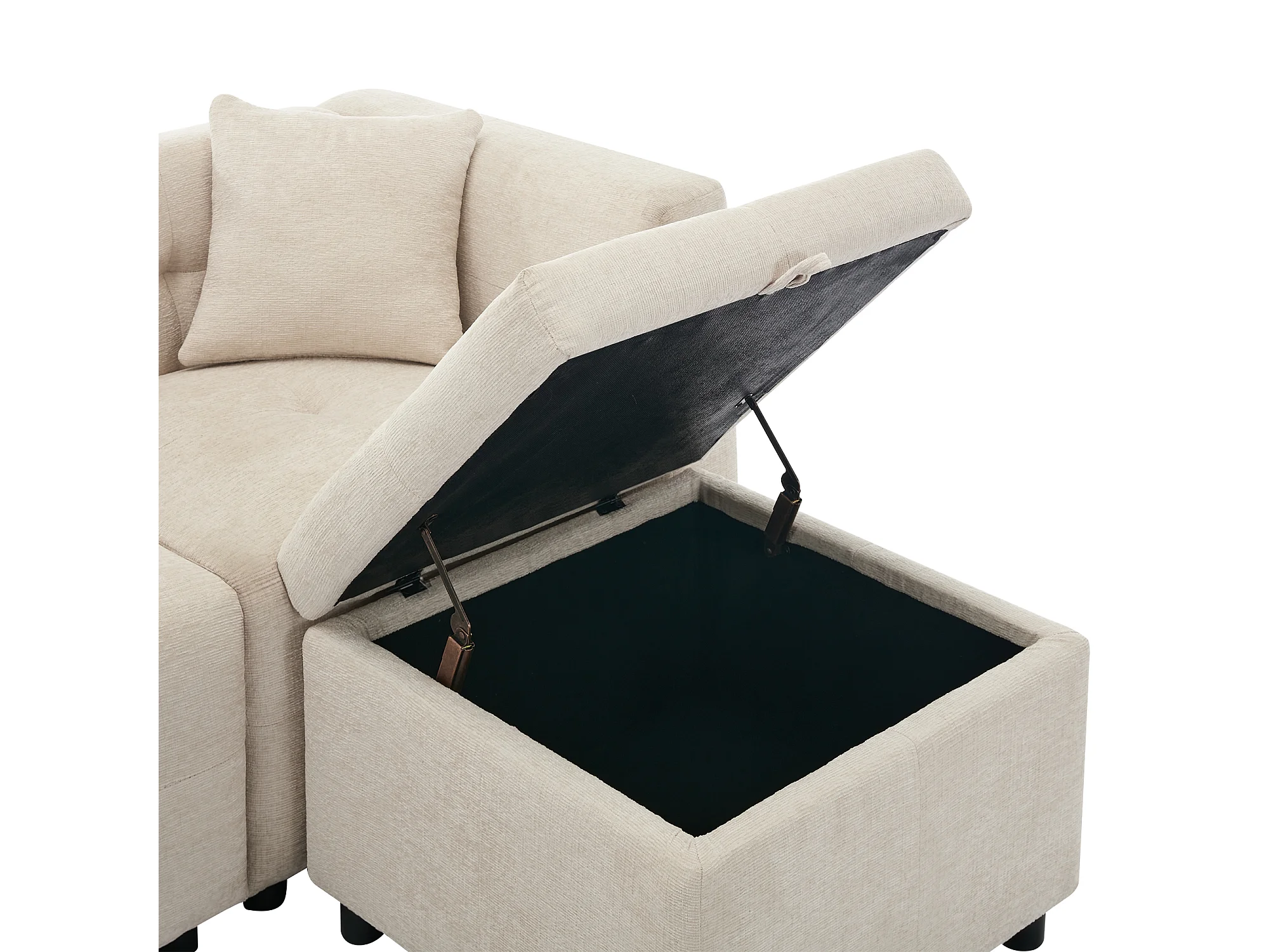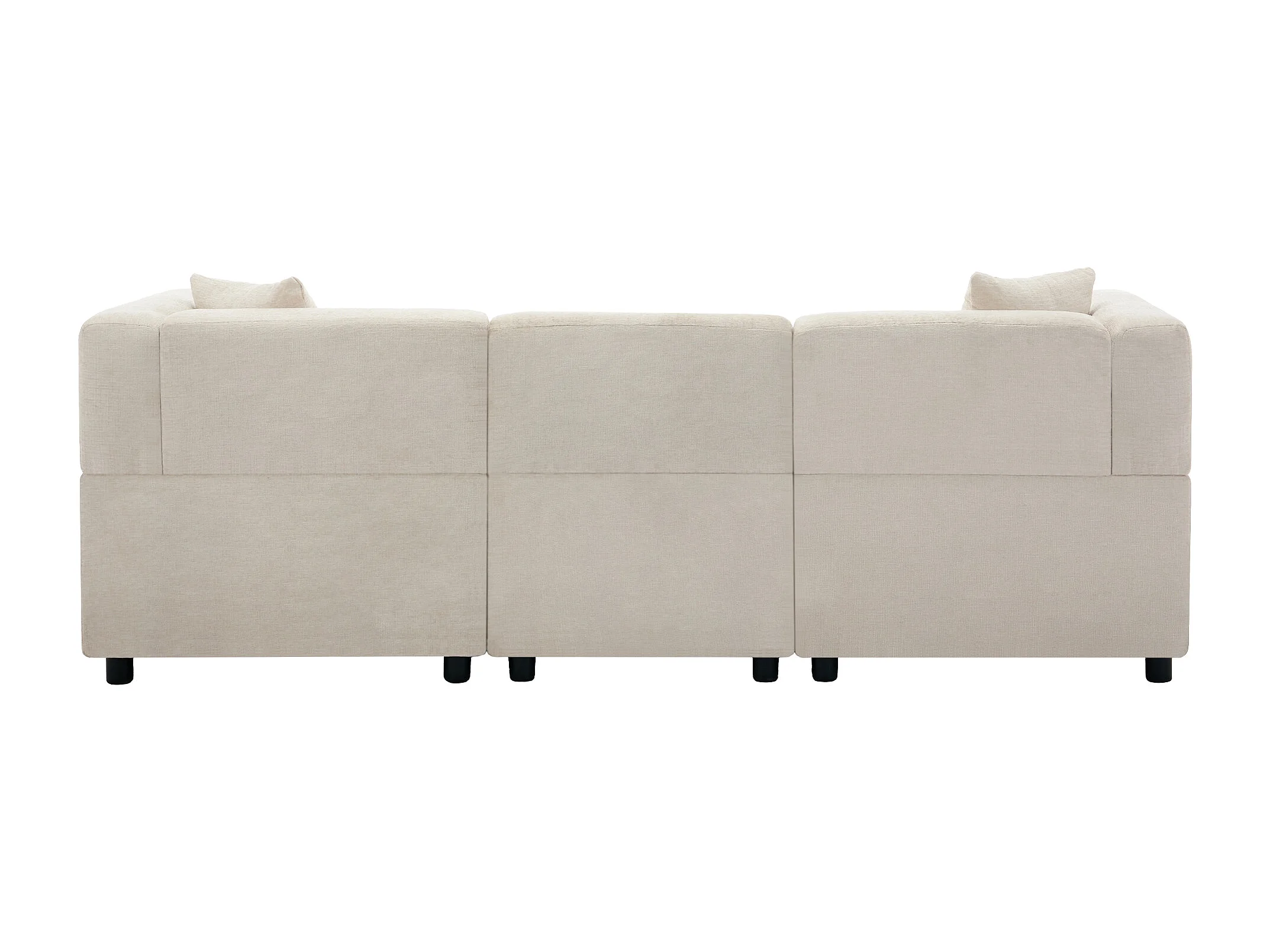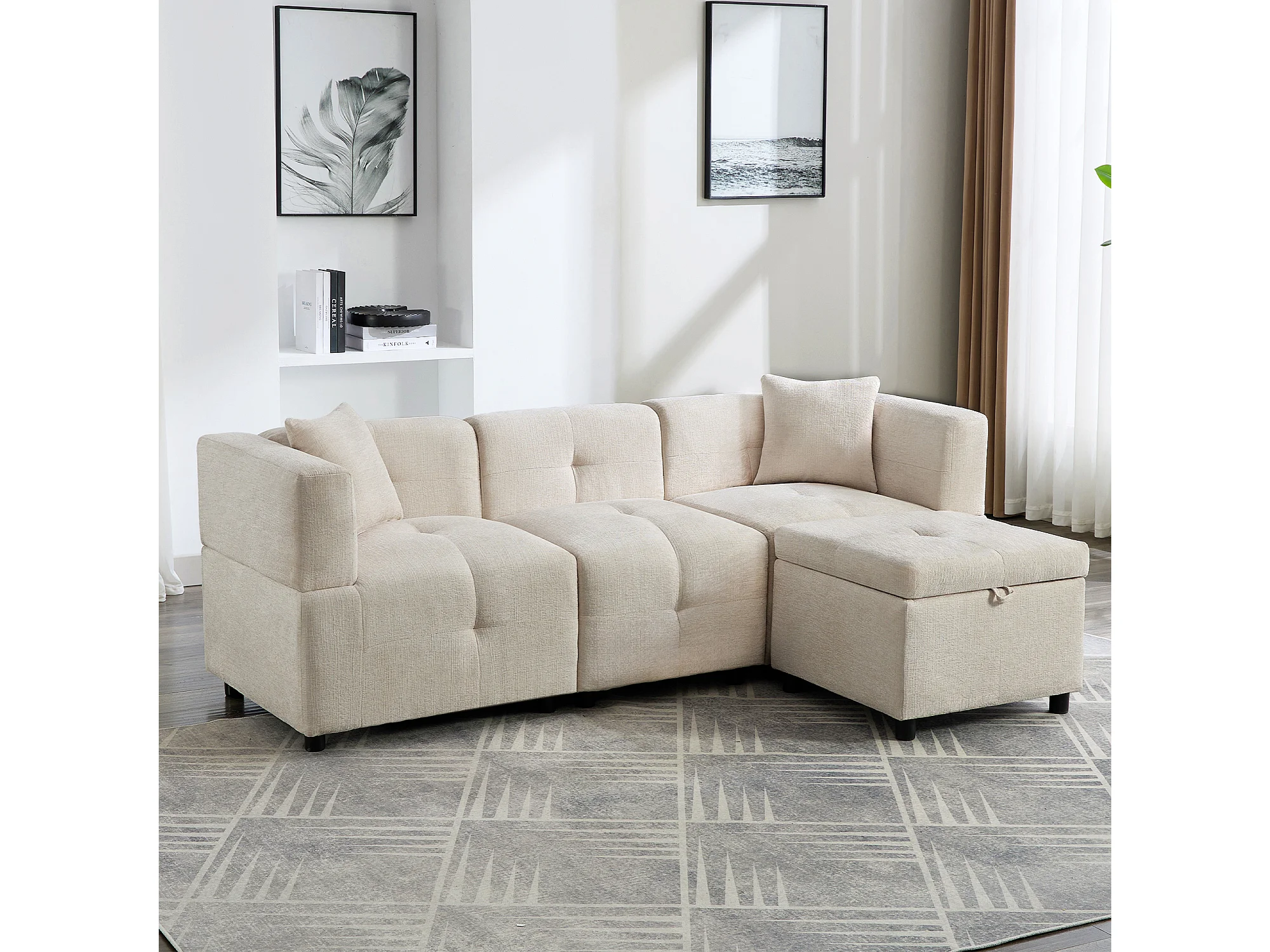 Canapé d’angle 3 places 204x126x69 cm, pouf modulable avec rangement, 2 coussins, chenille beige
