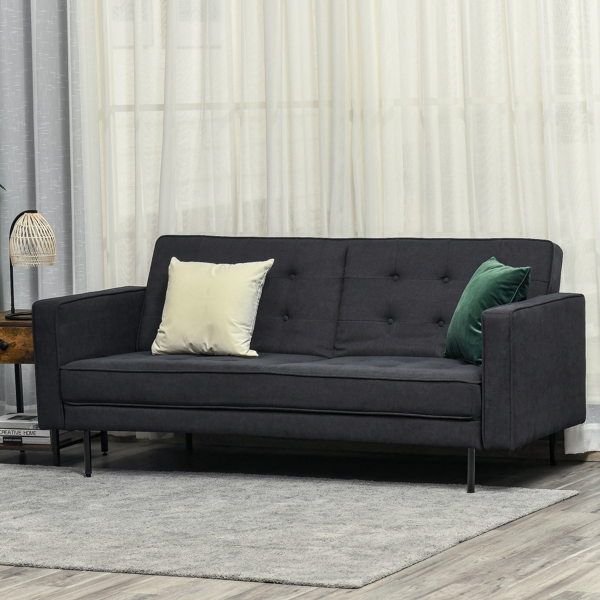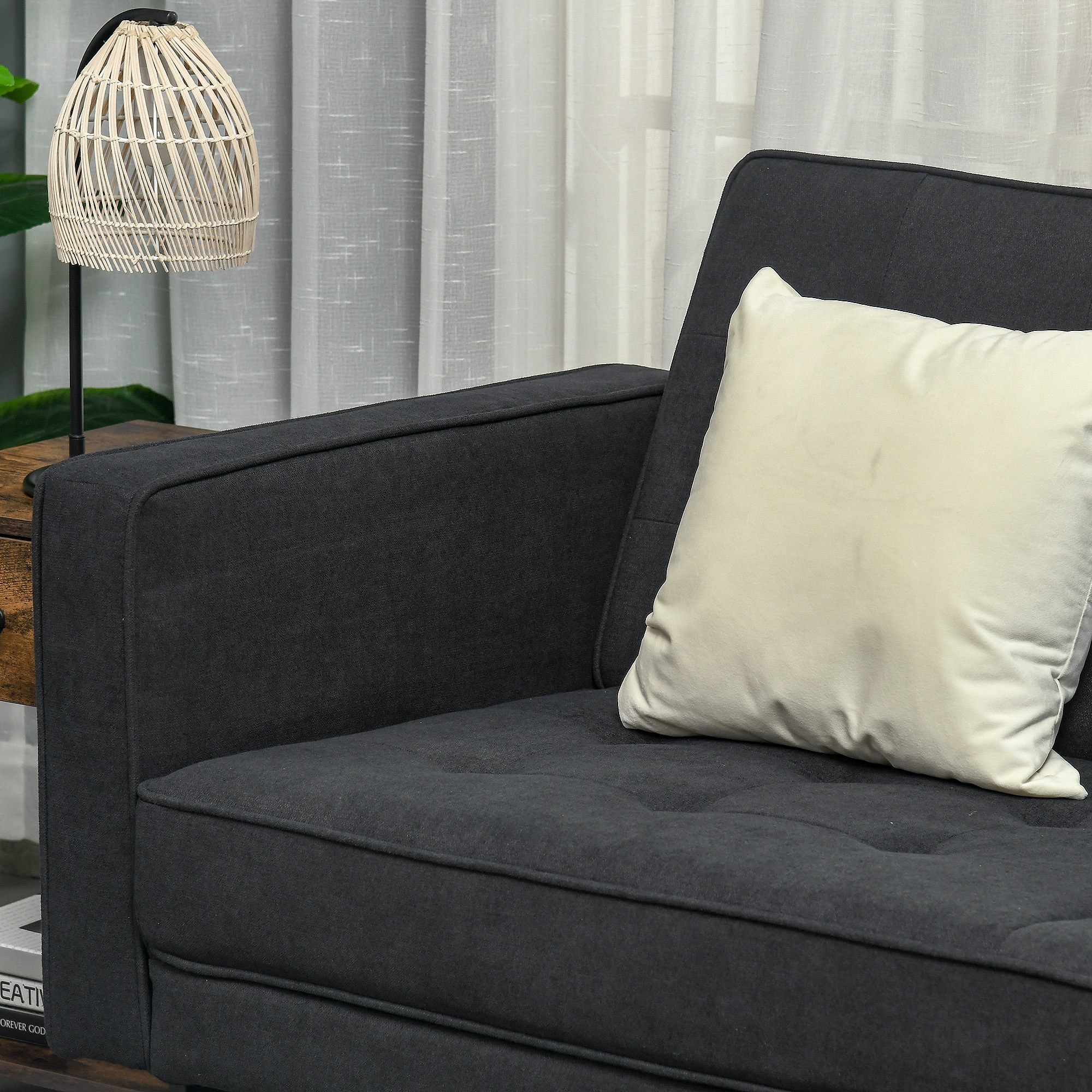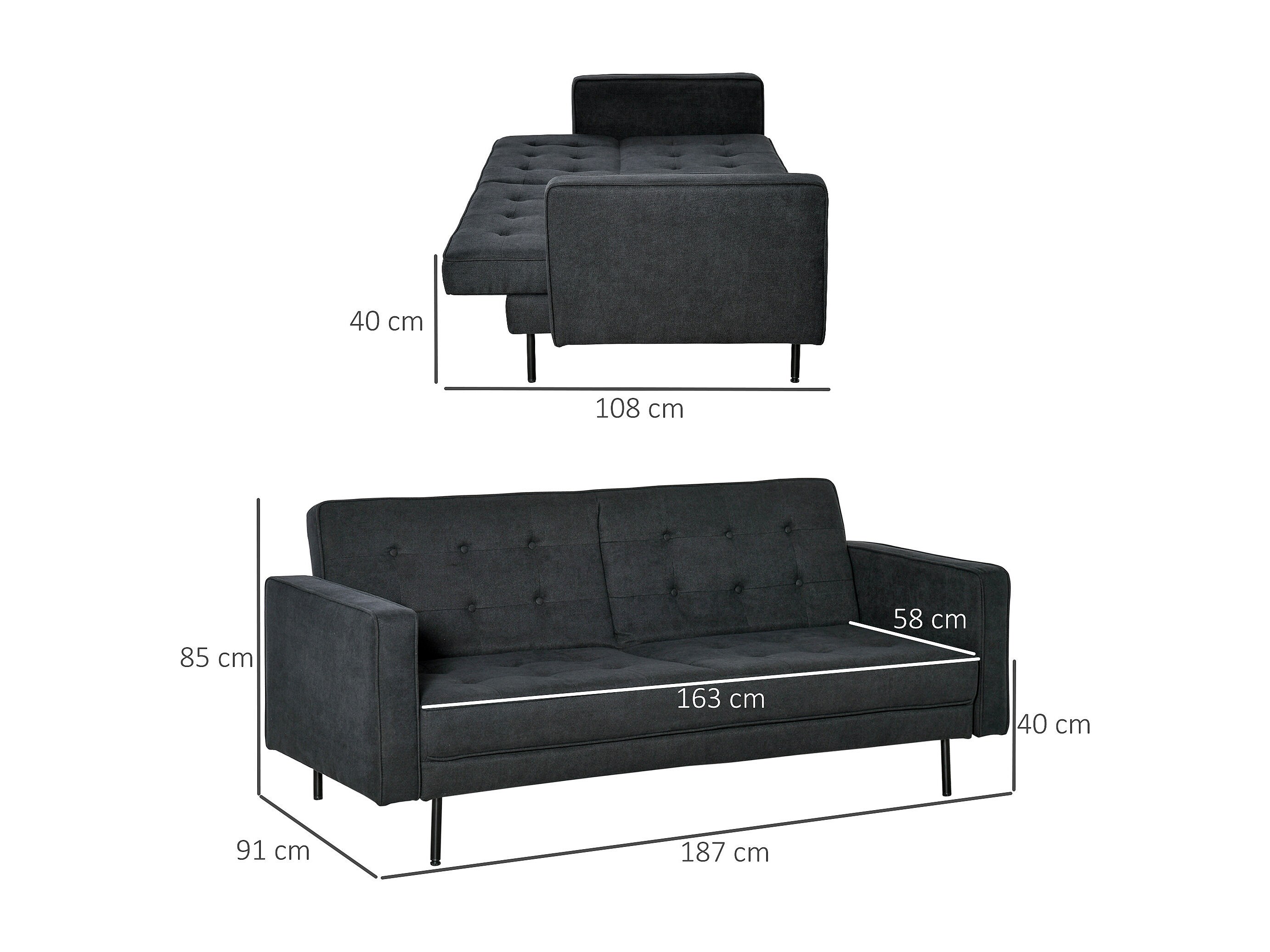 Canapé convertible 2 places style Chesterfield capitonné dossier inclinable 3 positions tissu gris foncé