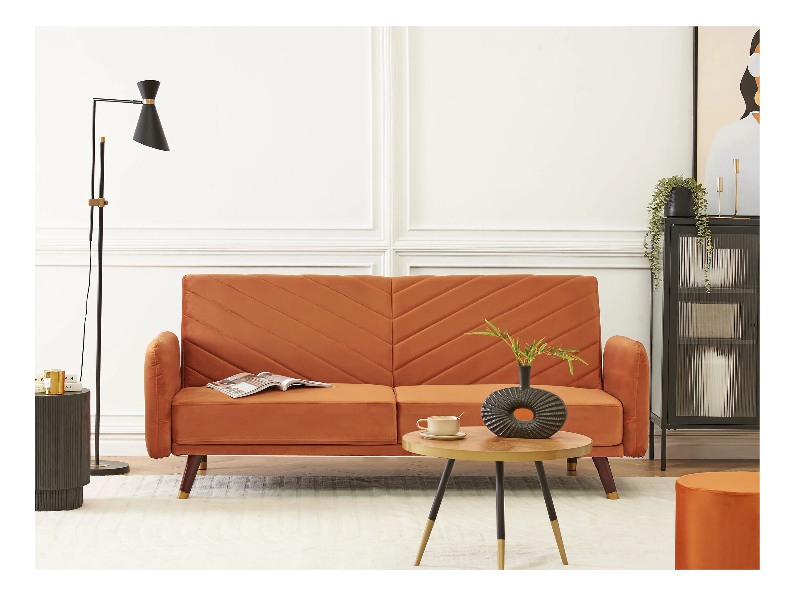 Canapé-lit 3 places SENJA Velours Orange