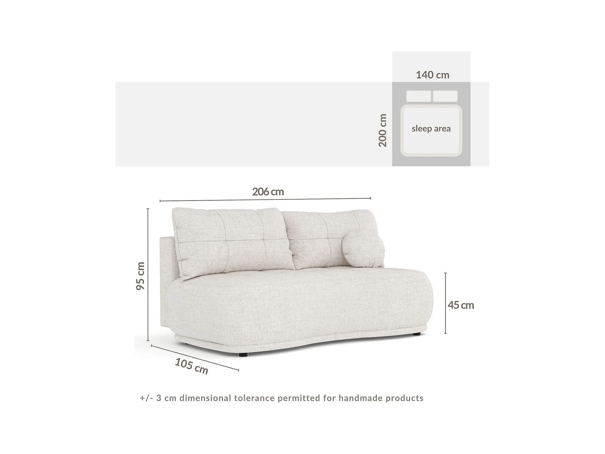 Canapé convertible Cirrus - toile tissée - 3 places - beige