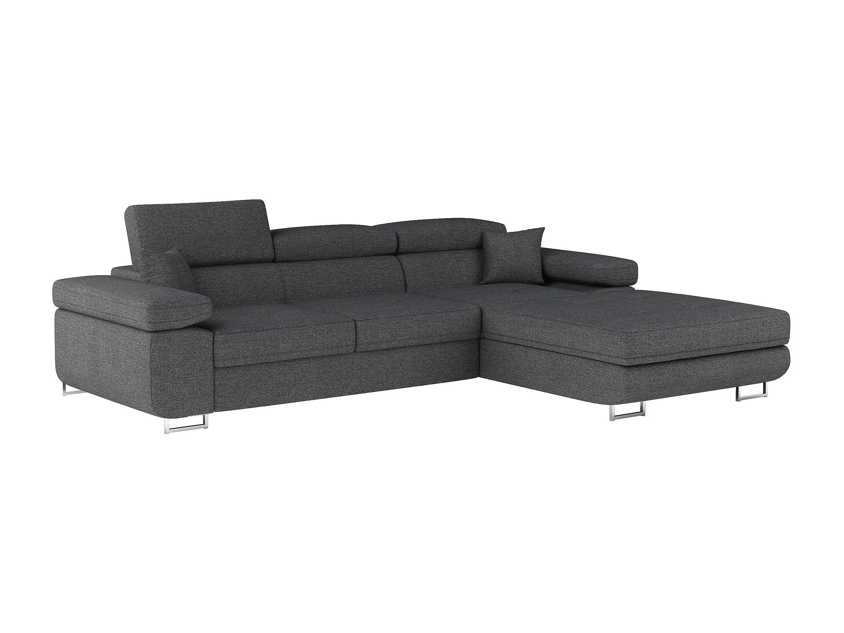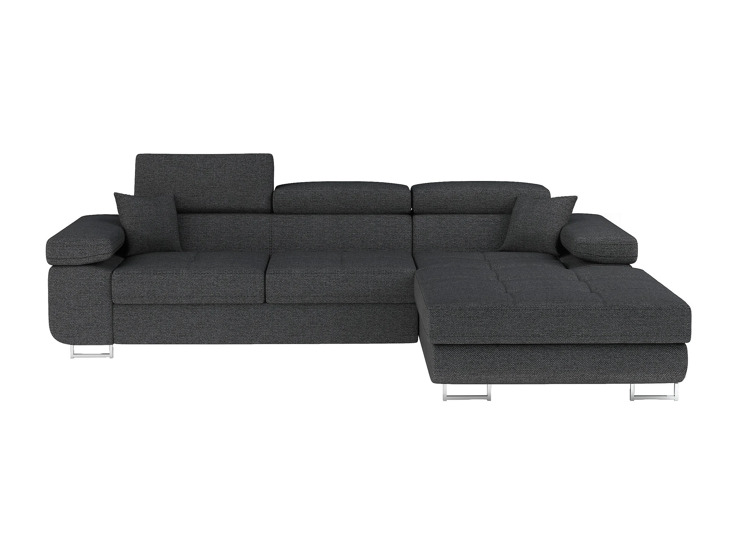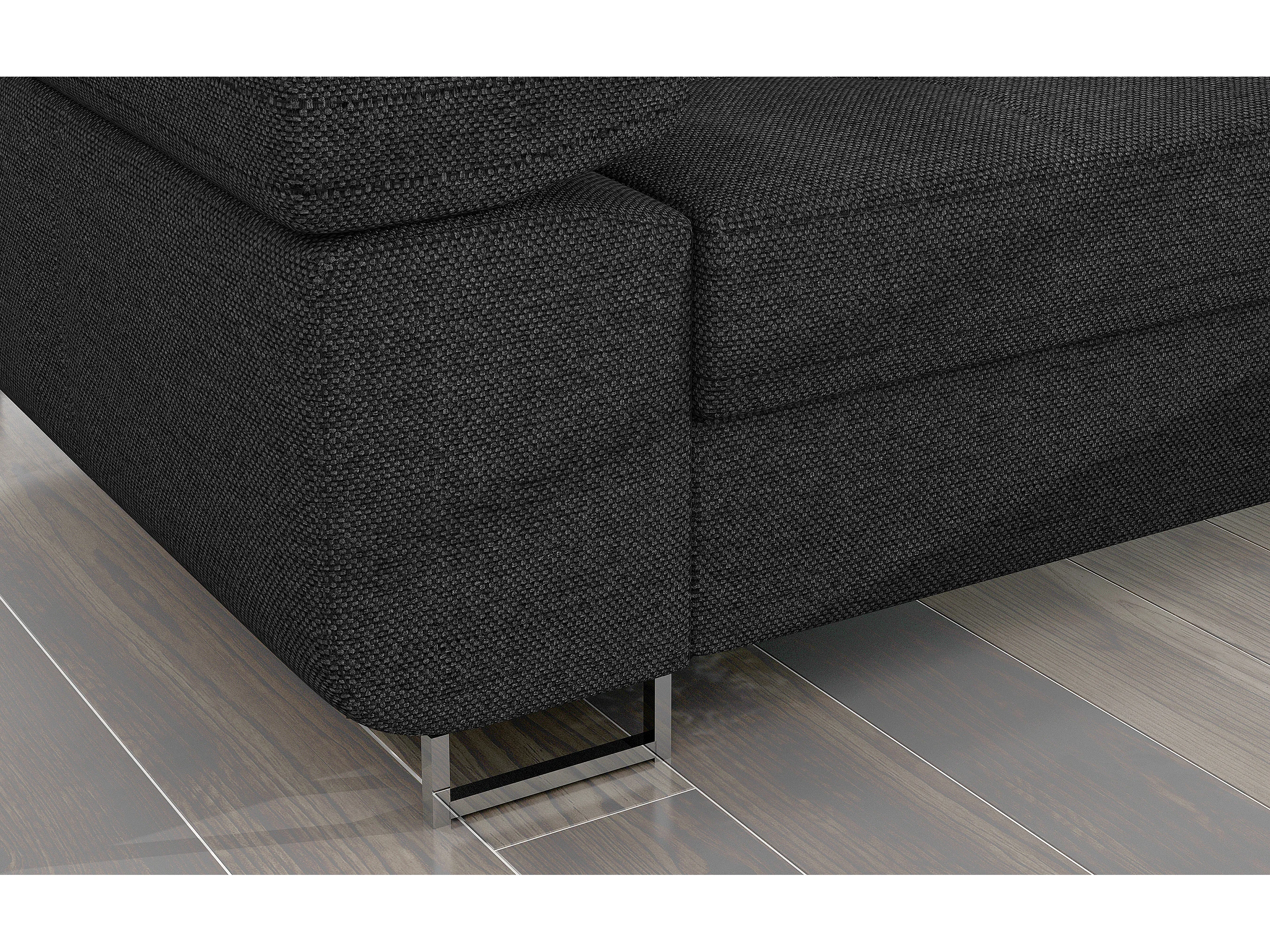 Canapé d'angle convertible tissu appuis-tête réglables KALIZO - Coffre et pieds acier chromé-Gris foncé-angle droit