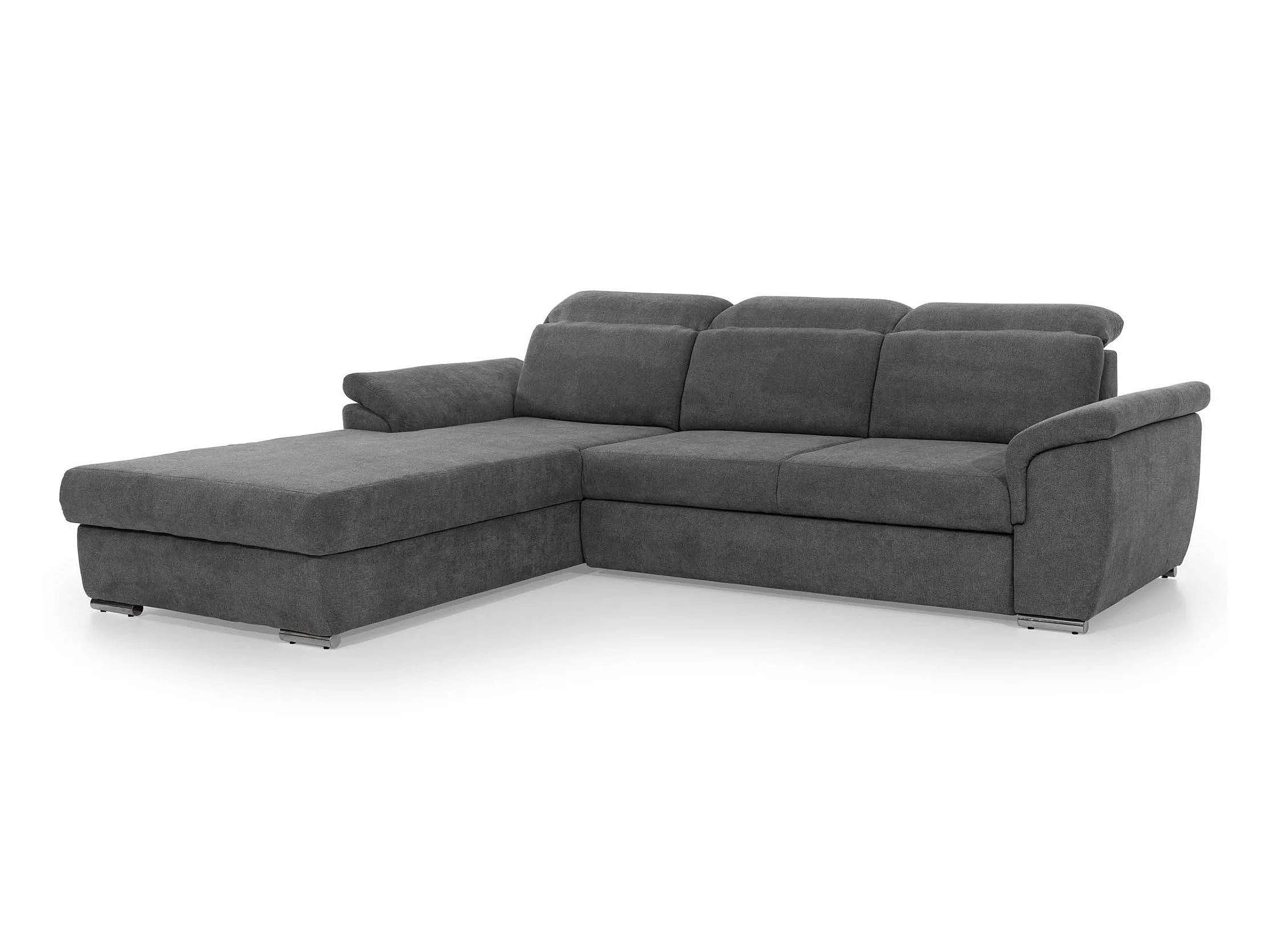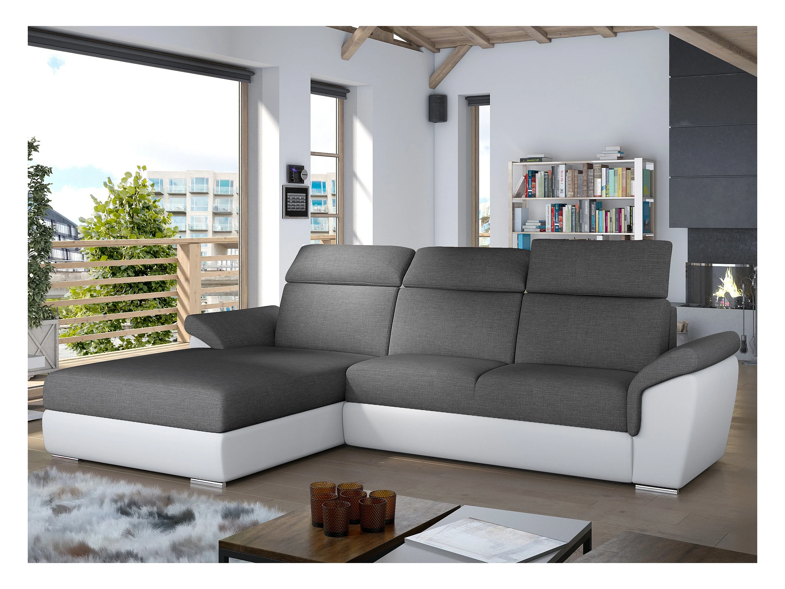 Canapé angle gauche convertible tissu gris clair et simili blanc avec appuis-tête réglables Kepita 260cm