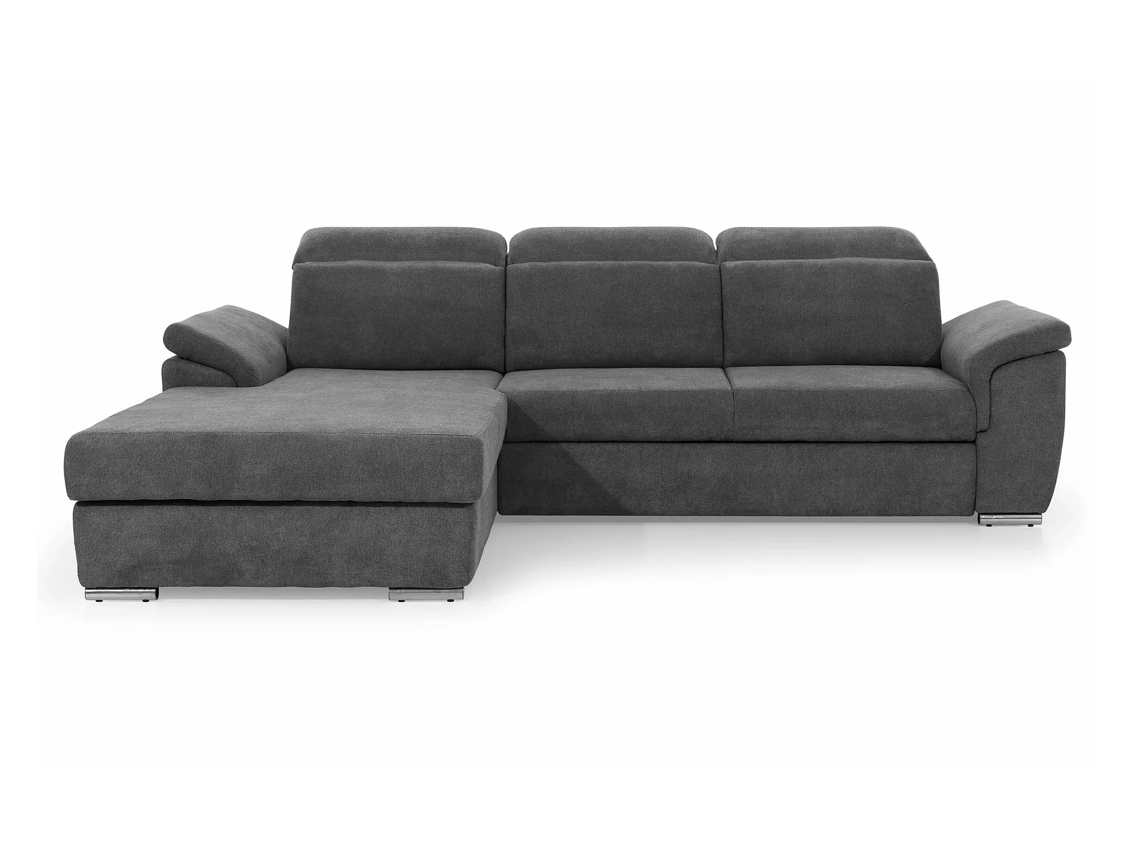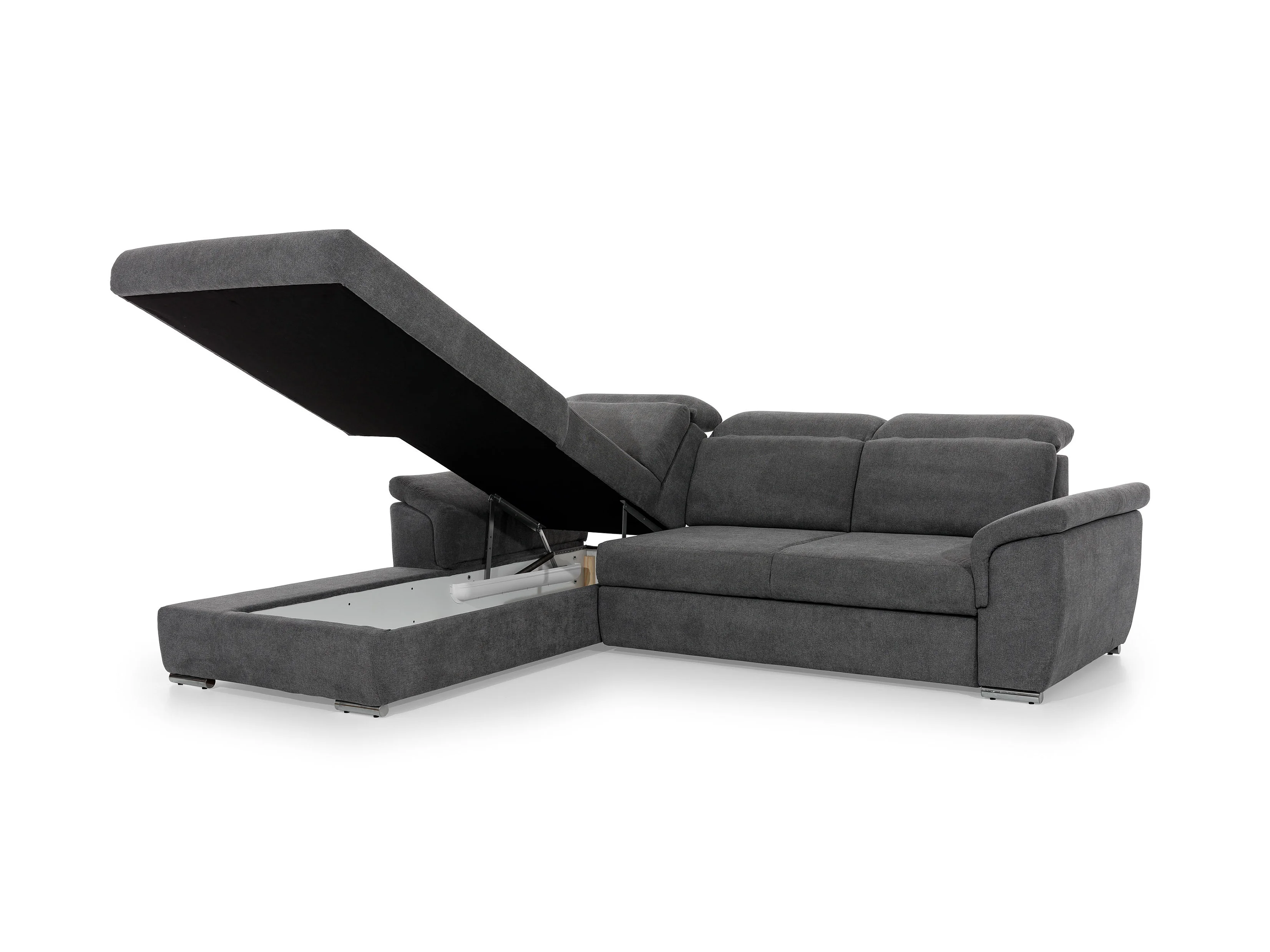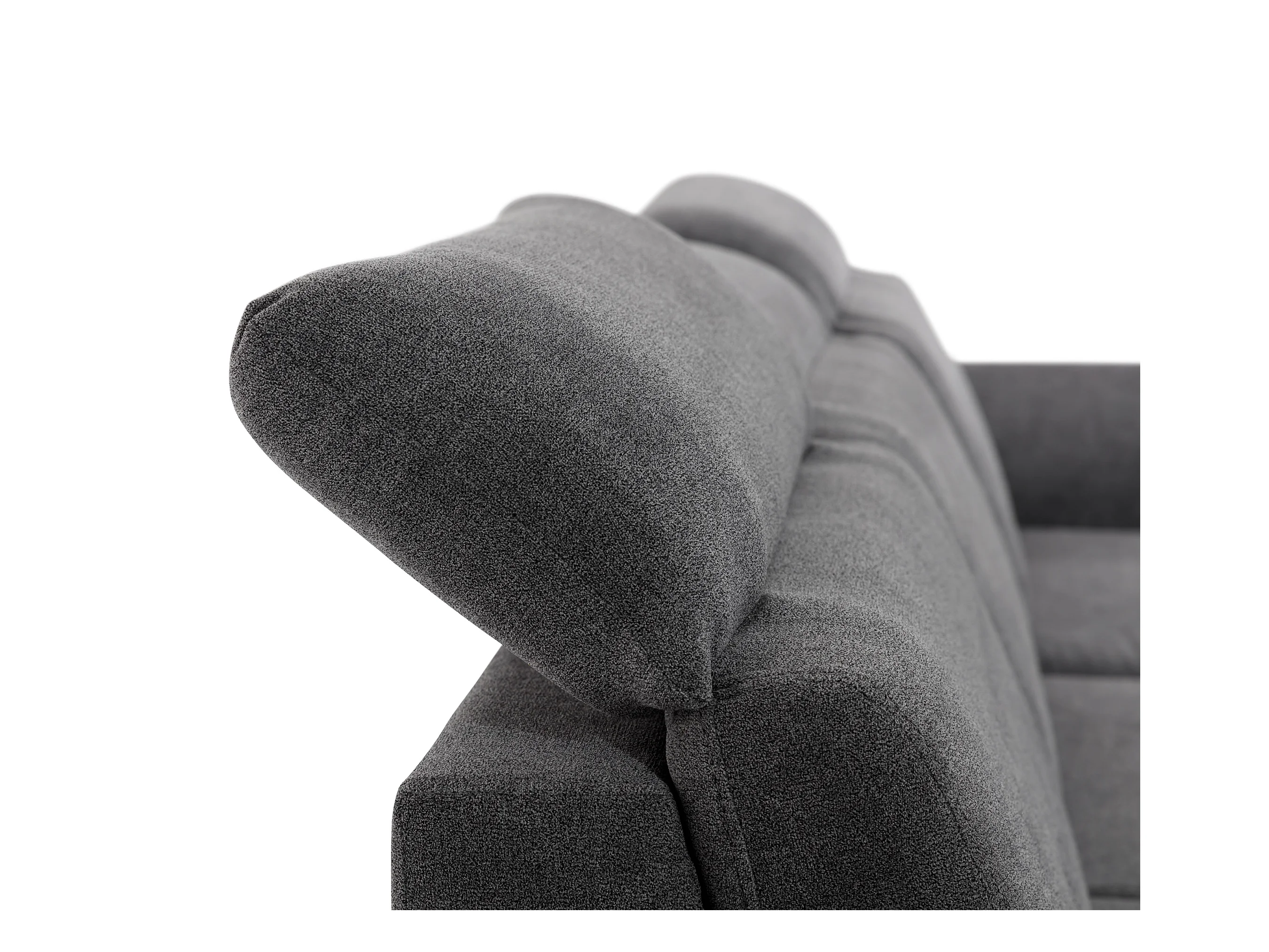 Canapé angle droit convertible tissu gris clair et simili cuir noir avec appuis-tête réglables Kepita 260cm