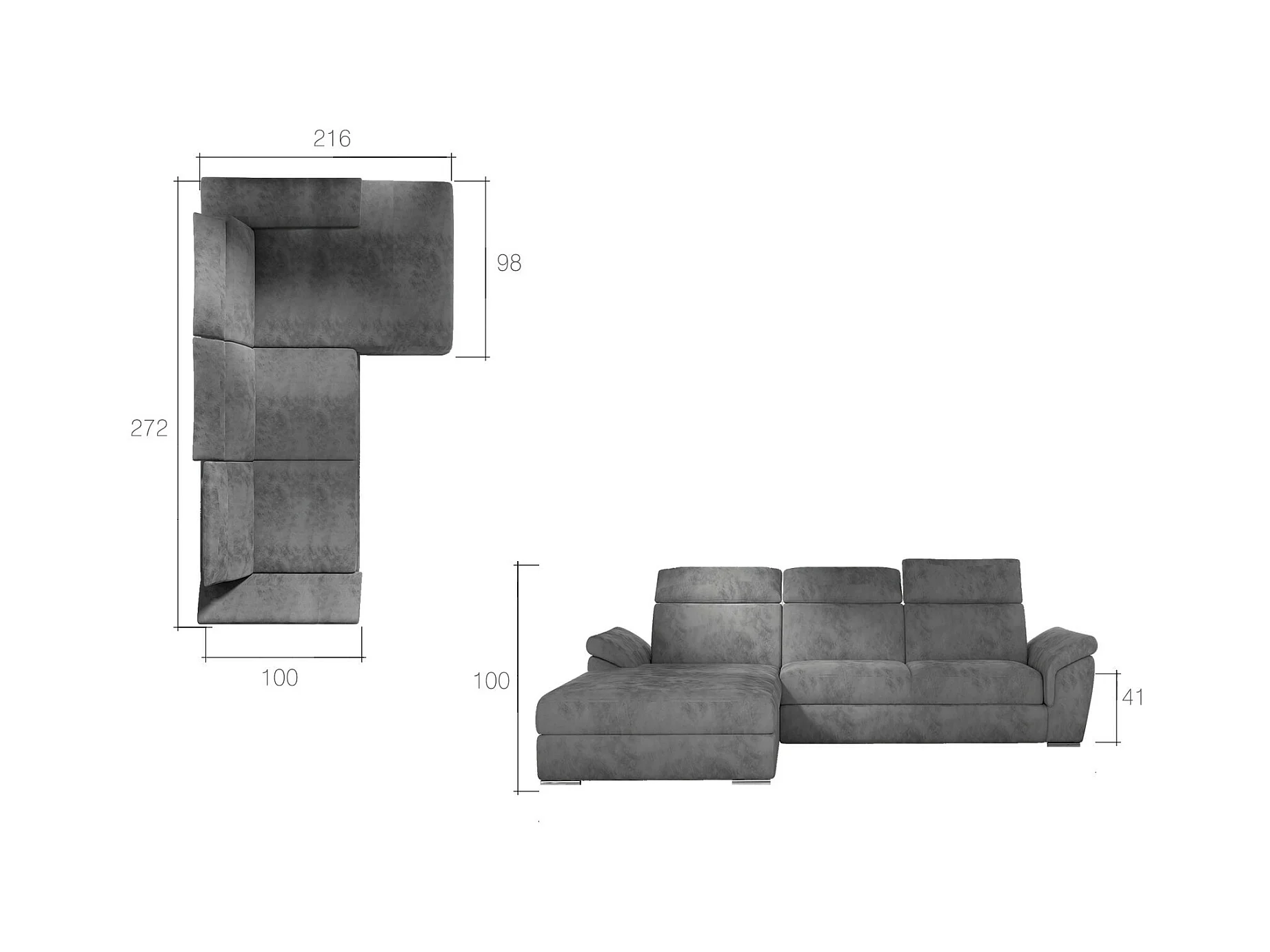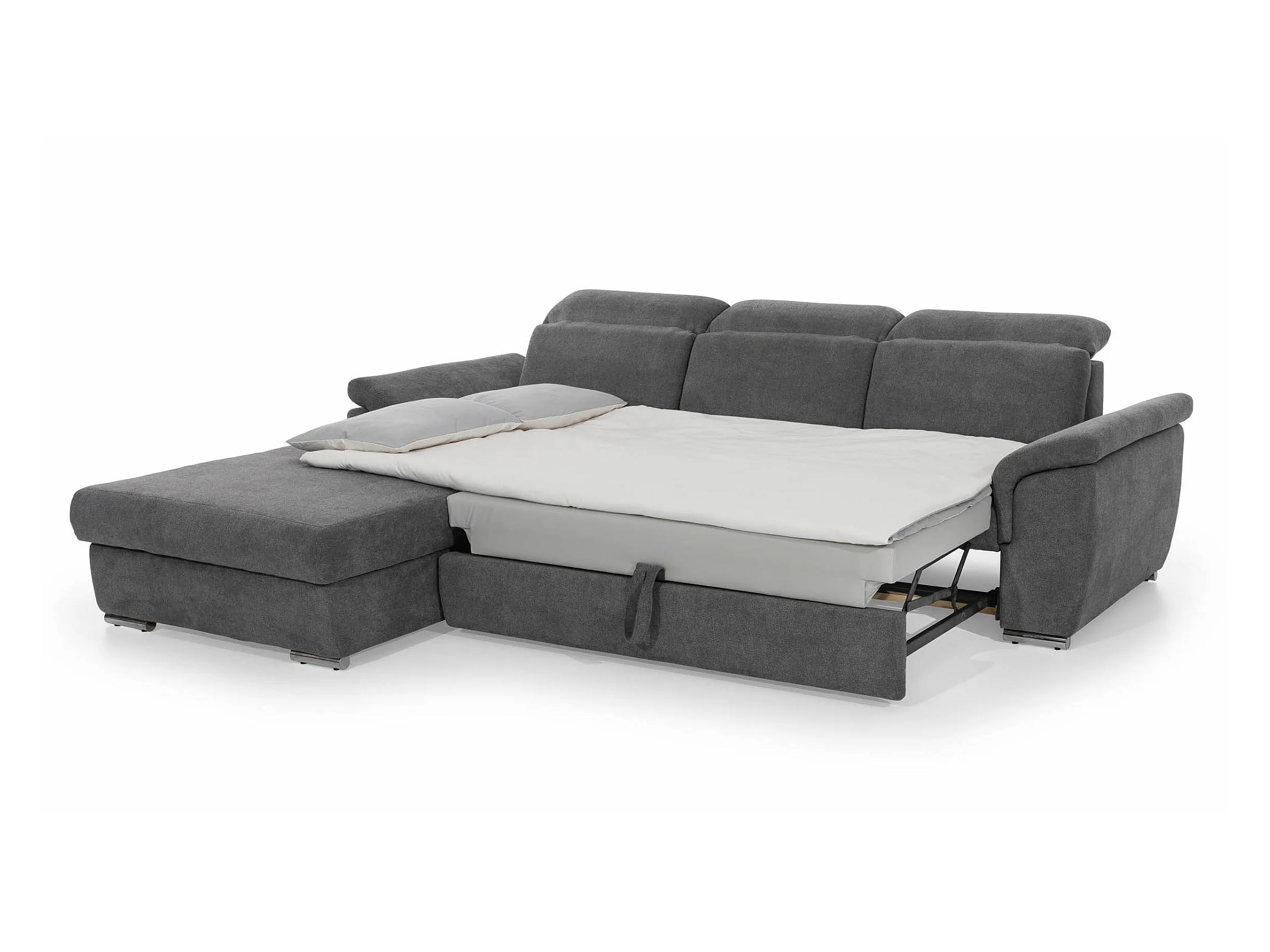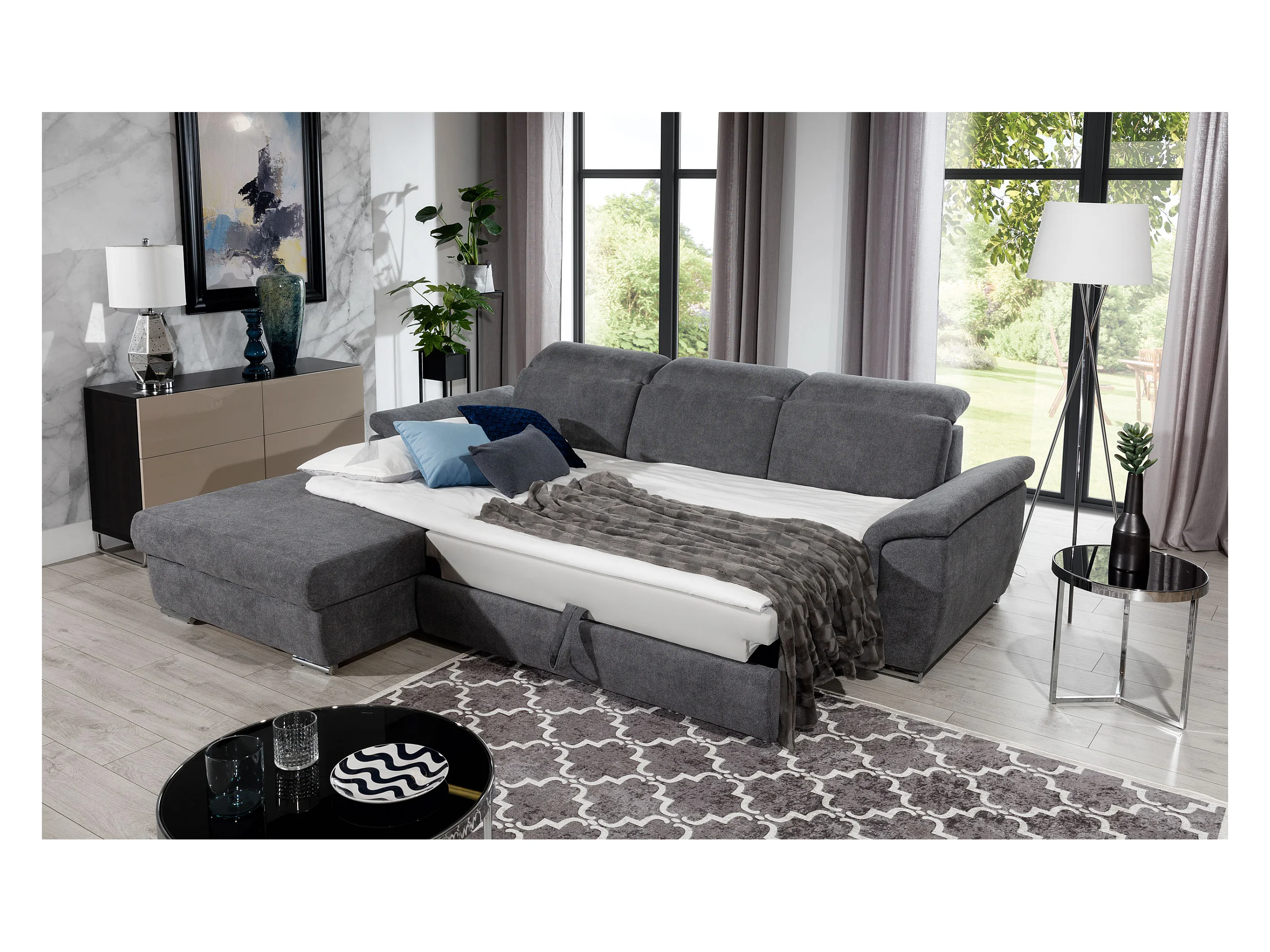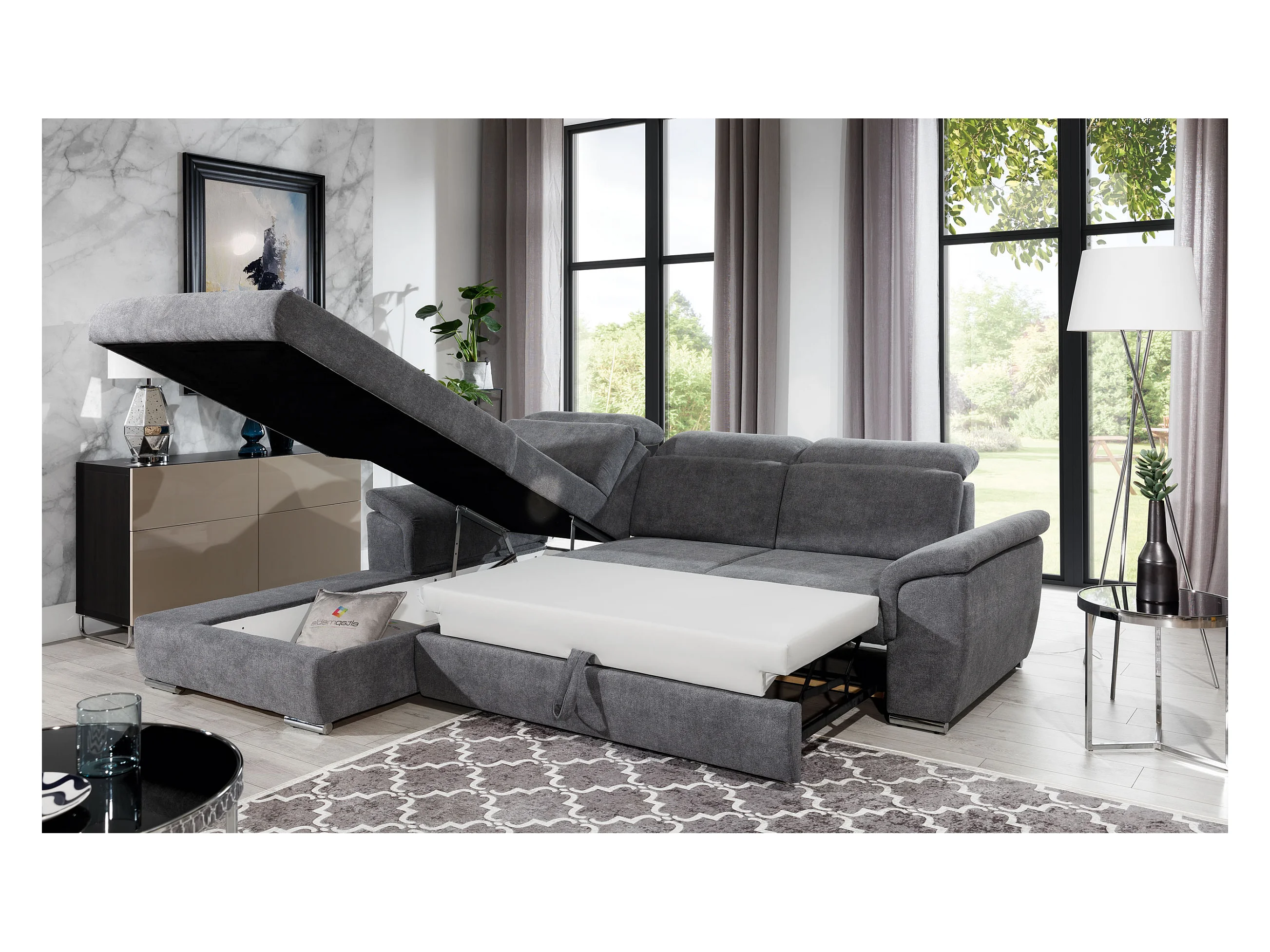 Canapé angle droit convertible tissu gris clair et simili cuir noir avec appuis-tête réglables Kepita 260cm