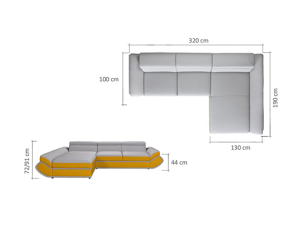 Dimensions: L320 x P190 x H72/91 cm
