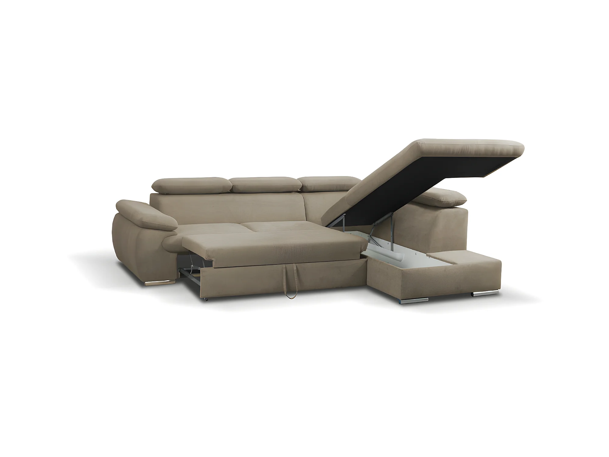Canapé d'angle droit convertible en tissu beige avec coffre de rangement FABIEN