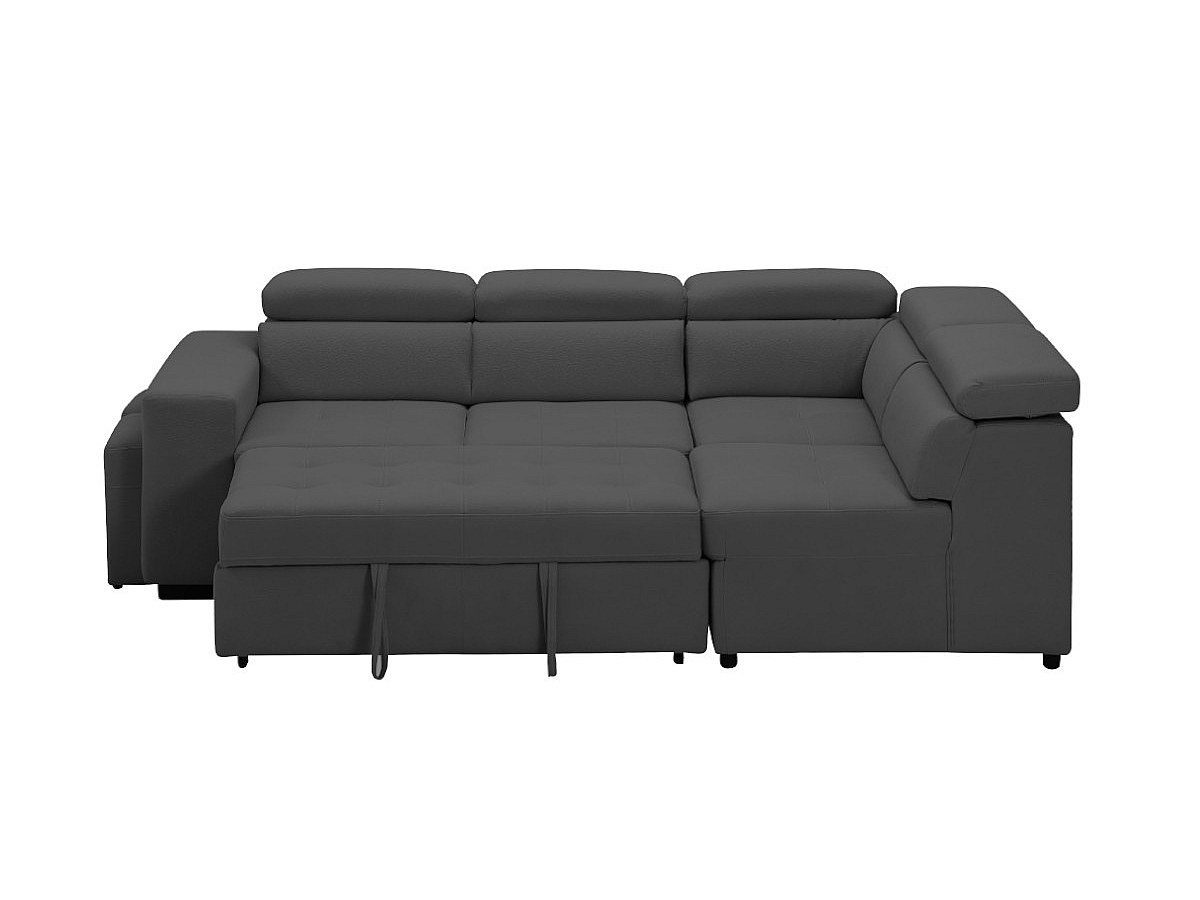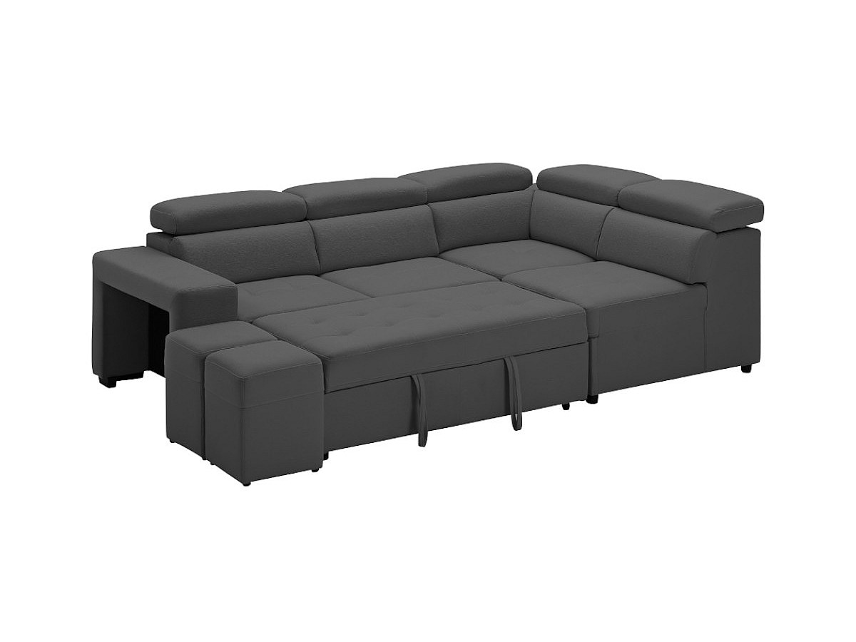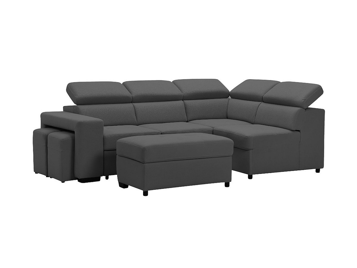 Canapé d'angle convertible en tissu et poufs SELOU - Angle droit - Anthracite