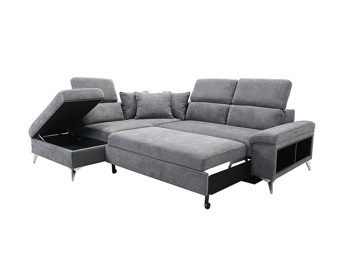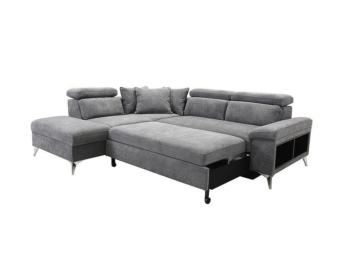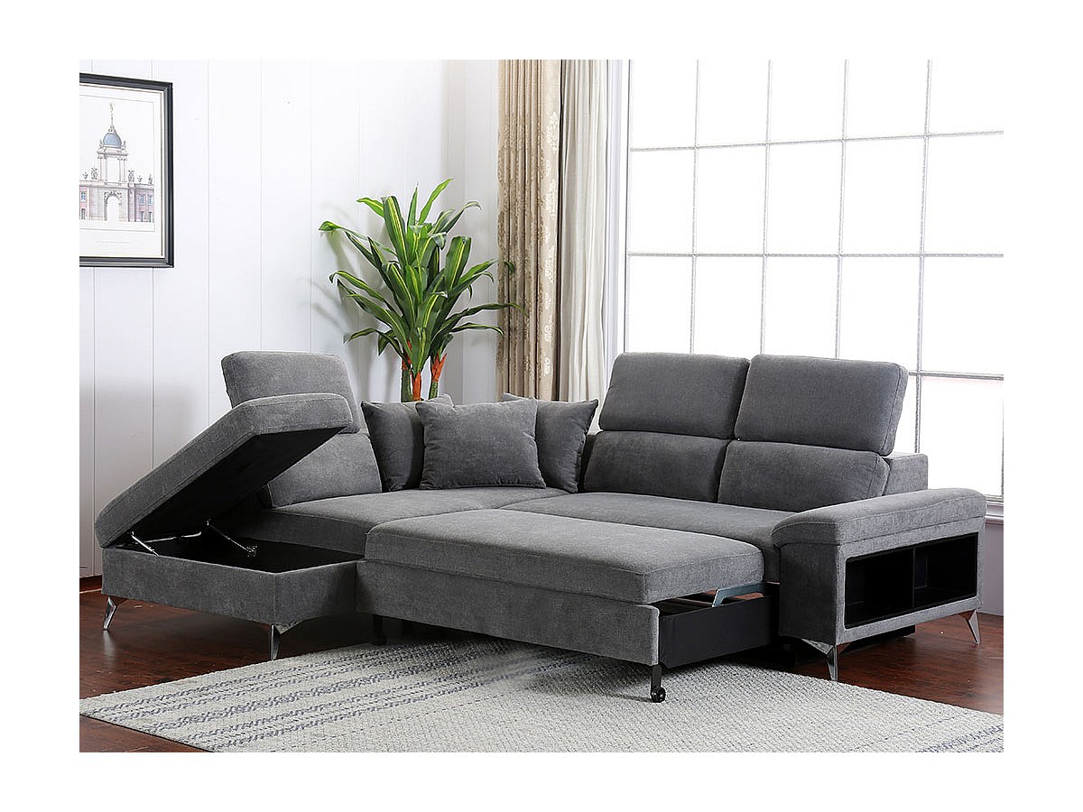 Canapé d'angle convertible en tissu VEZIANE - Gris - Angle gauche