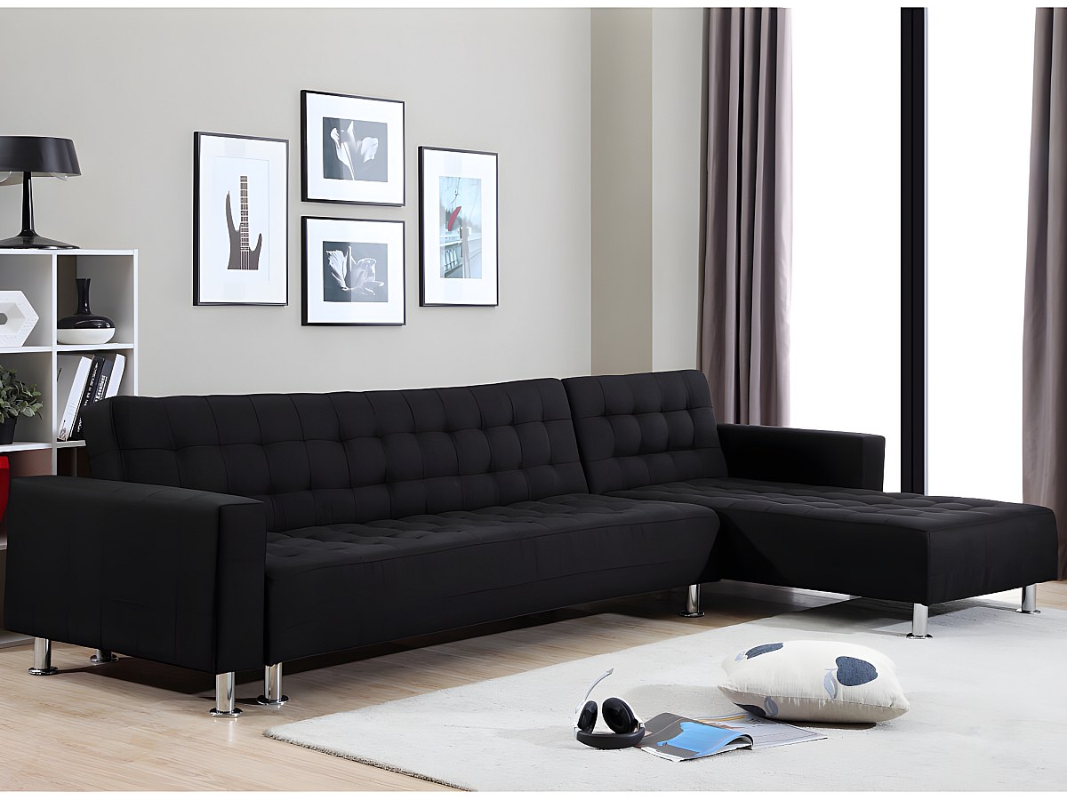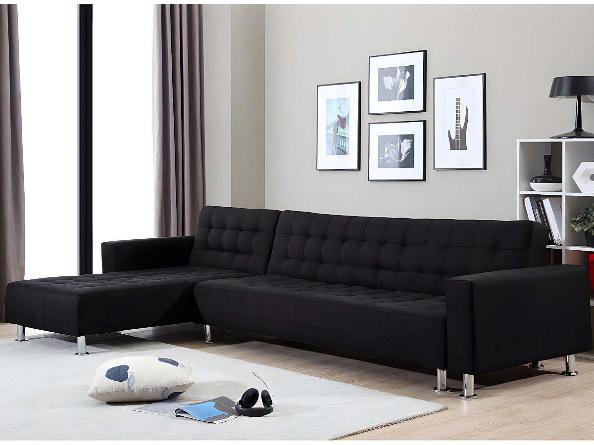 Canapé d'angle convertible et réversible en tissu WILLIS - Noir