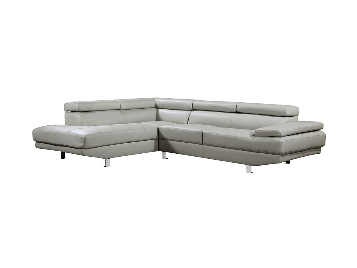 Canapé d'angle en cuir DUNCAN - Gris clair - Angle gauche