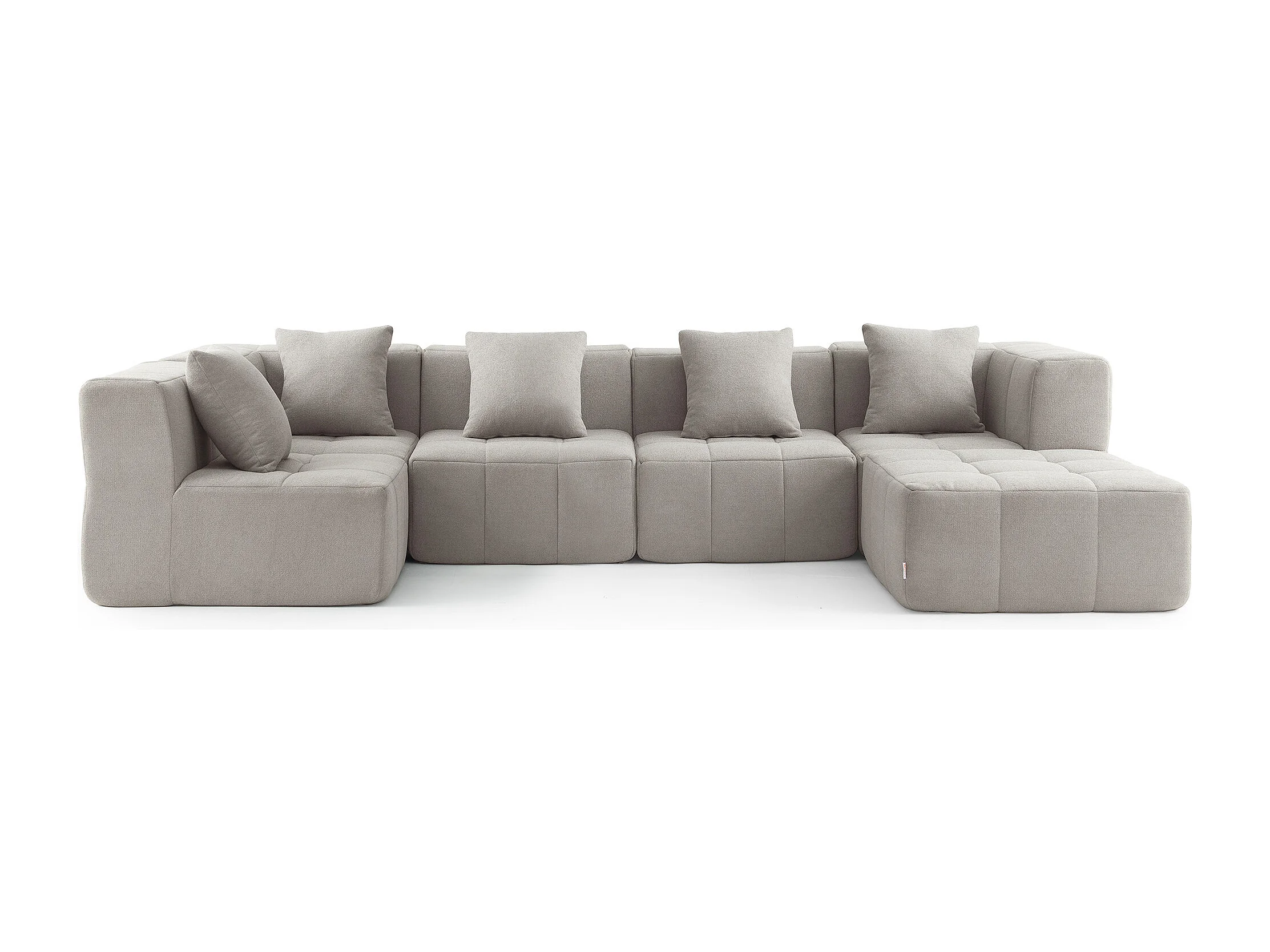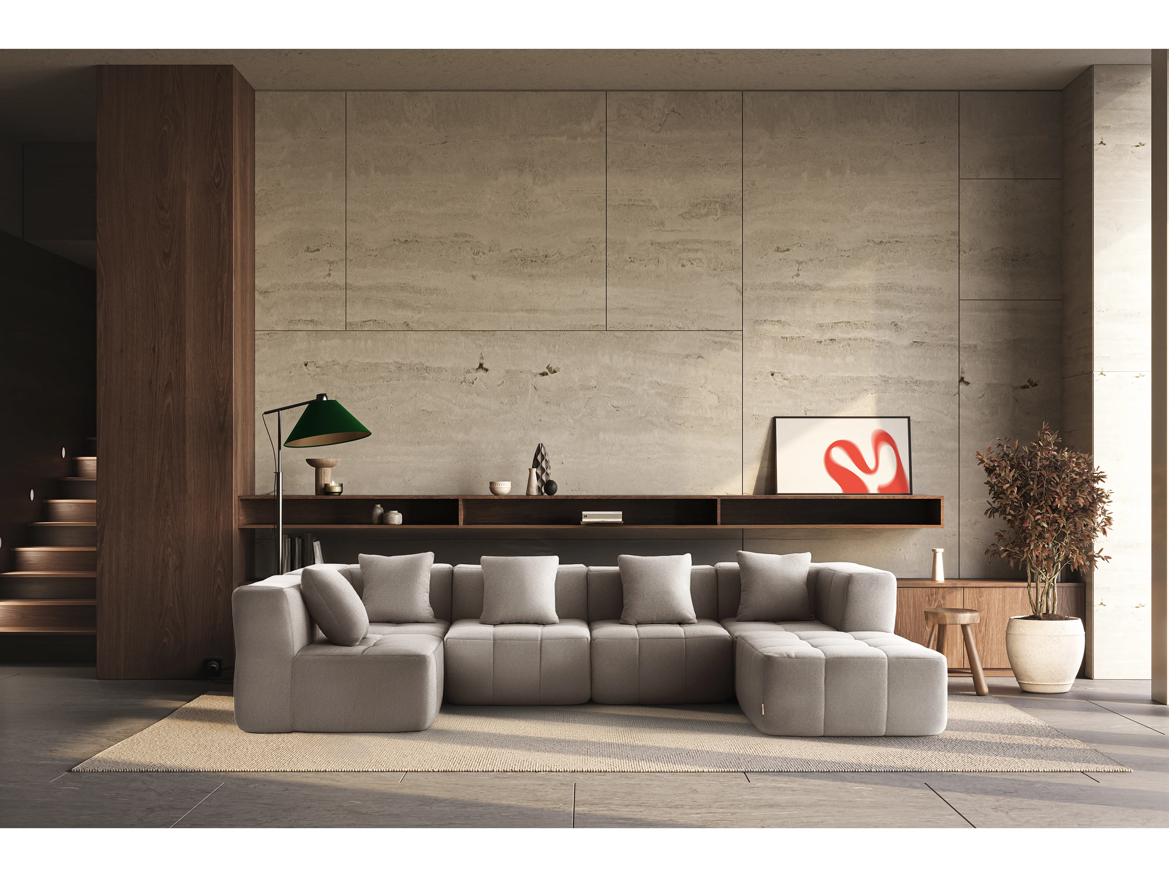 Canapé d'angle modulaire MILYSOFA SOFABULOUS 5 places avec méridienne Tissu fine bouclette Beige pierre