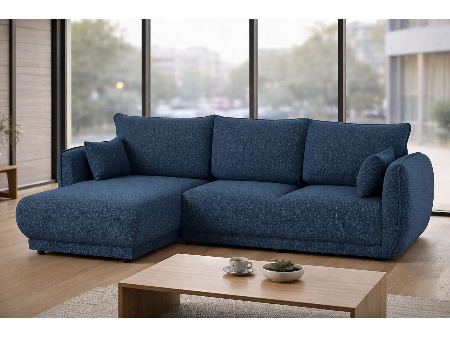 Canapé d’angle Mossa gauche convertible avec coffre – canapé moderne pour salon 2 en 1