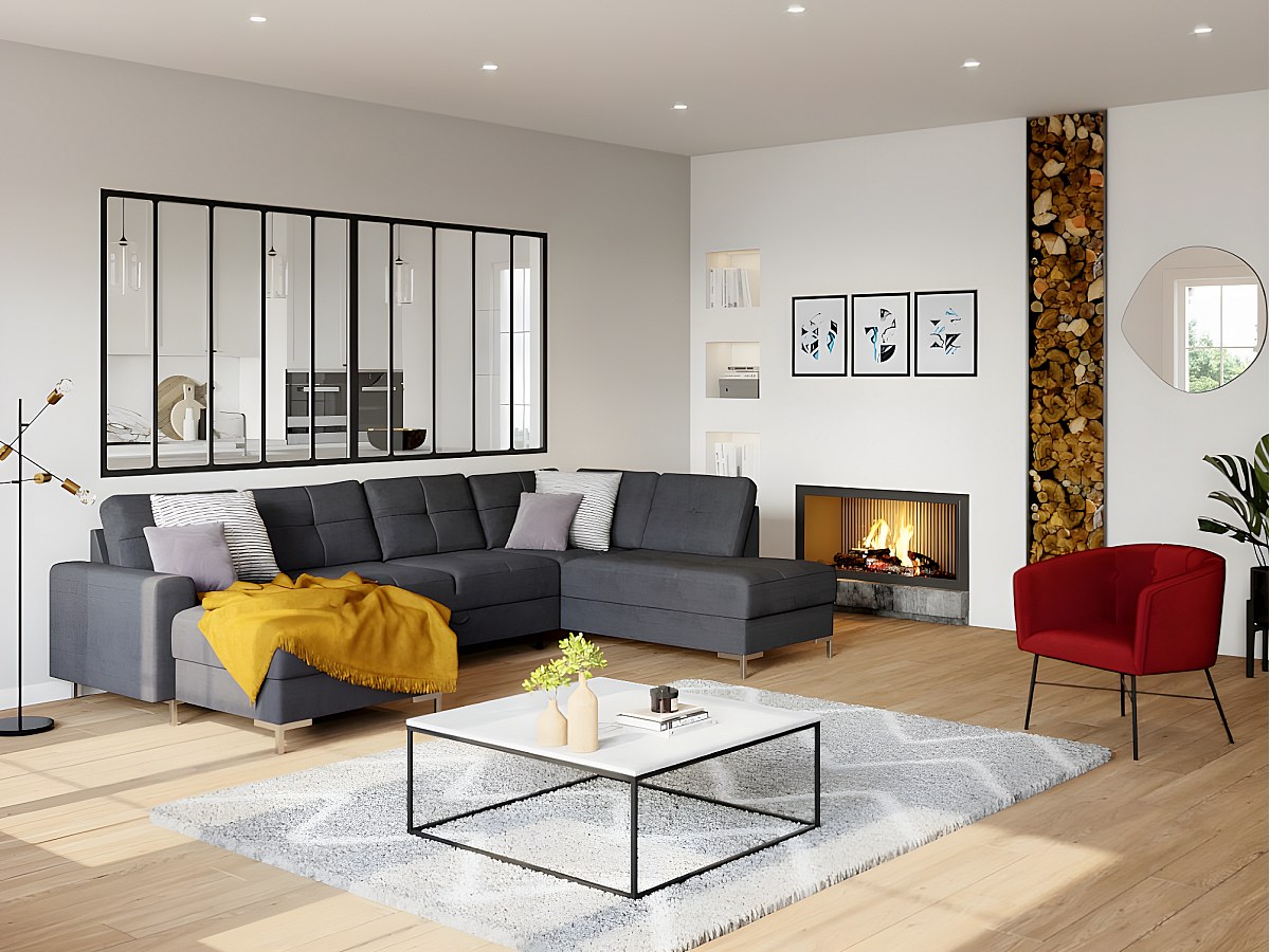 Canapé d'angle panoramique convertible JENSEN en tissu - Anthracite - Angle droit