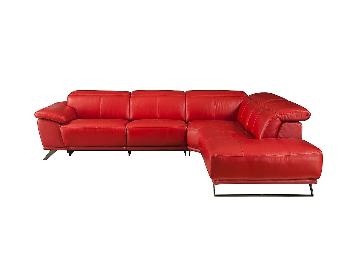 Canapé d'angle relax électrique en cuir AZIDEE - Rouge - Angle droit