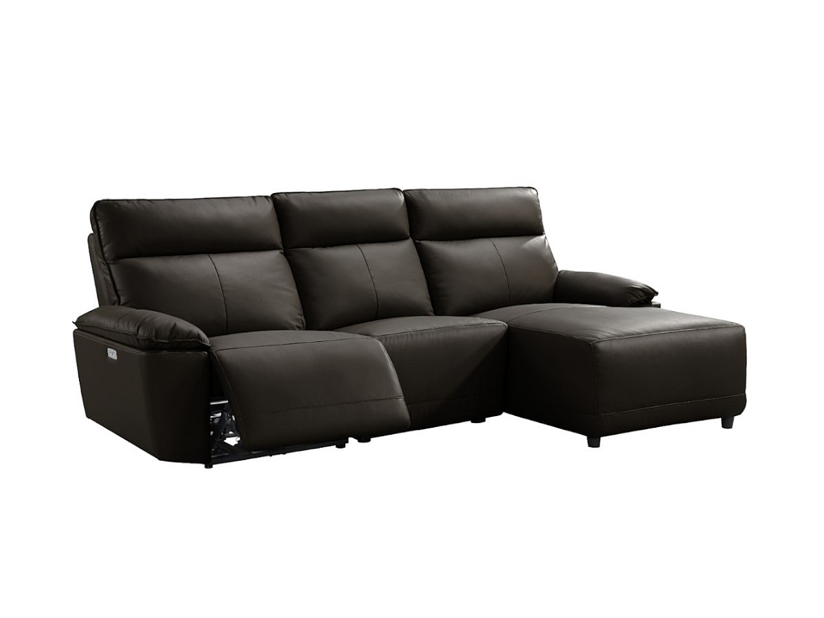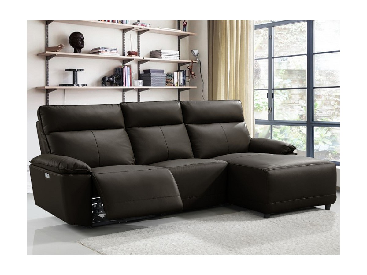 Canapé d'angle relax électrique en cuir de buffle CEDRIC - Marron - Angle droit