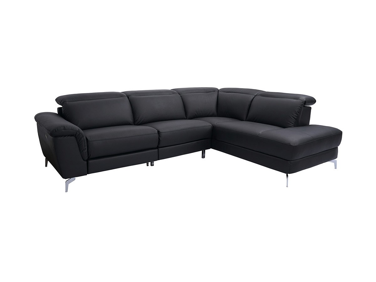 Canapé d'angle relax électrique en cuir OLBIA - Noir - Angle droit