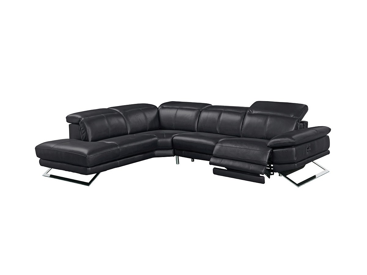 Canapé d'angle relax électrique en cuir PUNO - Noir - Angle gauche