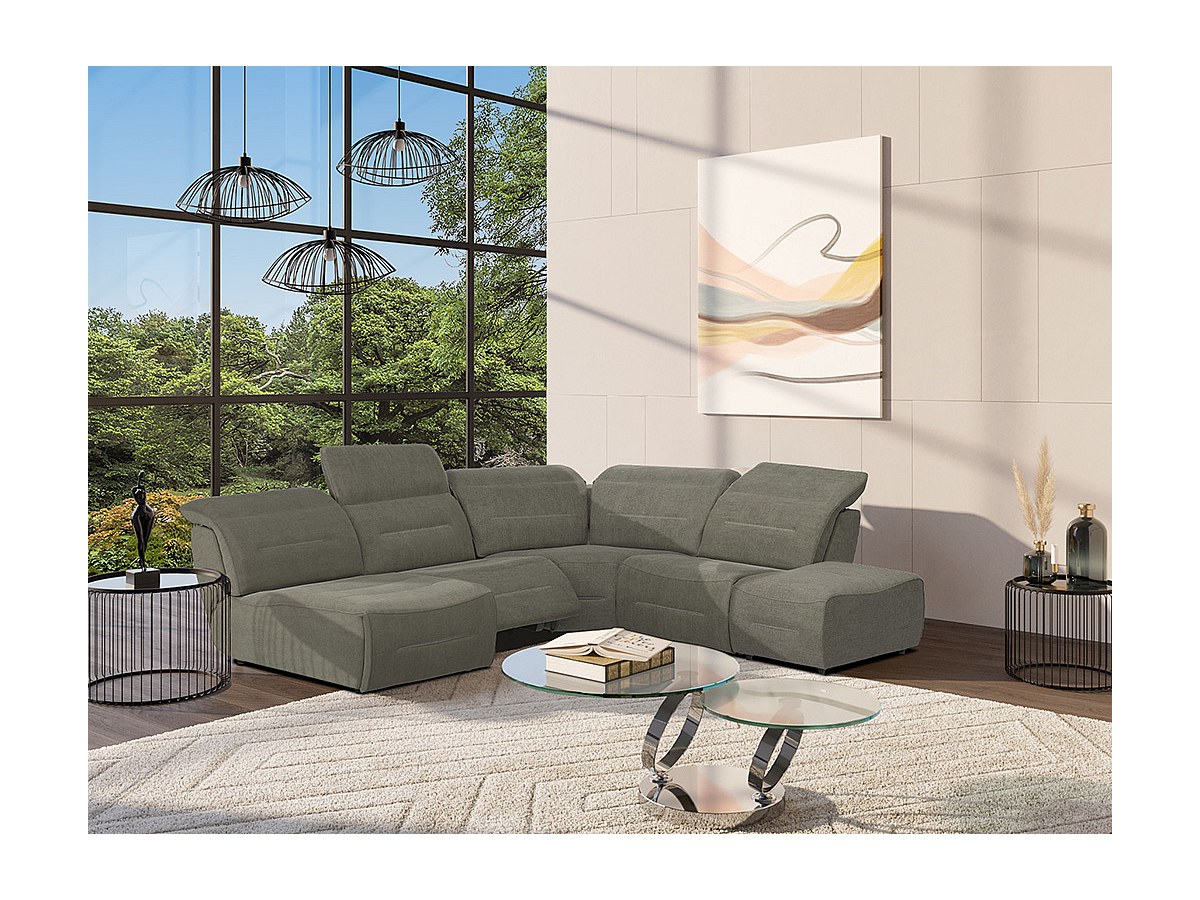 Le canapé d'angle relax panoramique modulable est composé de 5 modules : 1 méridienne, 1 chauffeuse relax, 1 chauffeuse fixe,1 angle et 1 pouf.