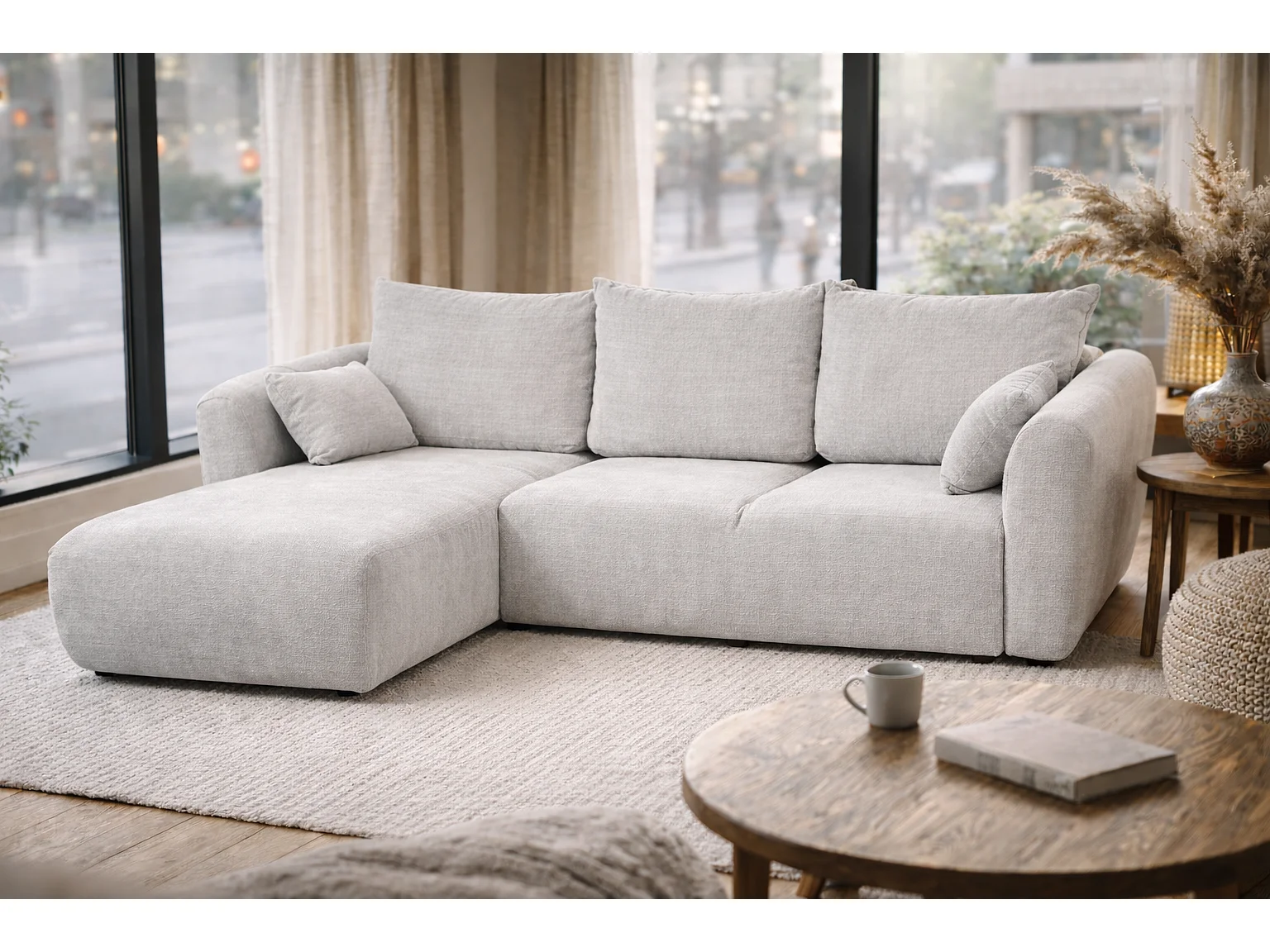 Canapé d’angle Santi avec fonction couchage et coffre – 255×165 cm – moderne, convertible, confortable pour le salon