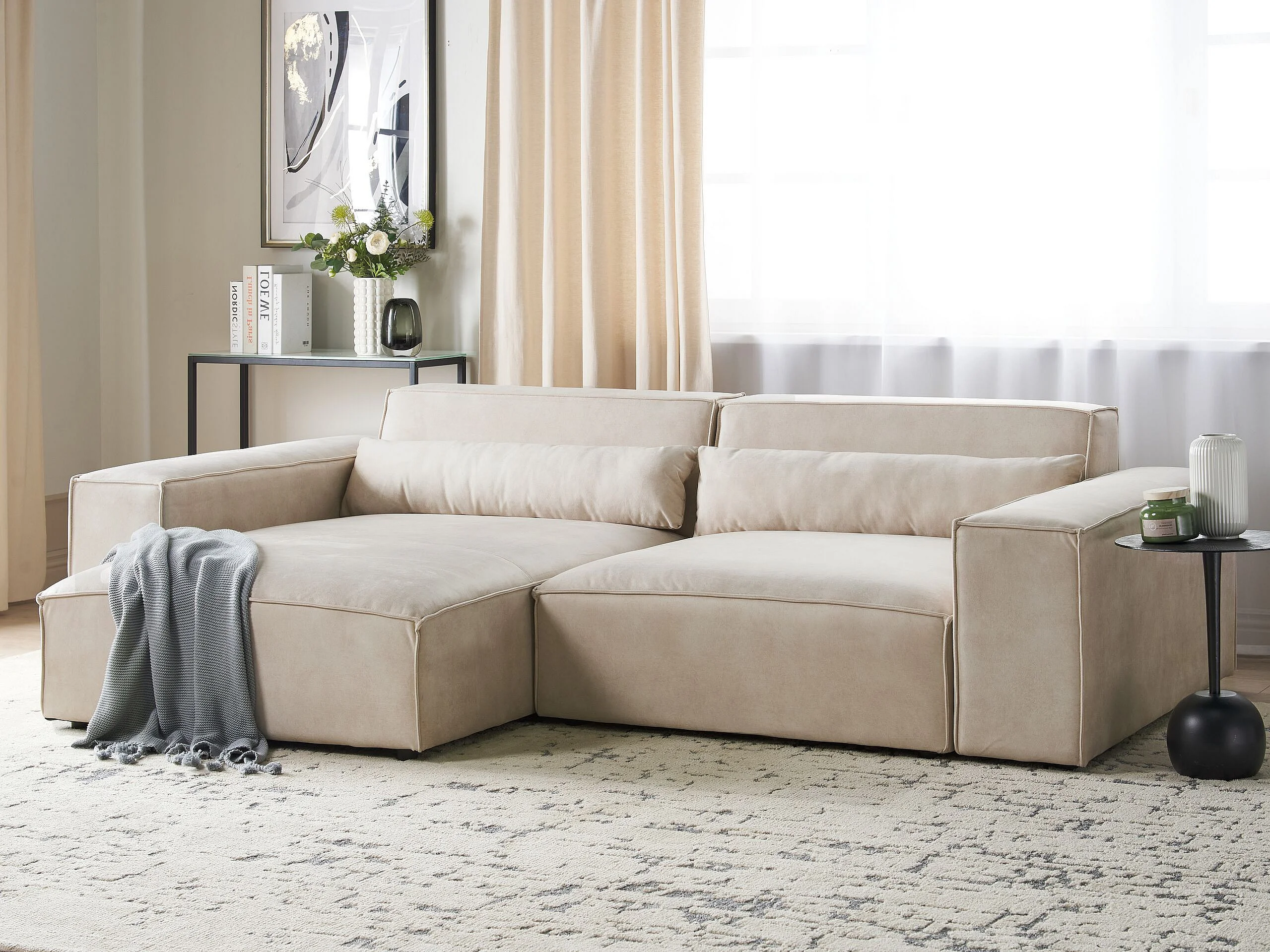 Canapé d'Angle 2 Places Modulable à gauche en Velours Pieds en Métal Beige Hellnar