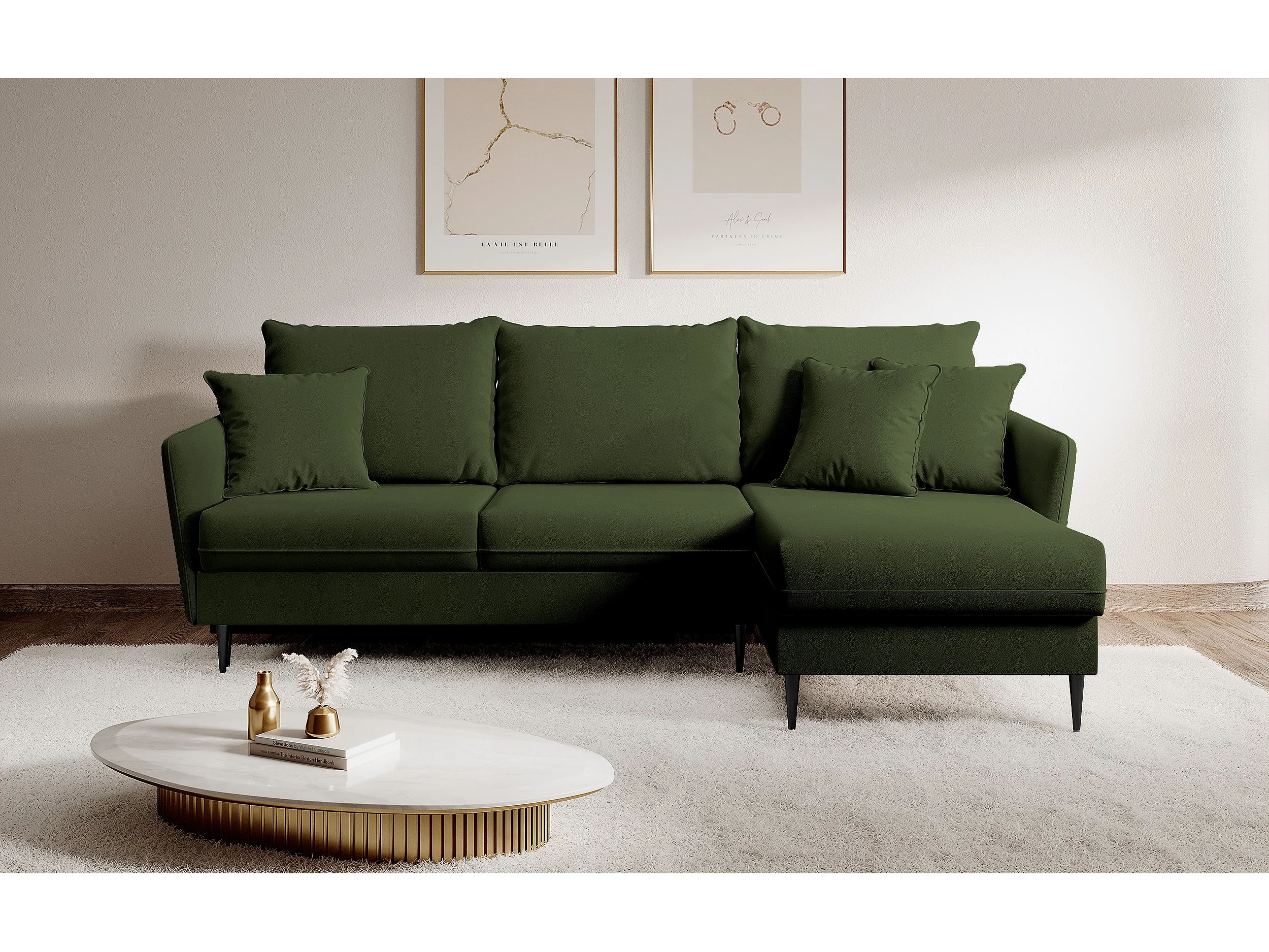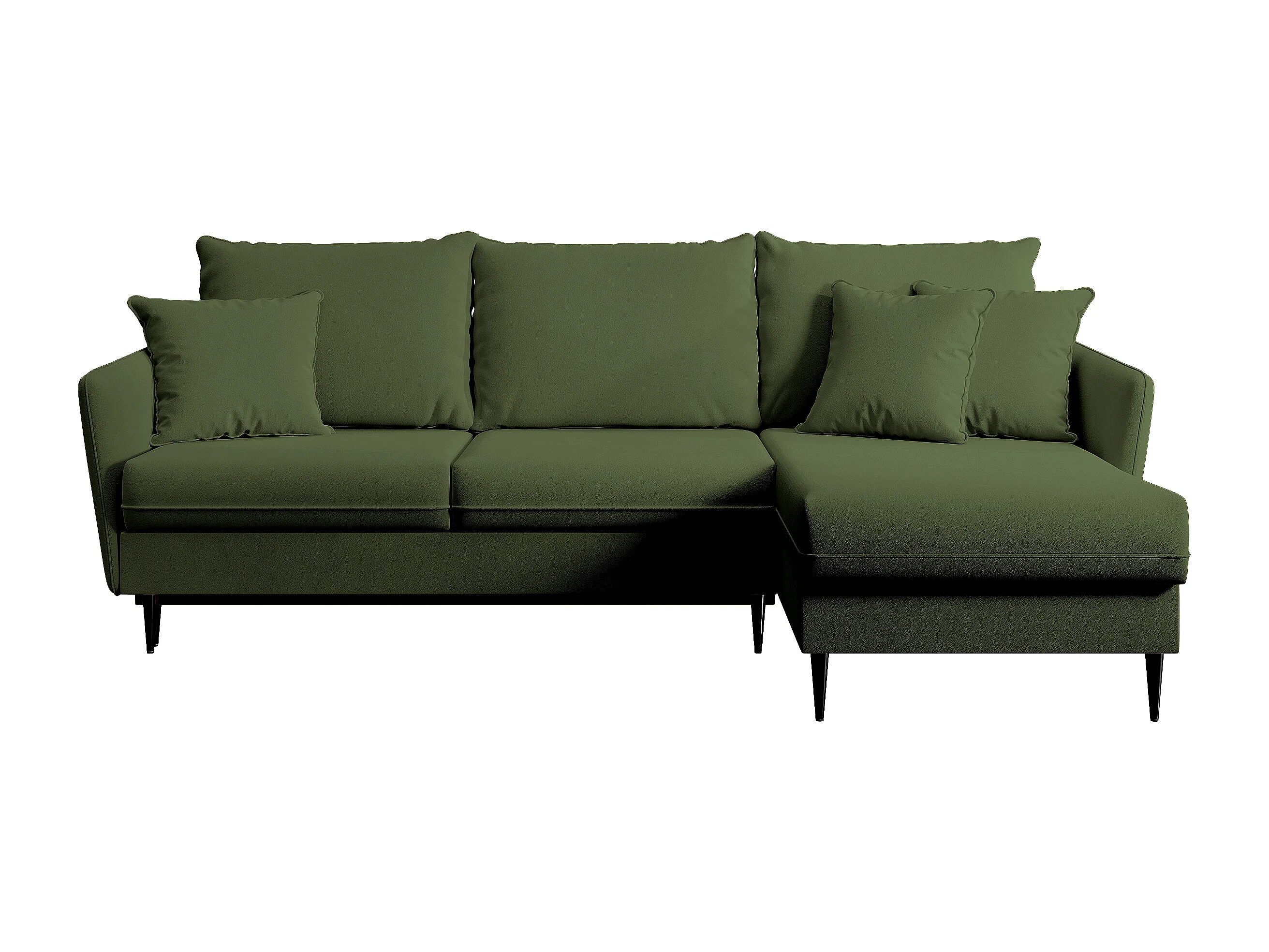 Canapé d'angle - 223 cm - avec fonction couchage - velours hydrophobe - olive - pieds noirs - VOLIO