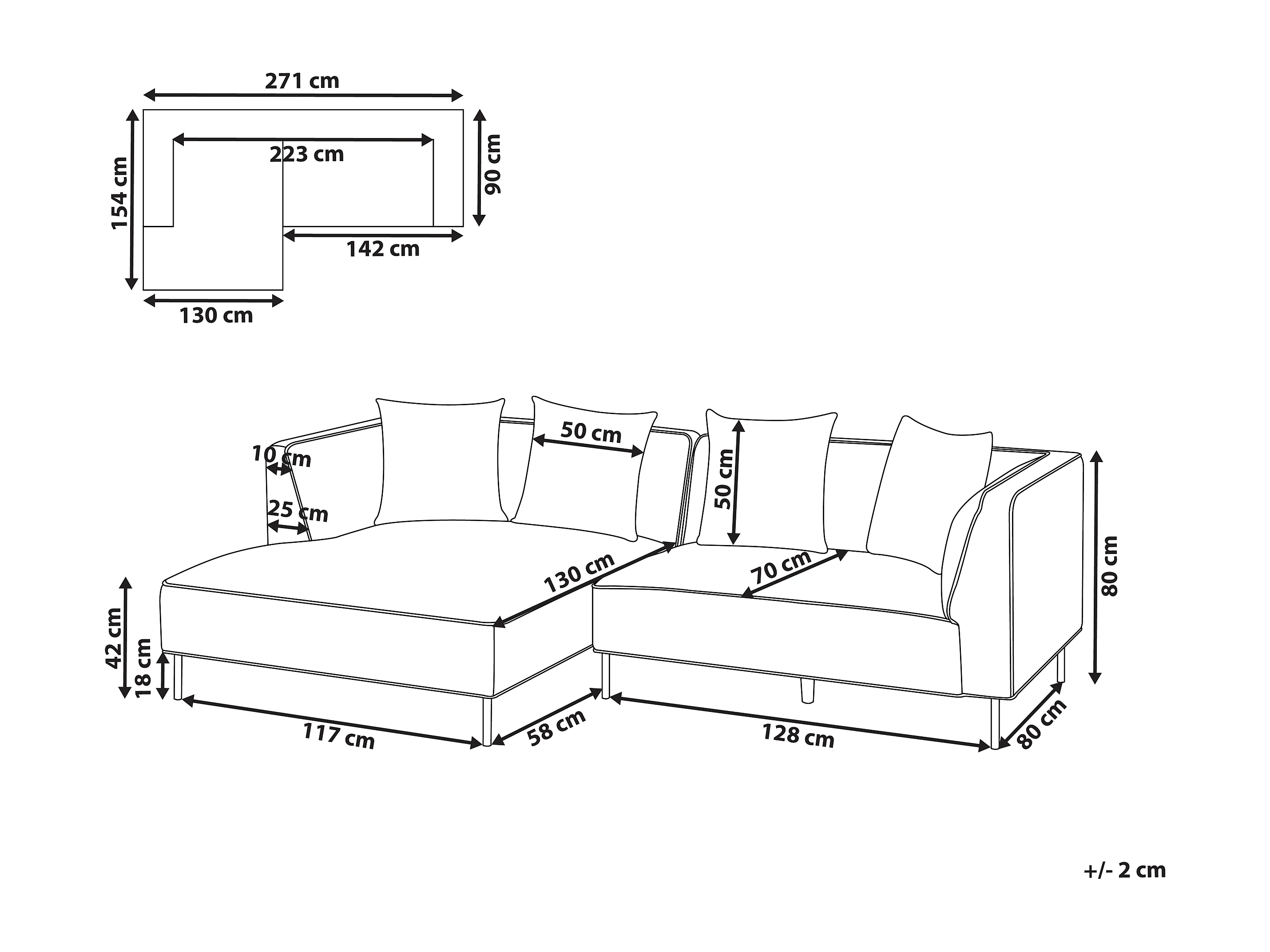 Canapé d'angle 3 places SATER Tissu Marron Côté droit