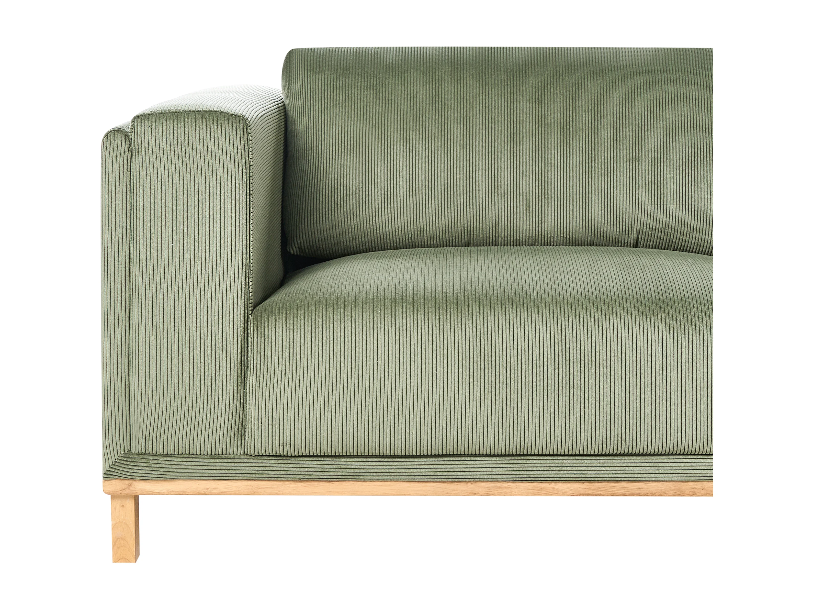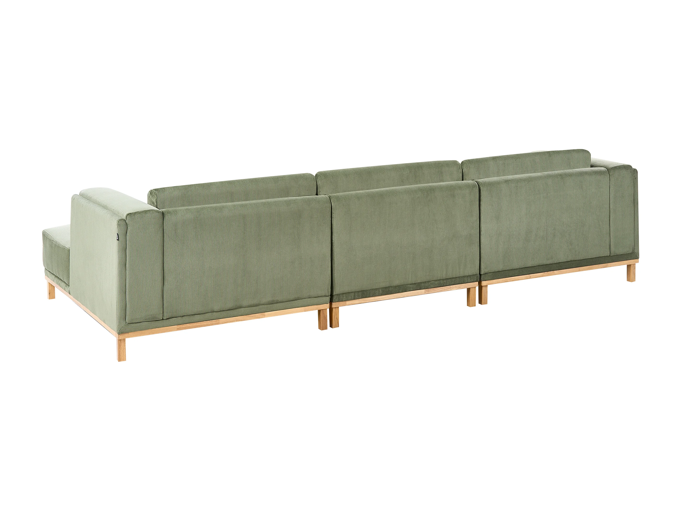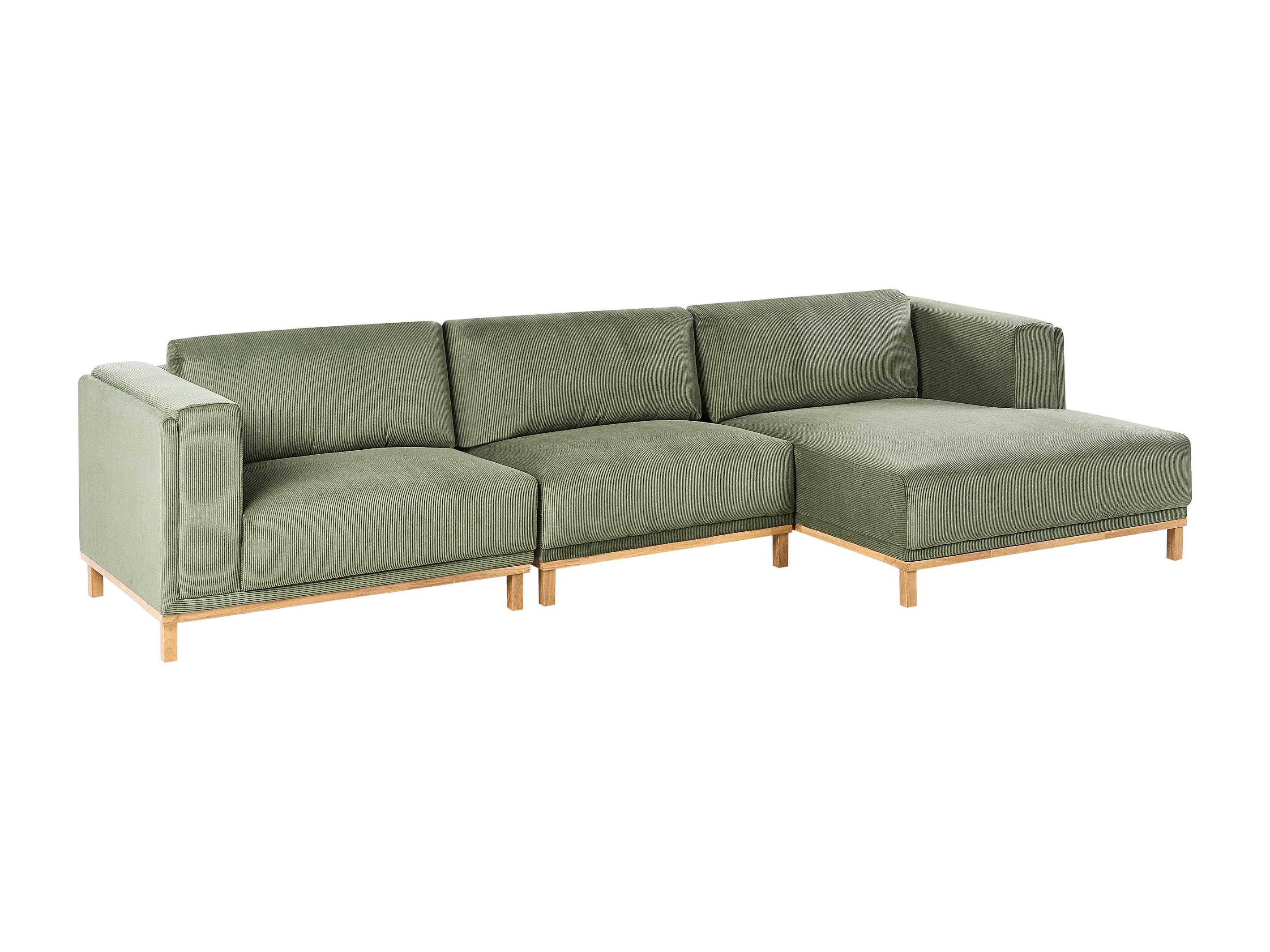 Canapé d'Angle à Gauche 5 Places Moderne en Velours Côtelé avec Accoudoirs Pieds en Bois Vert Veng
