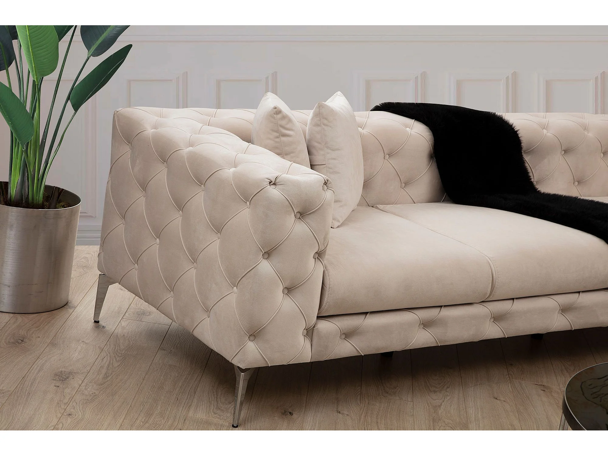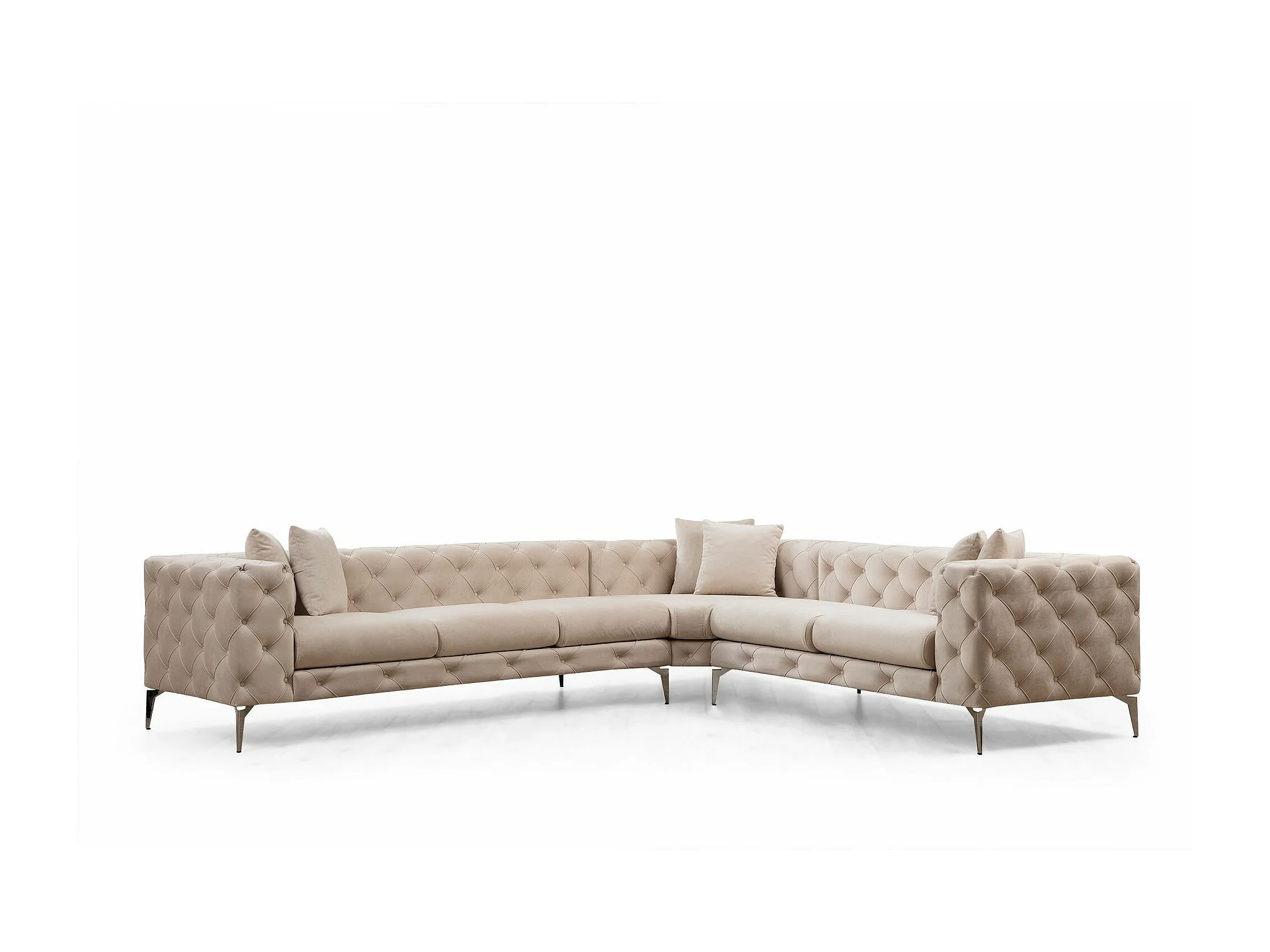 Canapé d'angle à droite capitonné Alykes Velours Beige