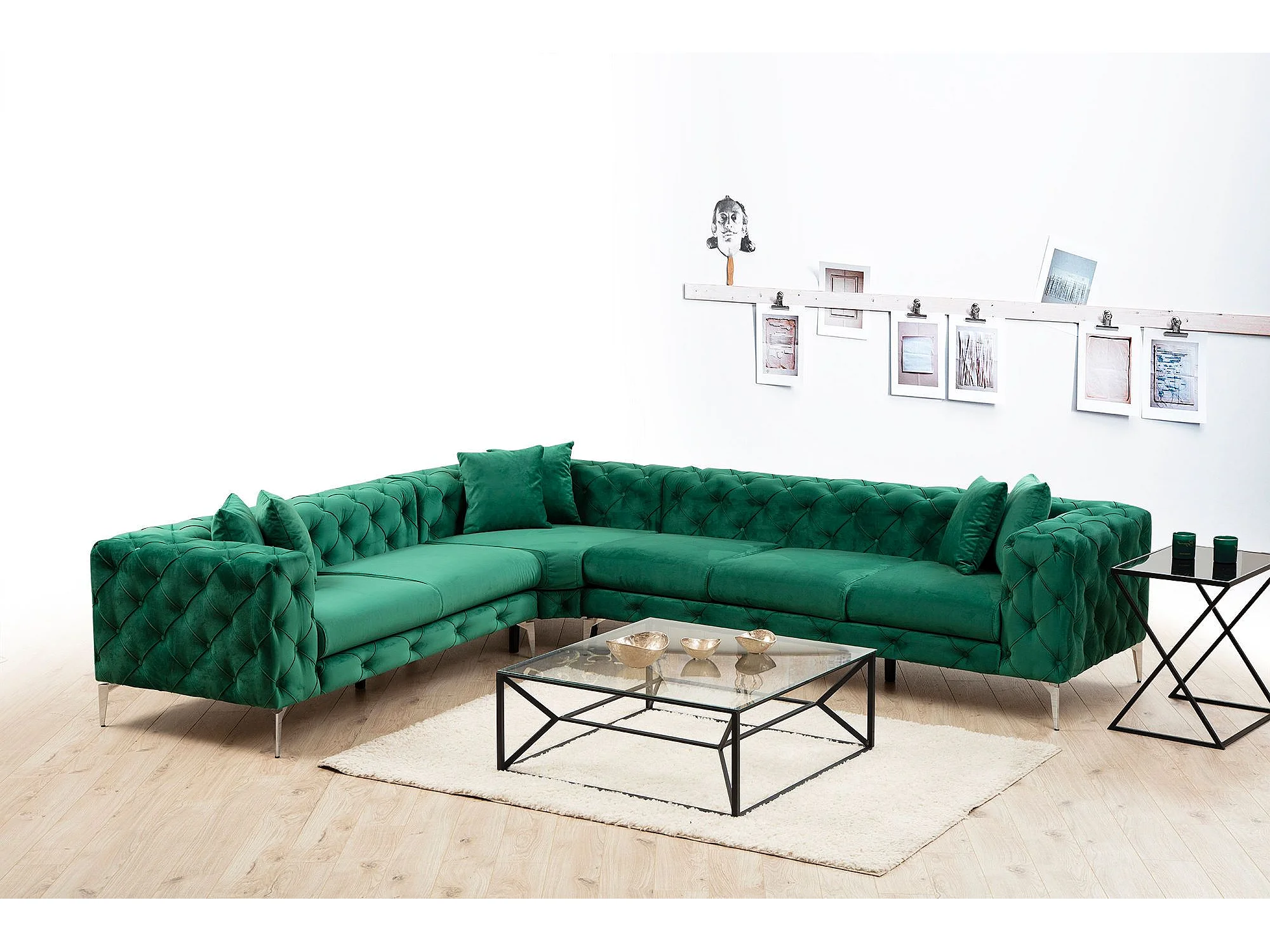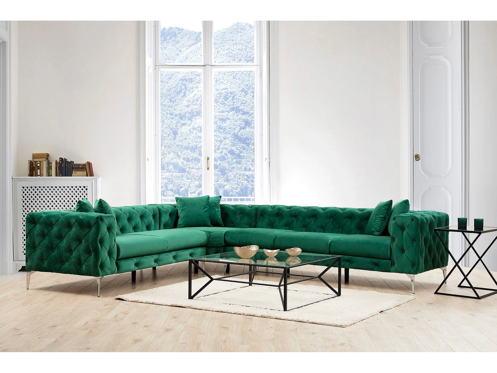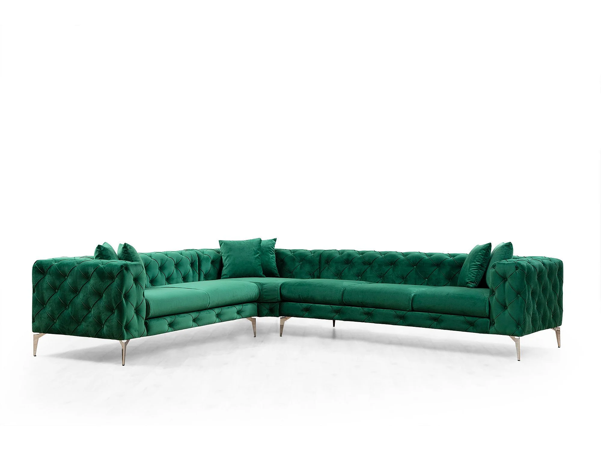 Canapé d'angle à droite capitonné Alykes Velours Vert