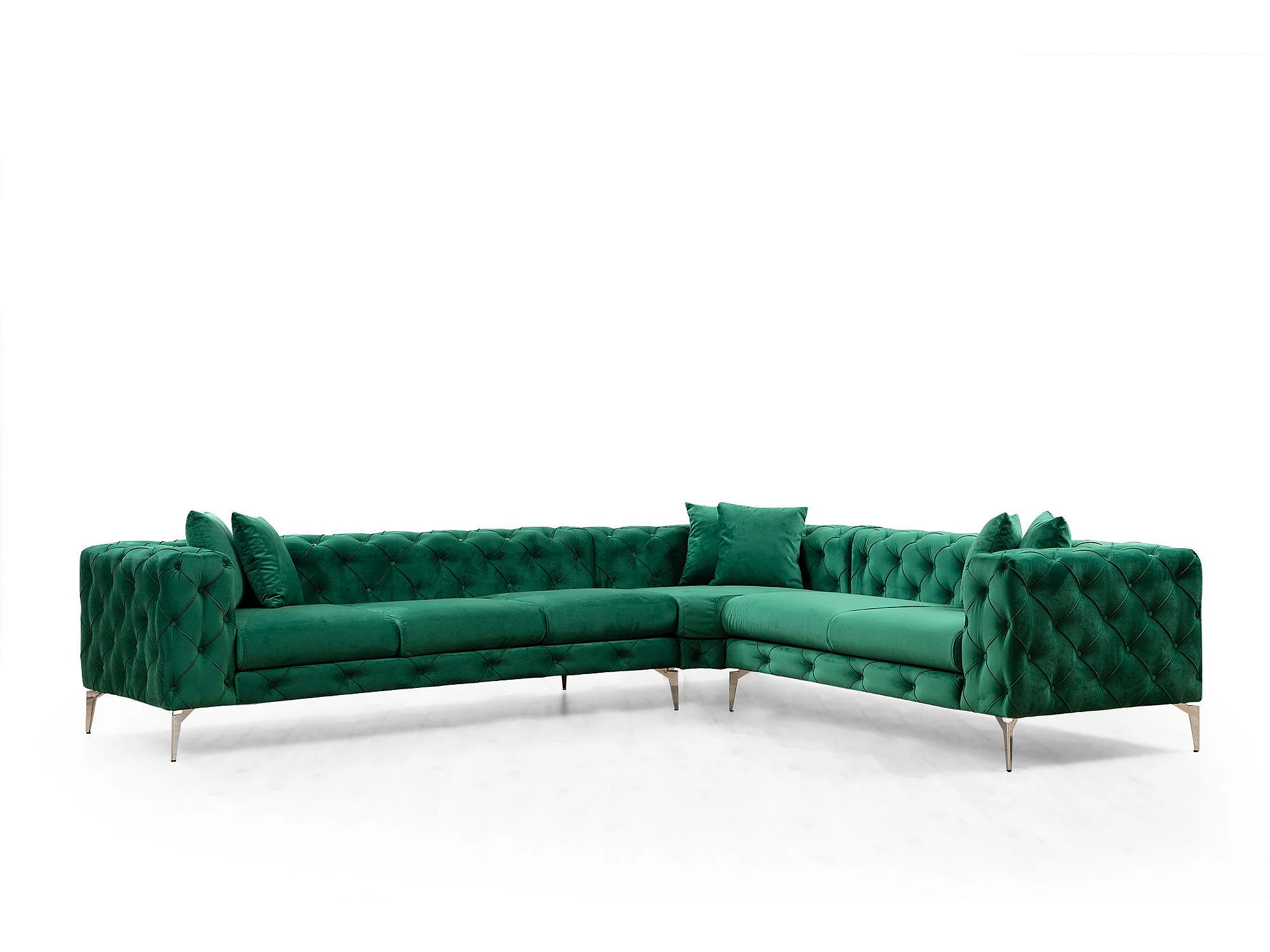 Canapé d'angle à droite capitonné Alykes Velours Vert
