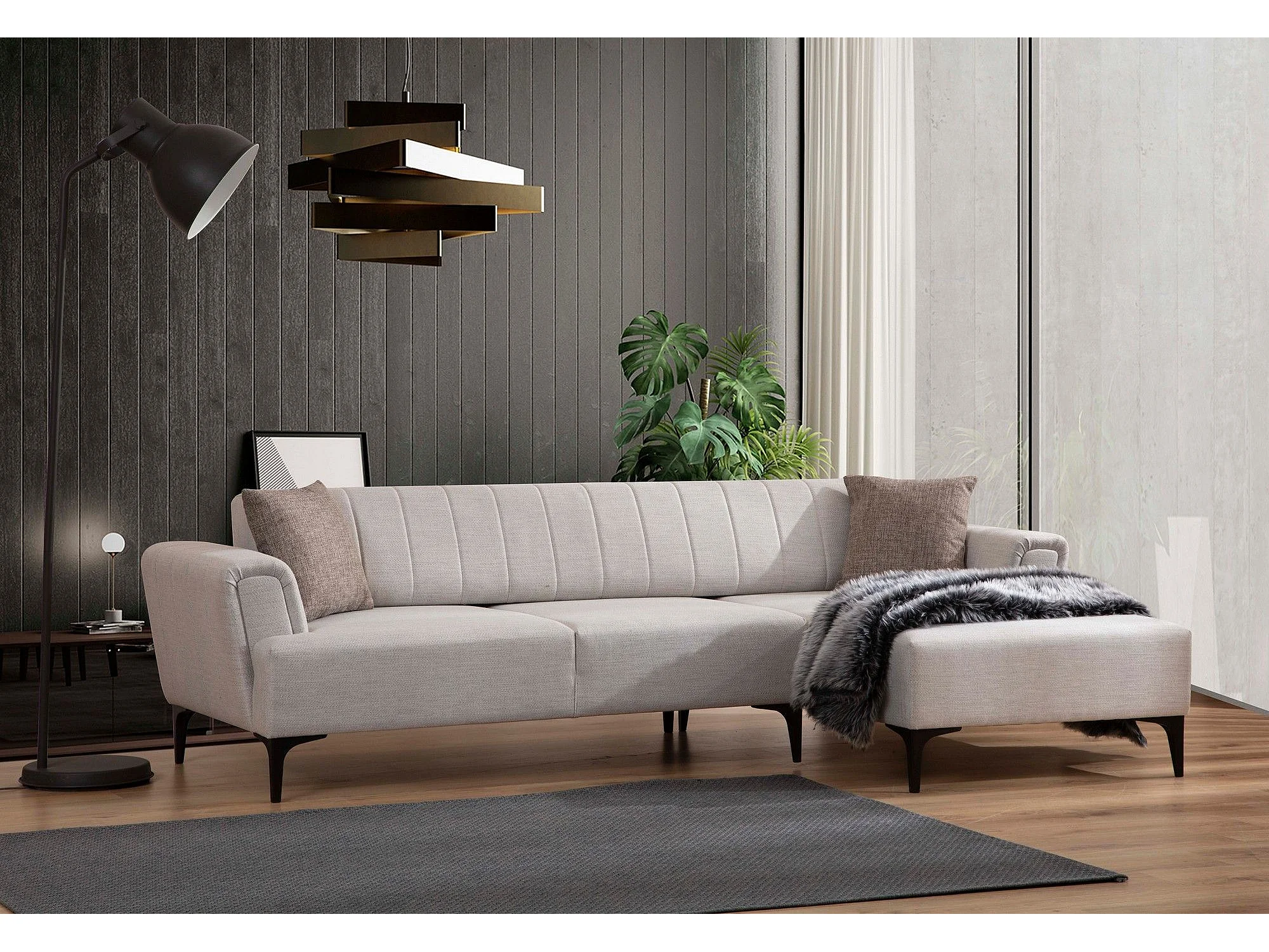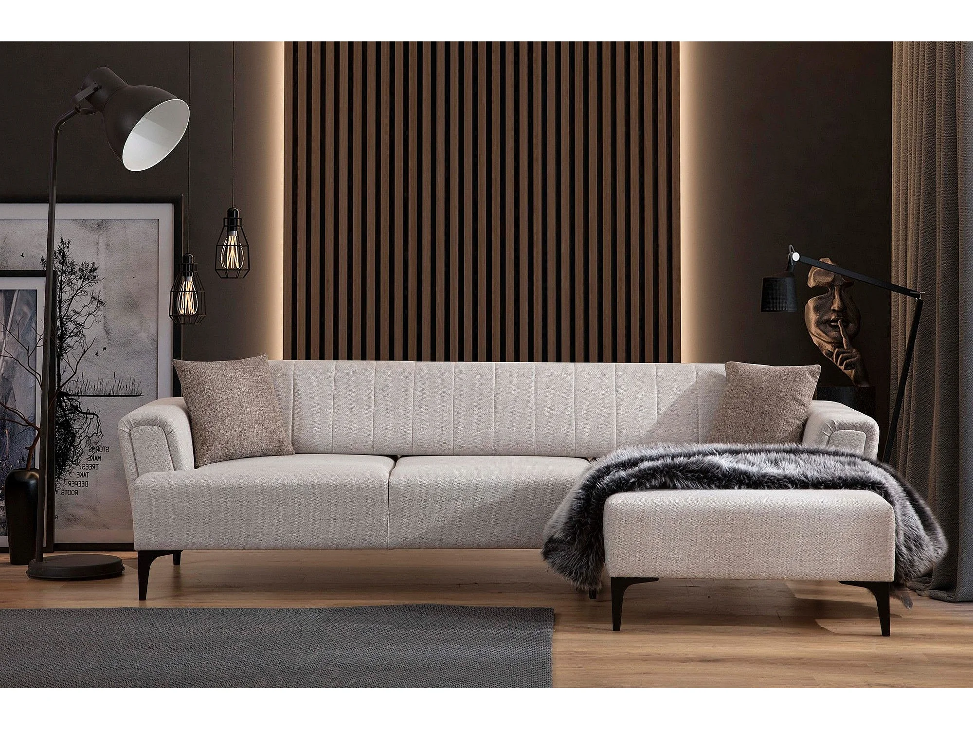 Canapé d'angle à droite convertible Devinos Tissu Écru