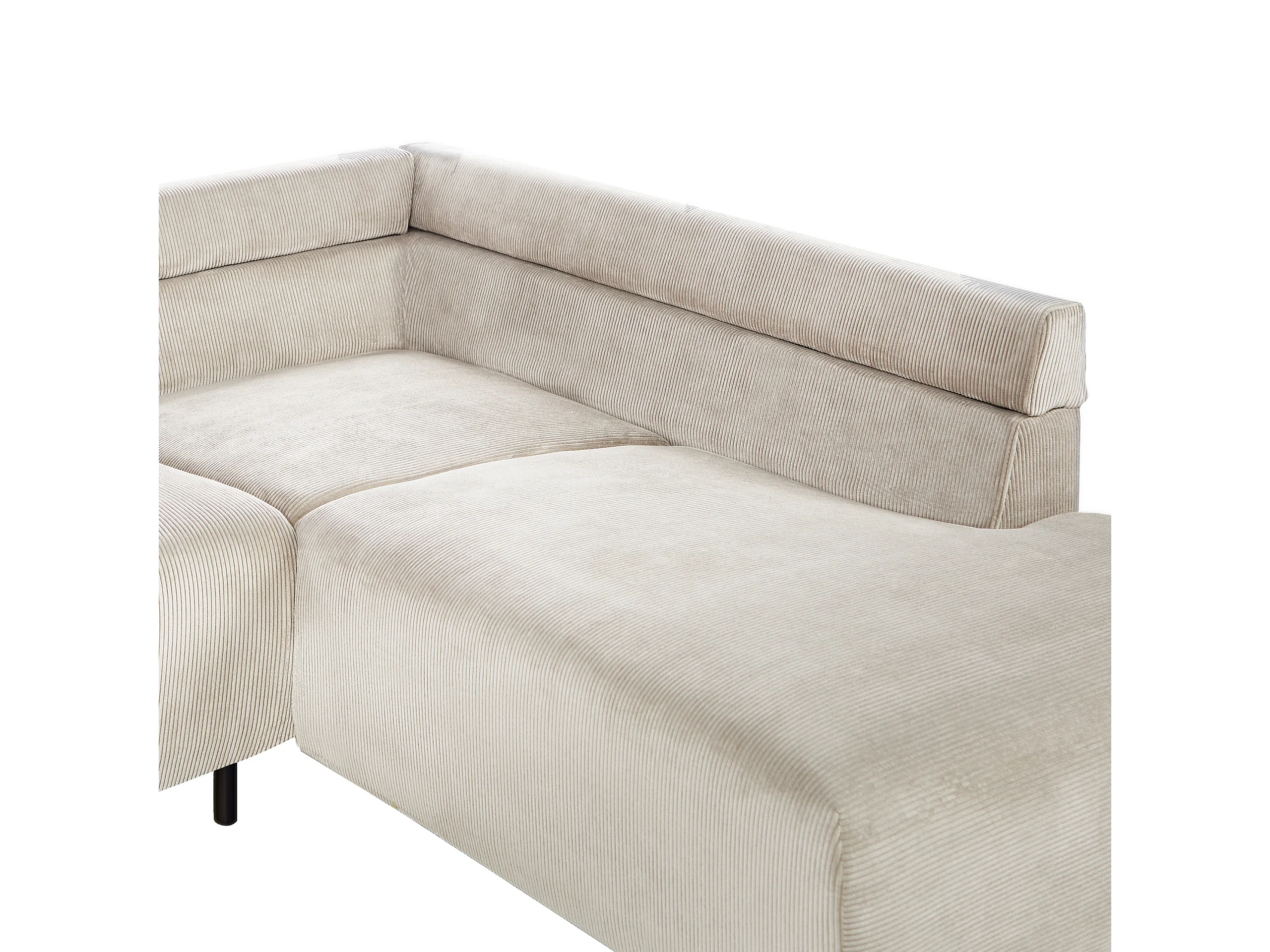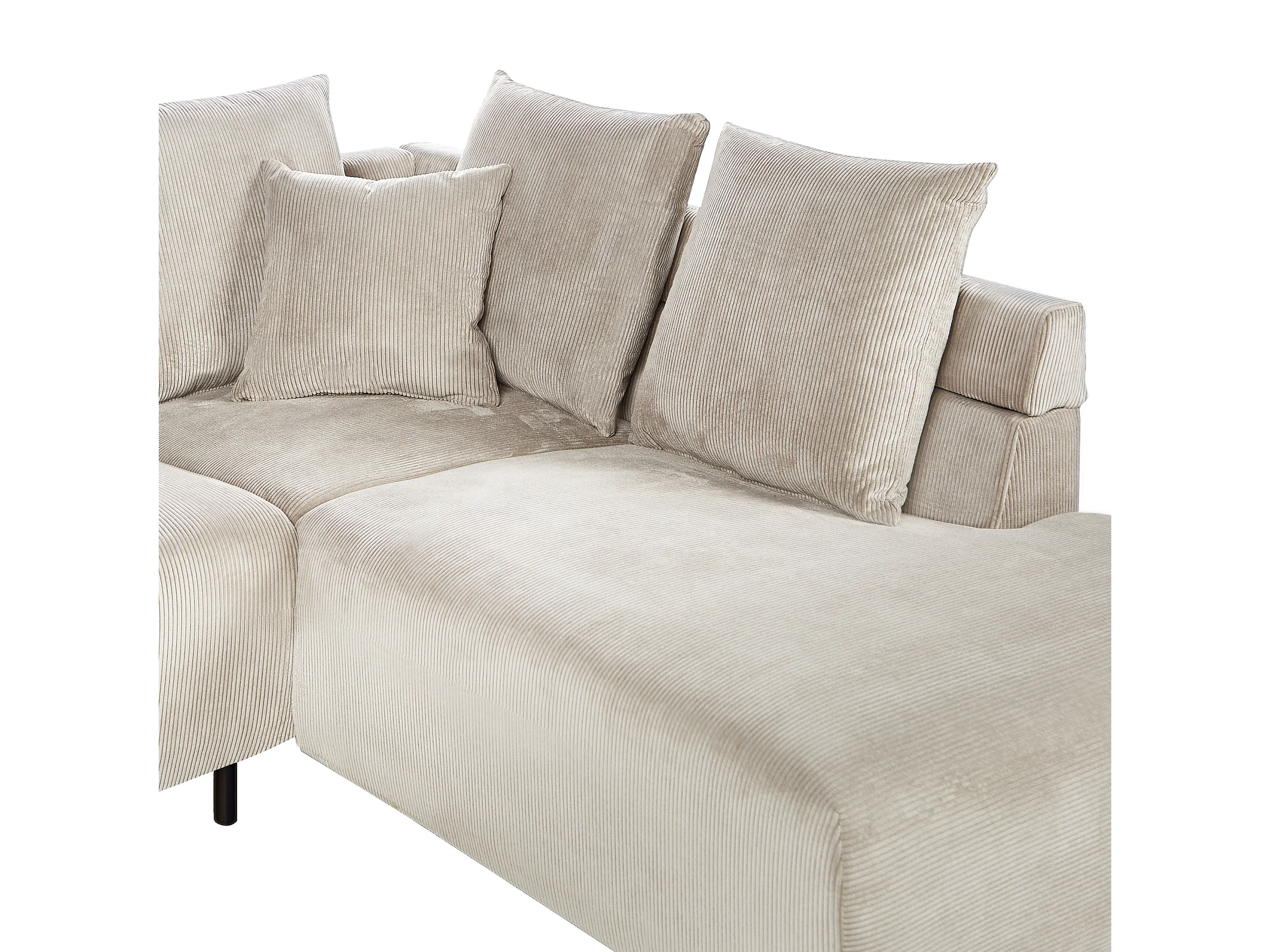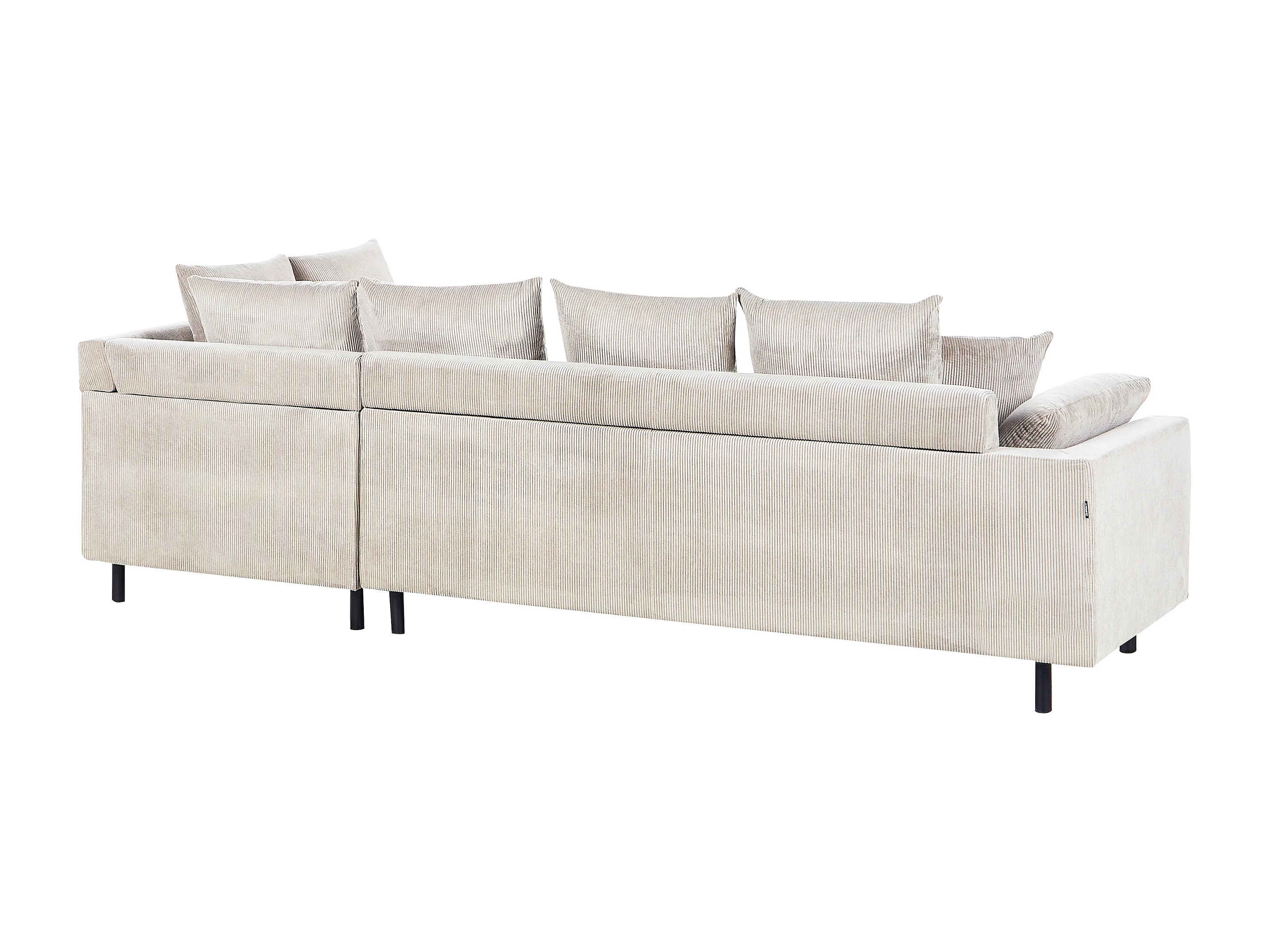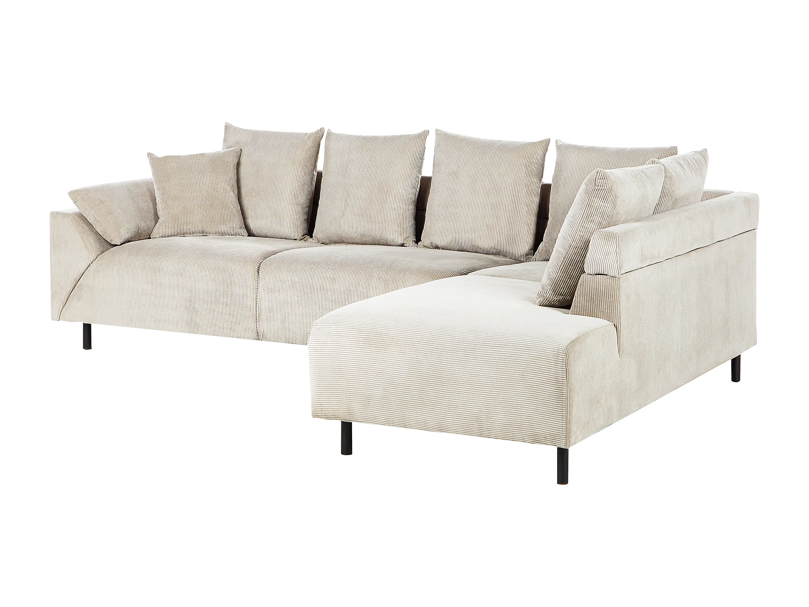 Canapé d'Angle à Gauche Moderne en Velours Côtelé Coussins en Tissu Pieds en Métal Beige Lunner