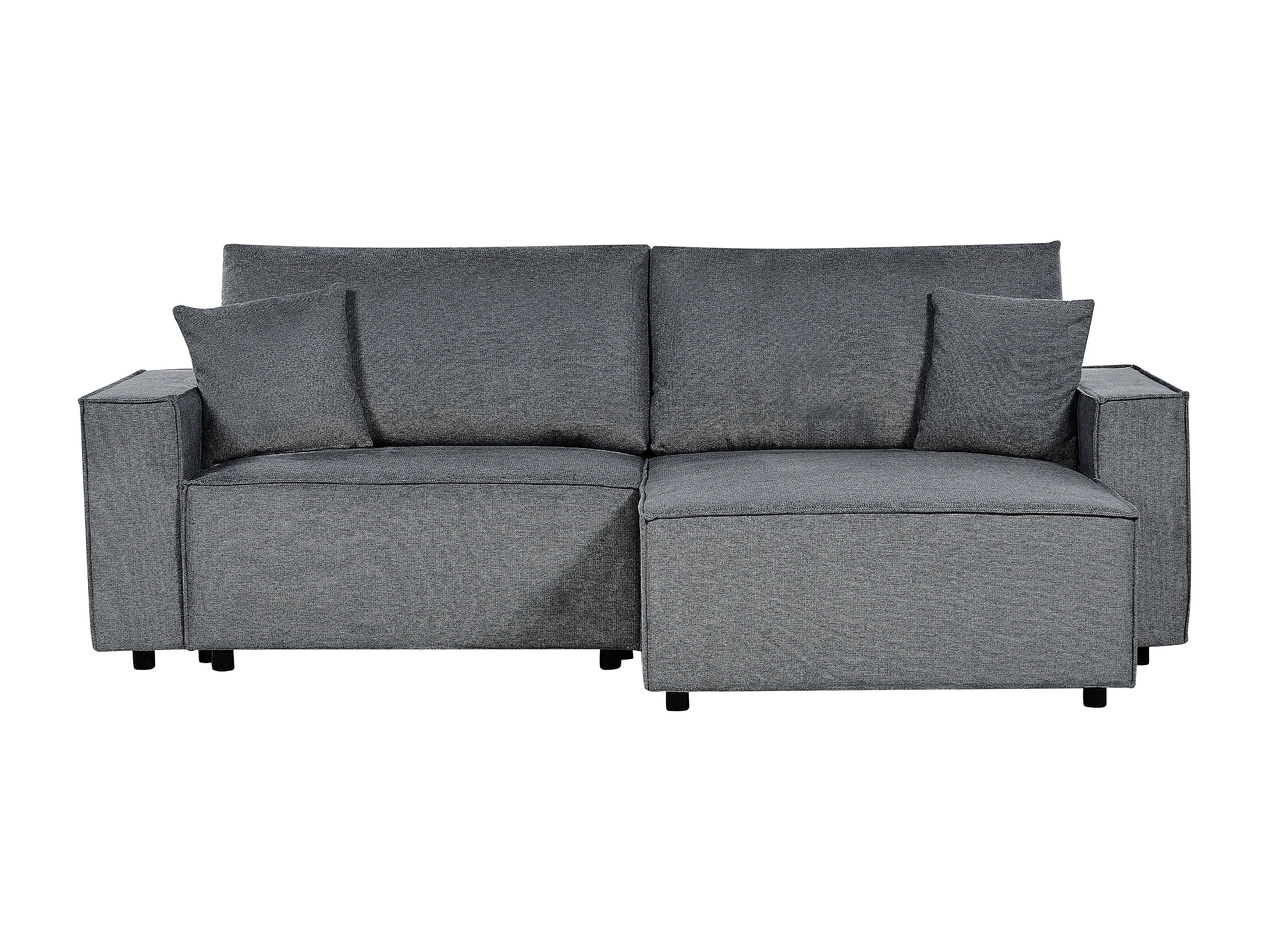 Canapé d'Angle à Gauche Moderne Fonction Couchage Dossier Rembourré avec Coussins en Tissu Polyester Gris Foncé Karila