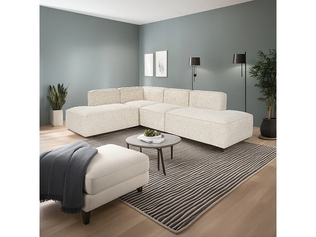 Canapé d'angle à gauche modulable Fertella Tissu bouclette Blanc