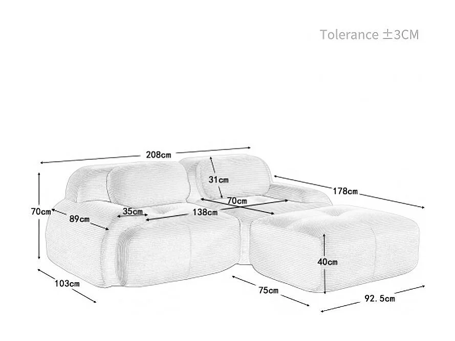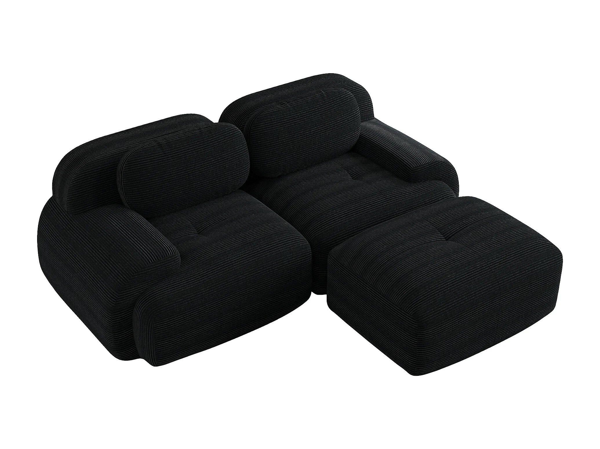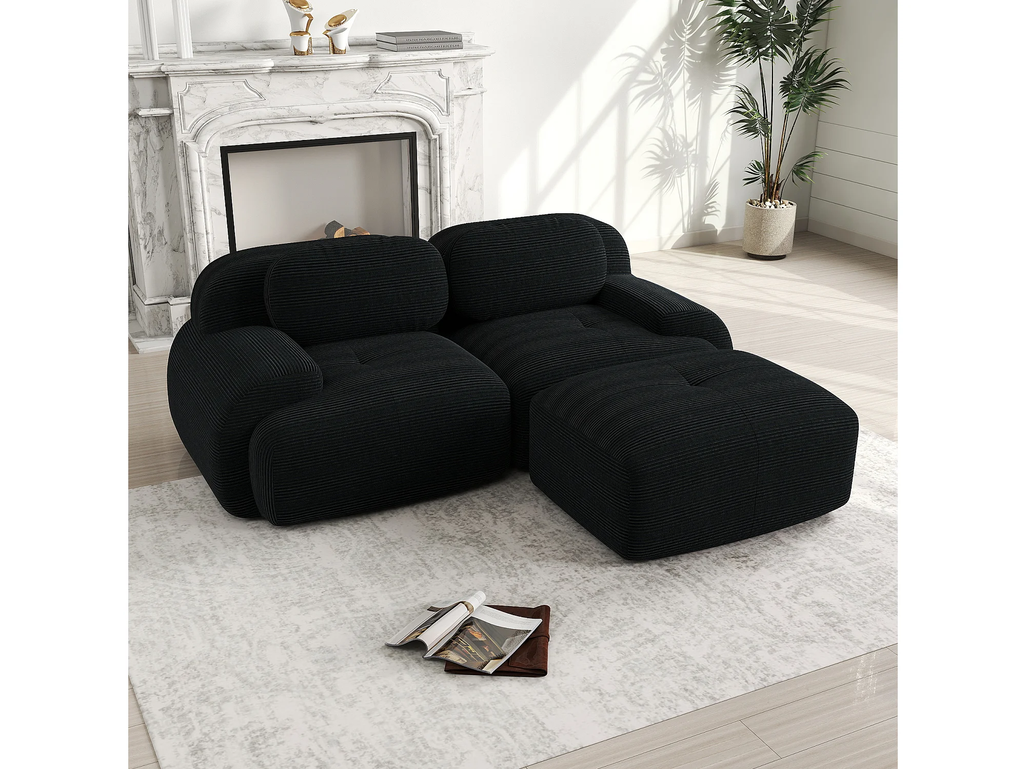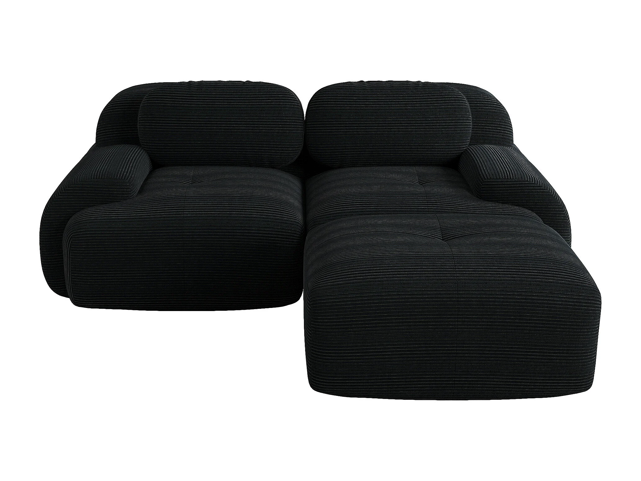 Canapé d'angle avec accoudoirs courbés et dossier rembourré - Velours côtelé noir