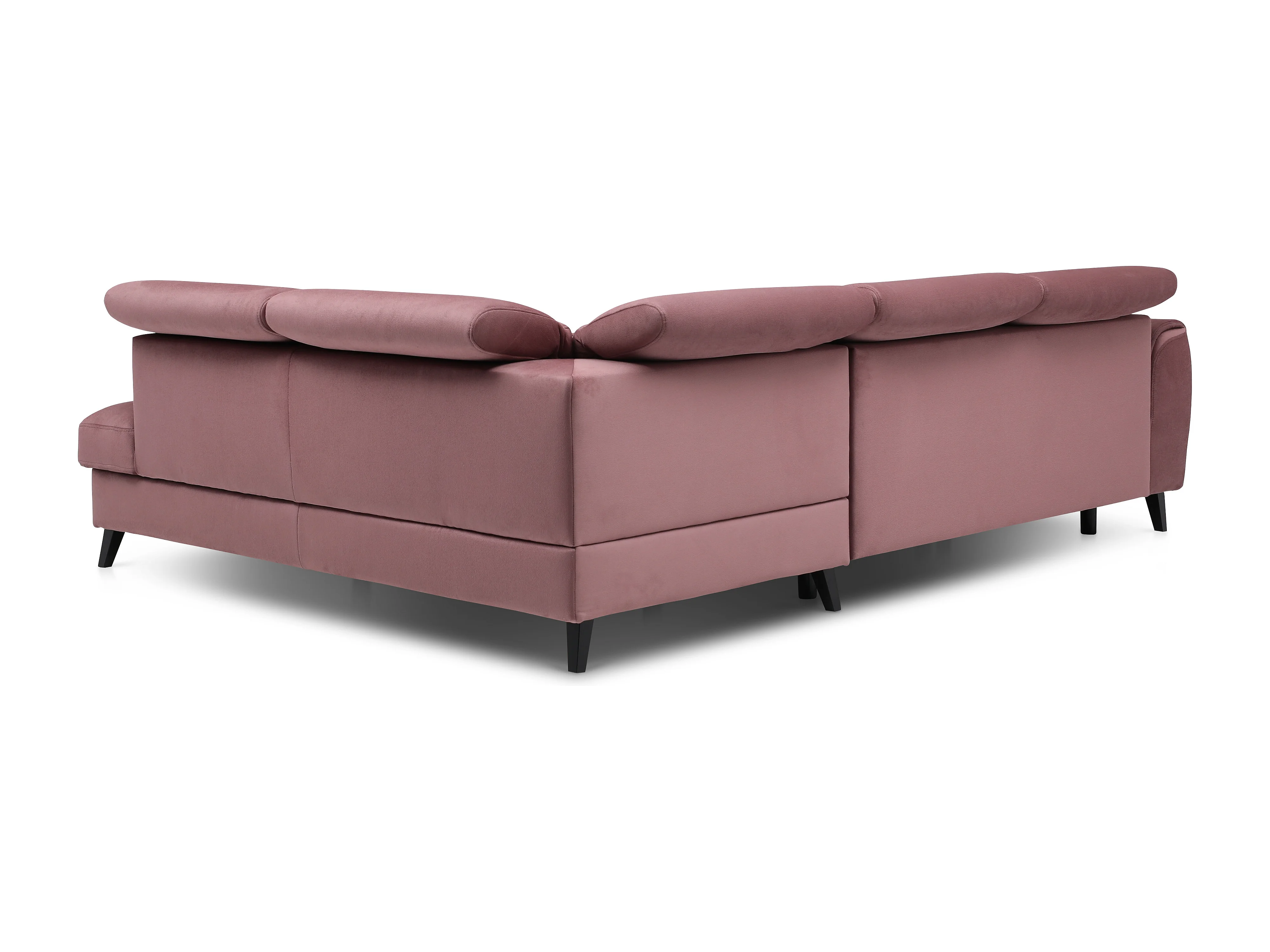 Canapé d'angle convertible avec rangement velours NOBLESSE - Pieds bois noir-Rose poudré-angle droit
