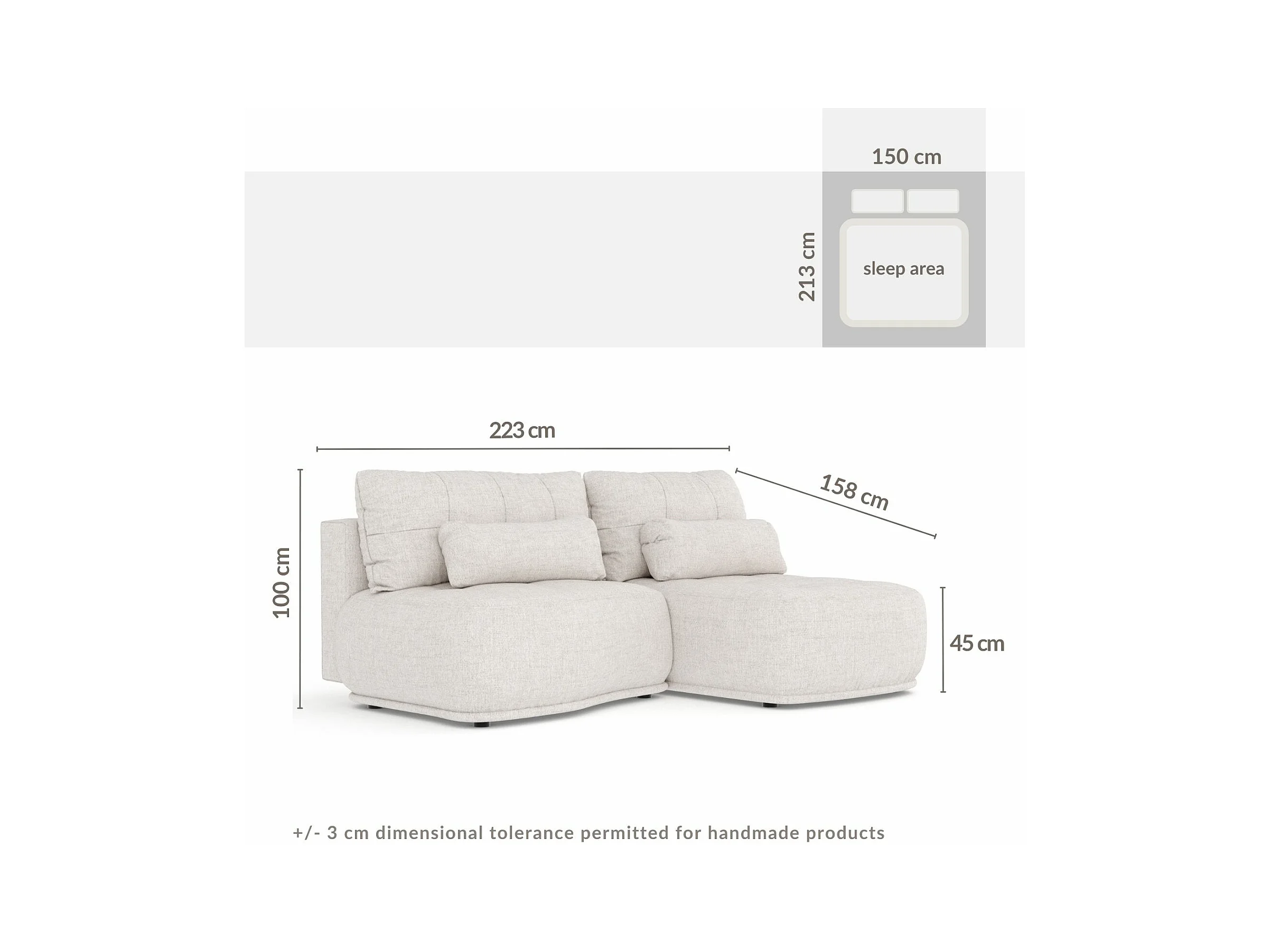 Canapé d'angle convertible Batu - toile tissée - 3 places - beige