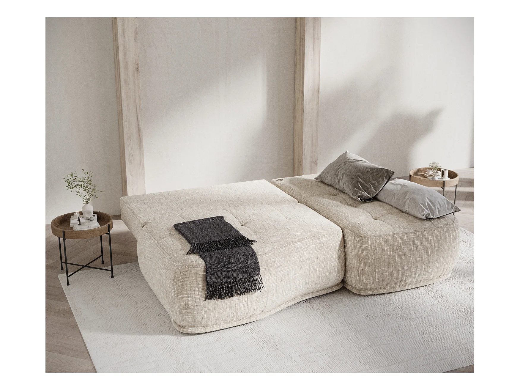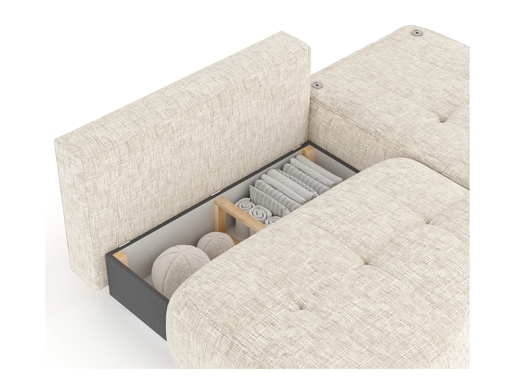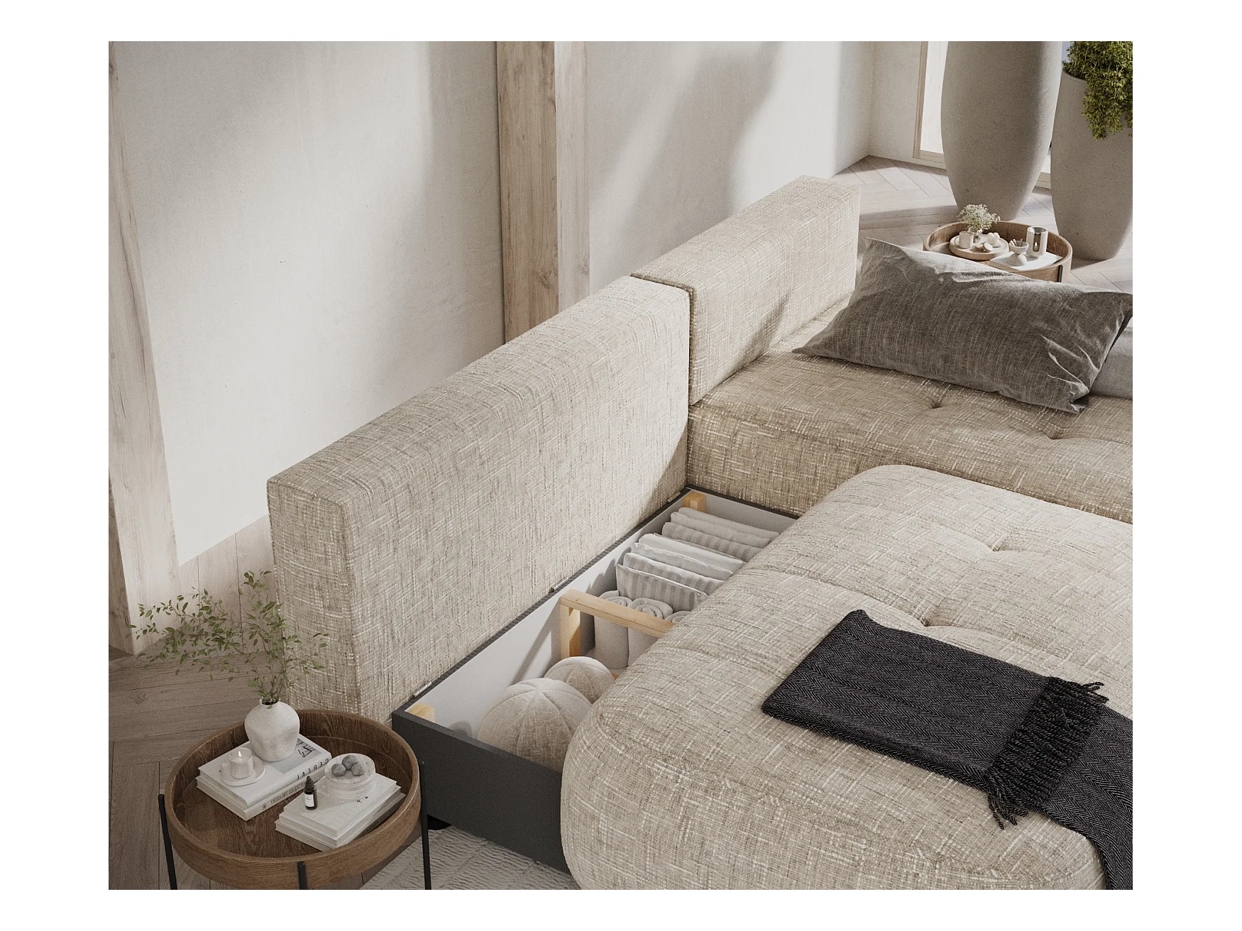 Canapé d'angle convertible Batu - toile tissée - 3 places - creme