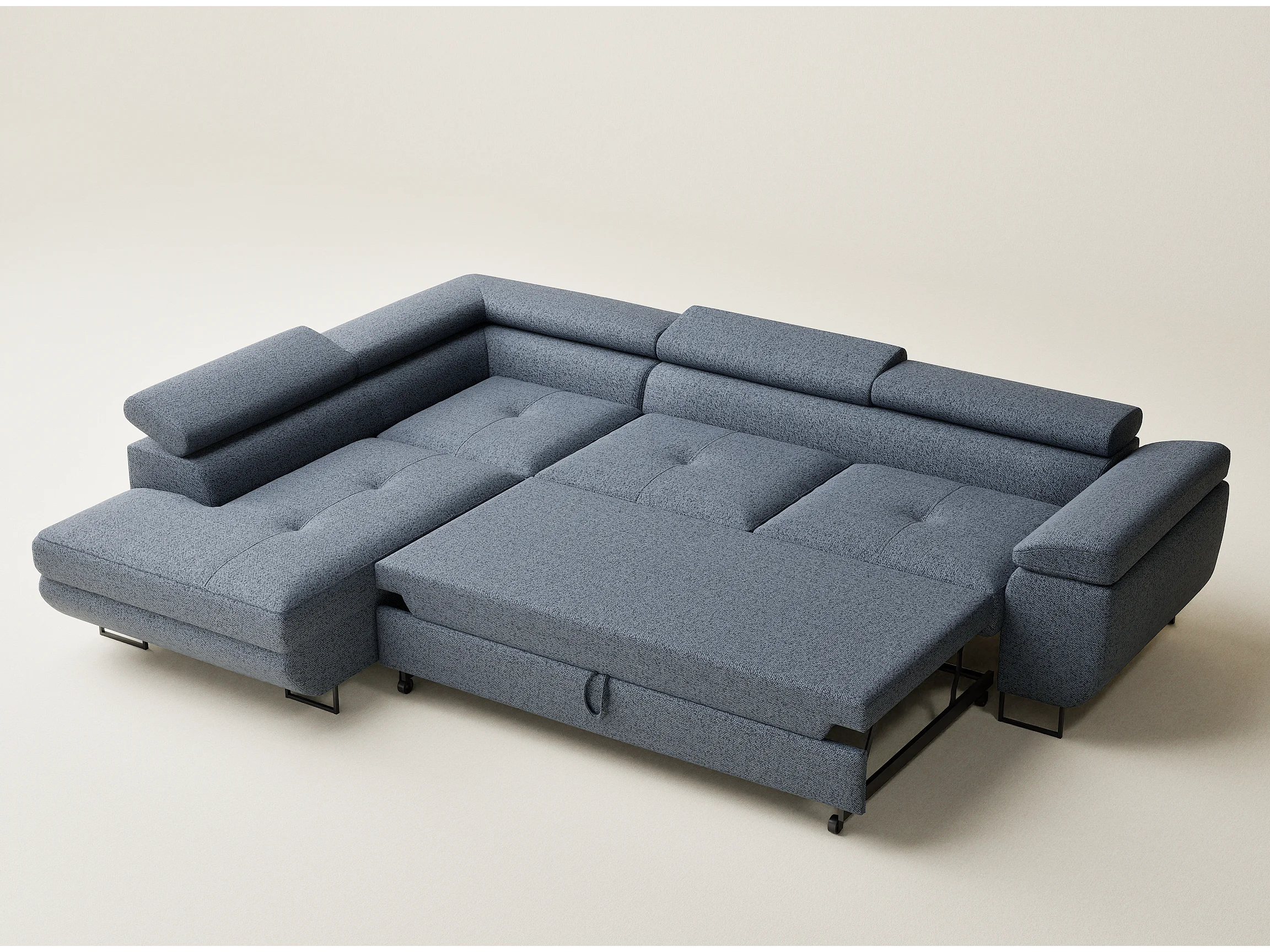 Canapé d'angle convertible Concord im tissu tresse - 5 places - bleu gris