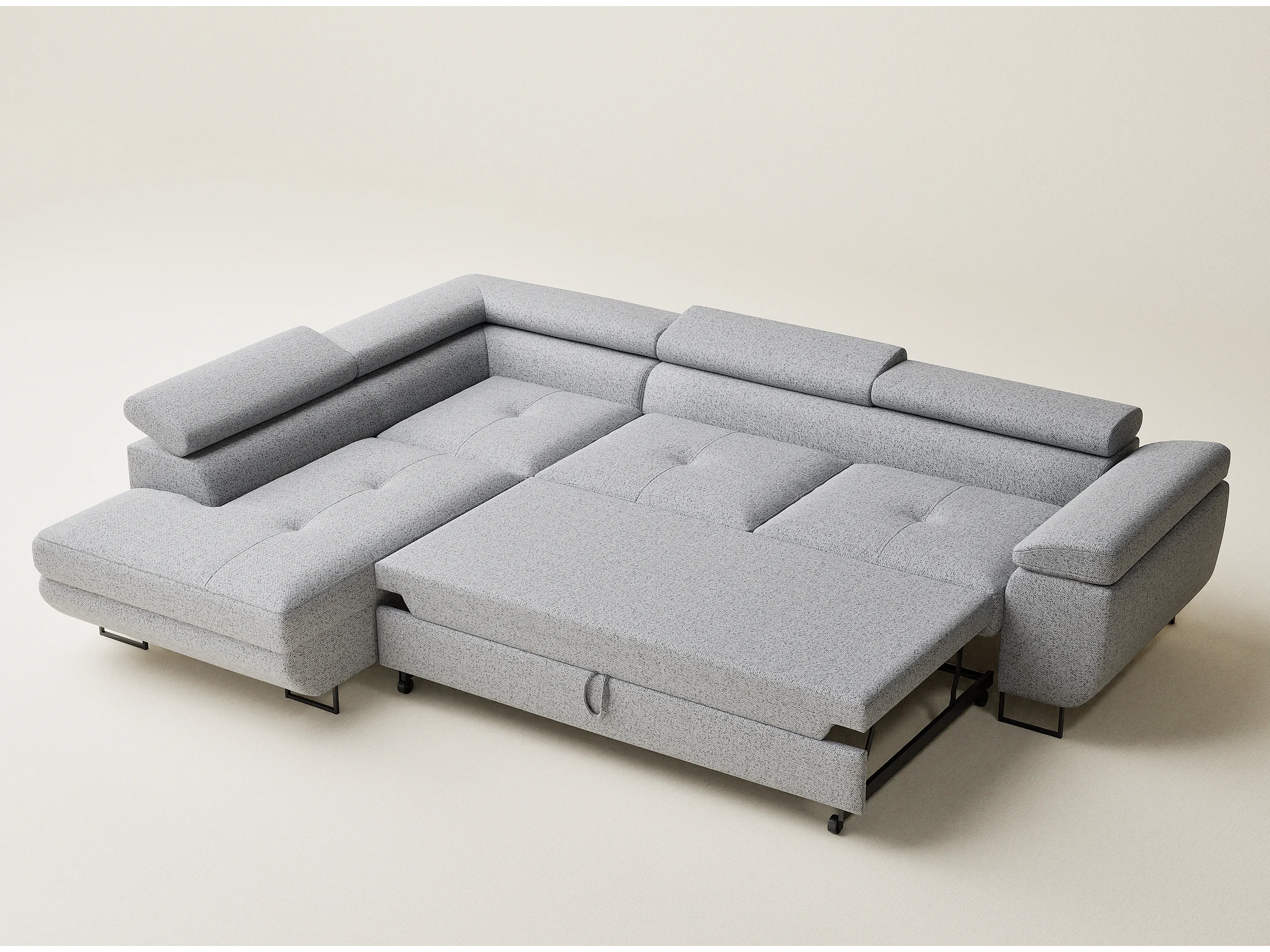 Canapé d'angle convertible Concord im tissu tresse - 5 places - gris clair